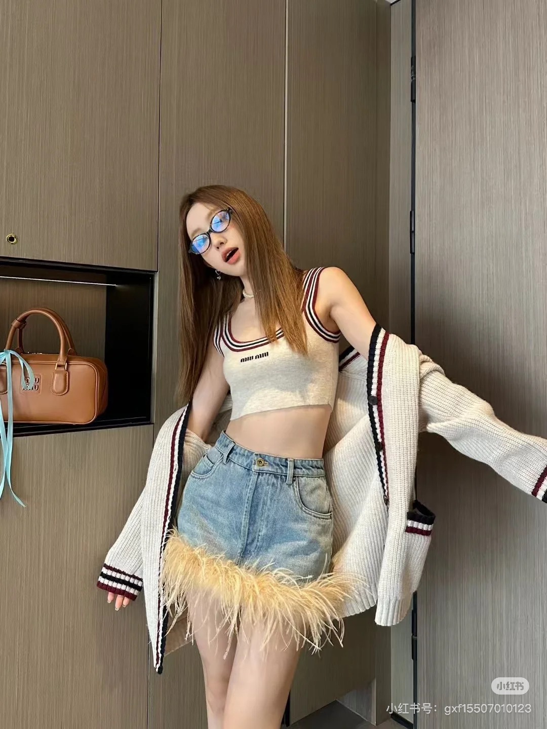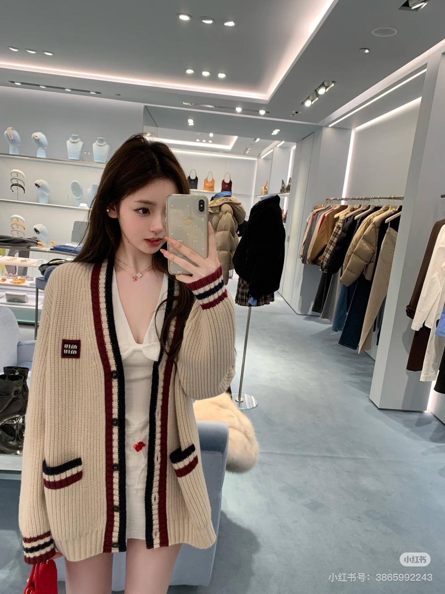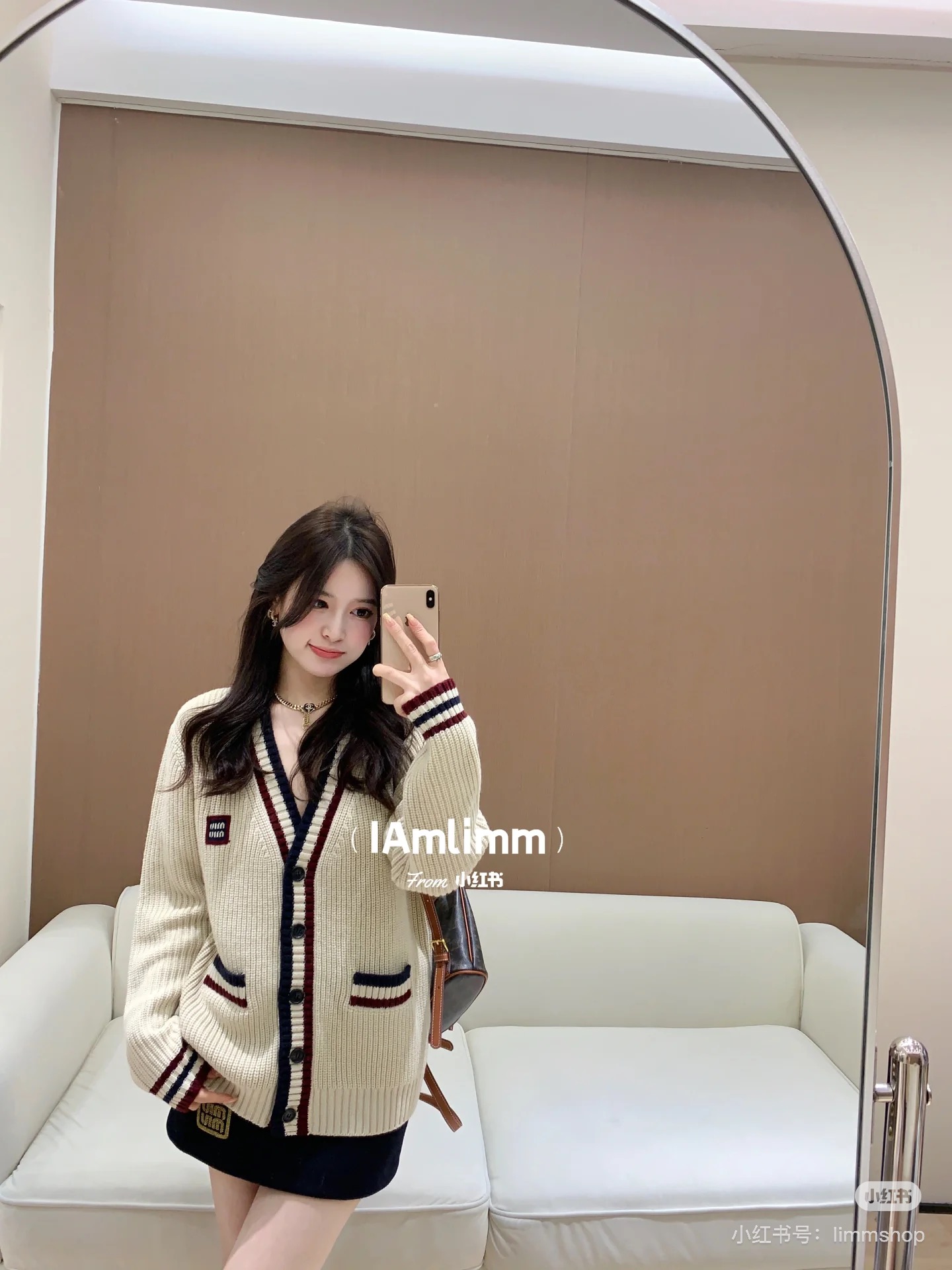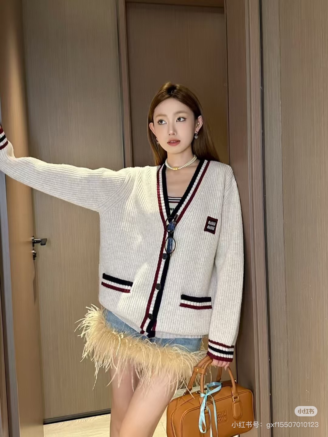这款衣服是AAAAA 1:1 质量 (非常棒). 使用了和原版一模一样的材料. 商标部分也保持了和缪缪/Miu Miu一样. 图片拍摄是实物衣服拍摄, 您所收到的实物保证和我们图片一模一样.