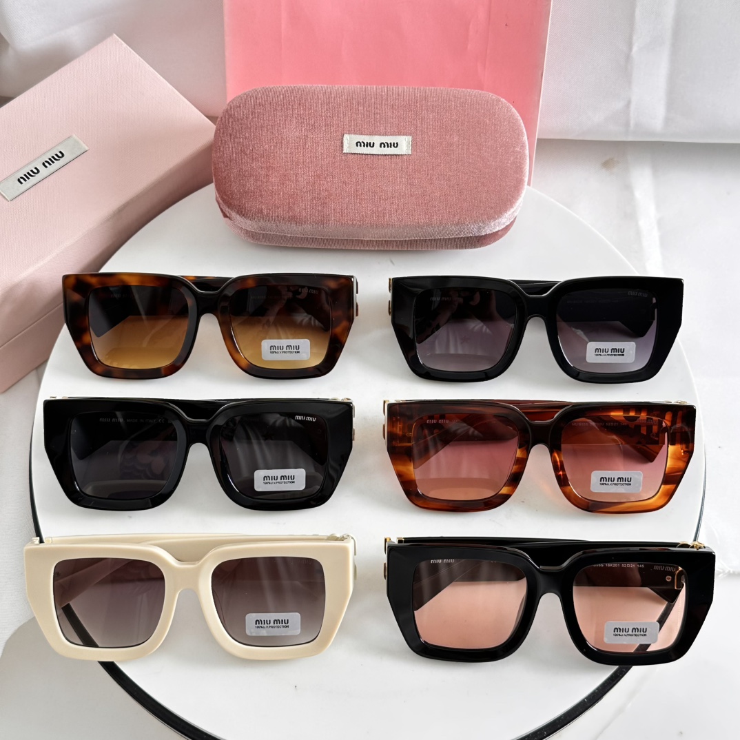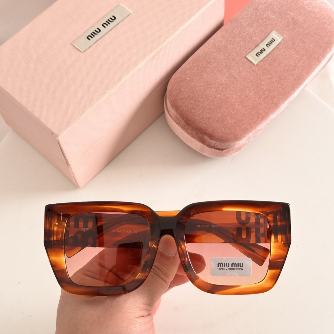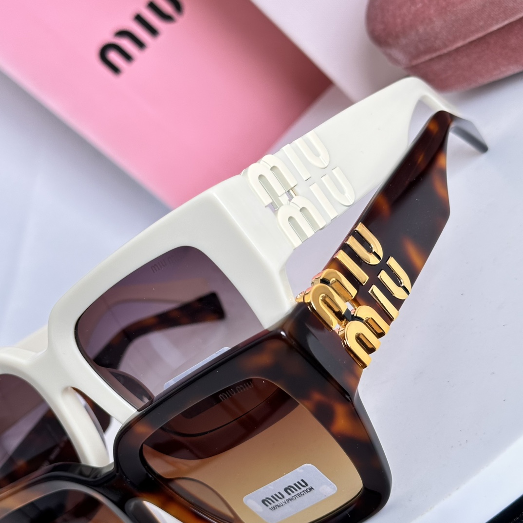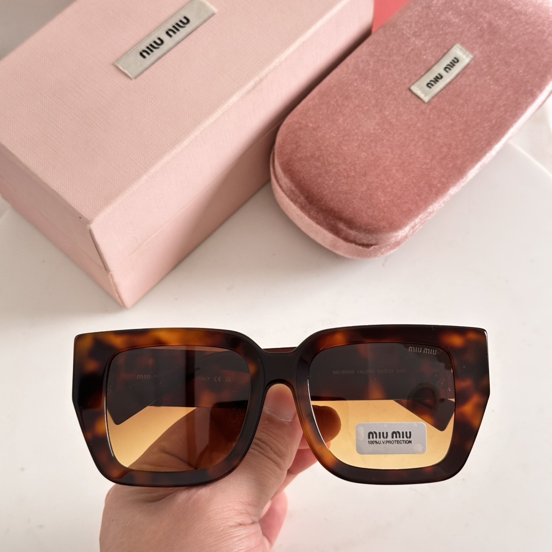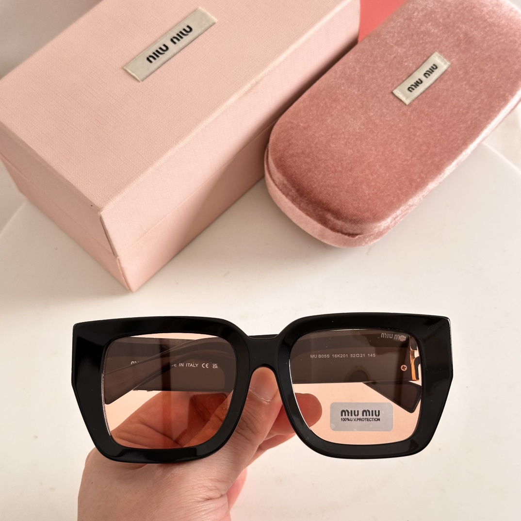 这款太阳眼镜是AAAAA 1:1 质量 (非常棒). 使用了和原版一模一样的材料. 商标部分也保持了和缪缪/Miu Miu一样. 图片拍摄是实物太阳眼镜拍摄, 您所收到的实物保证和我们图片一模一样.