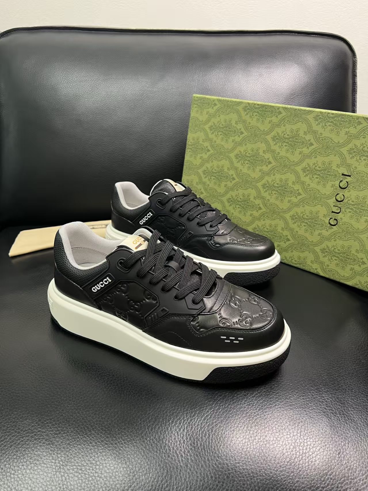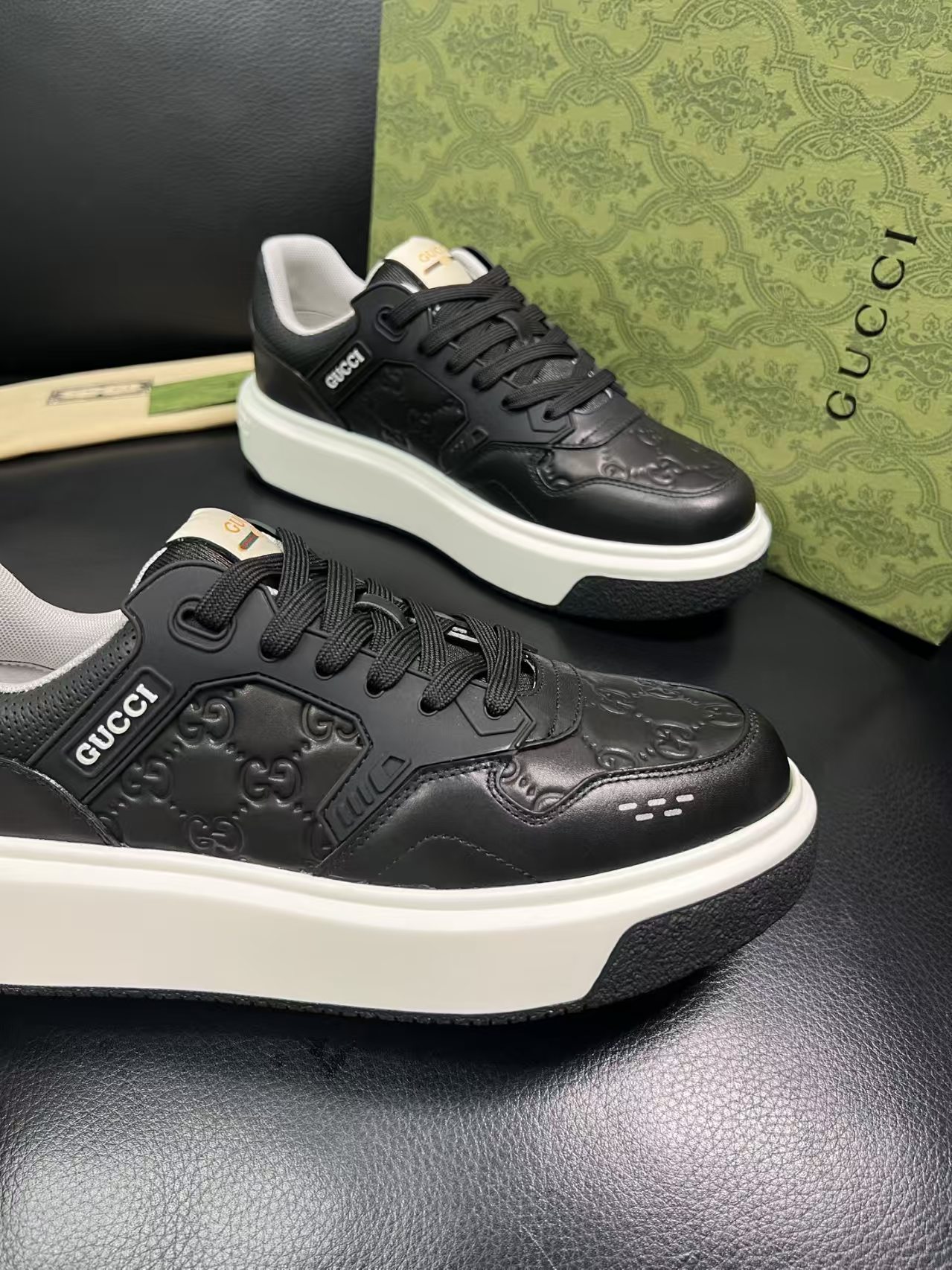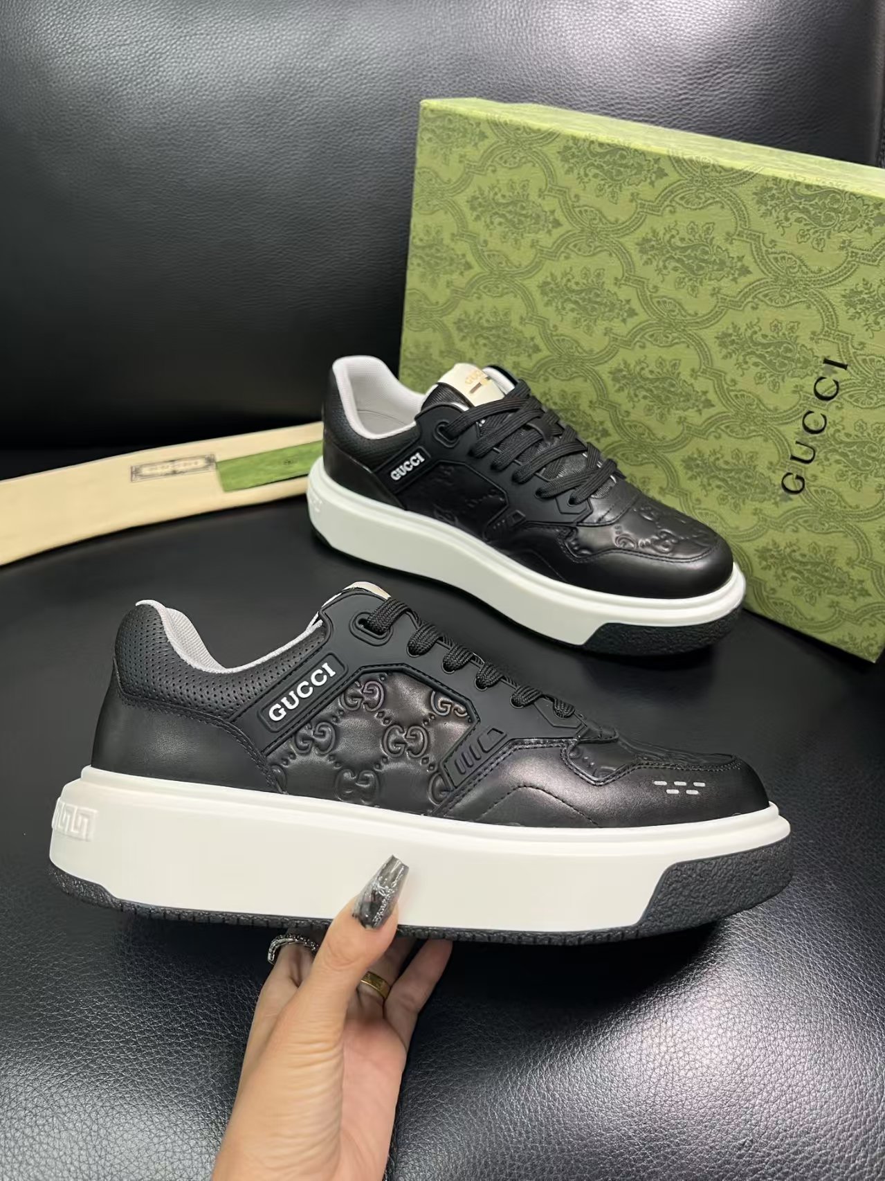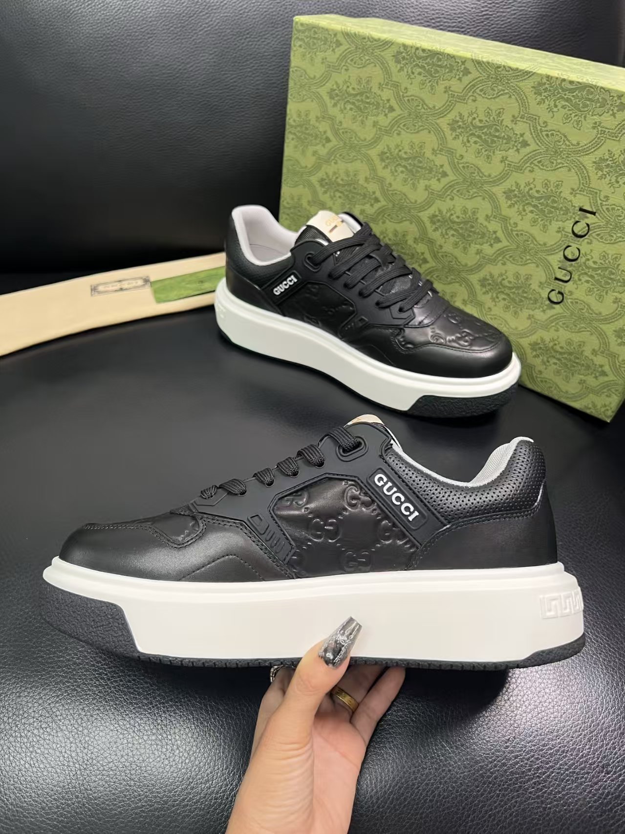 这款鞋子是AAAAA 1:1 质量 (非常棒). 使用了和原版一模一样的材料. 商标部分也保持了和古奇/Gucci一样. 图片拍摄是实物鞋子拍摄, 您所收到的实物保证和我们图片一模一样.