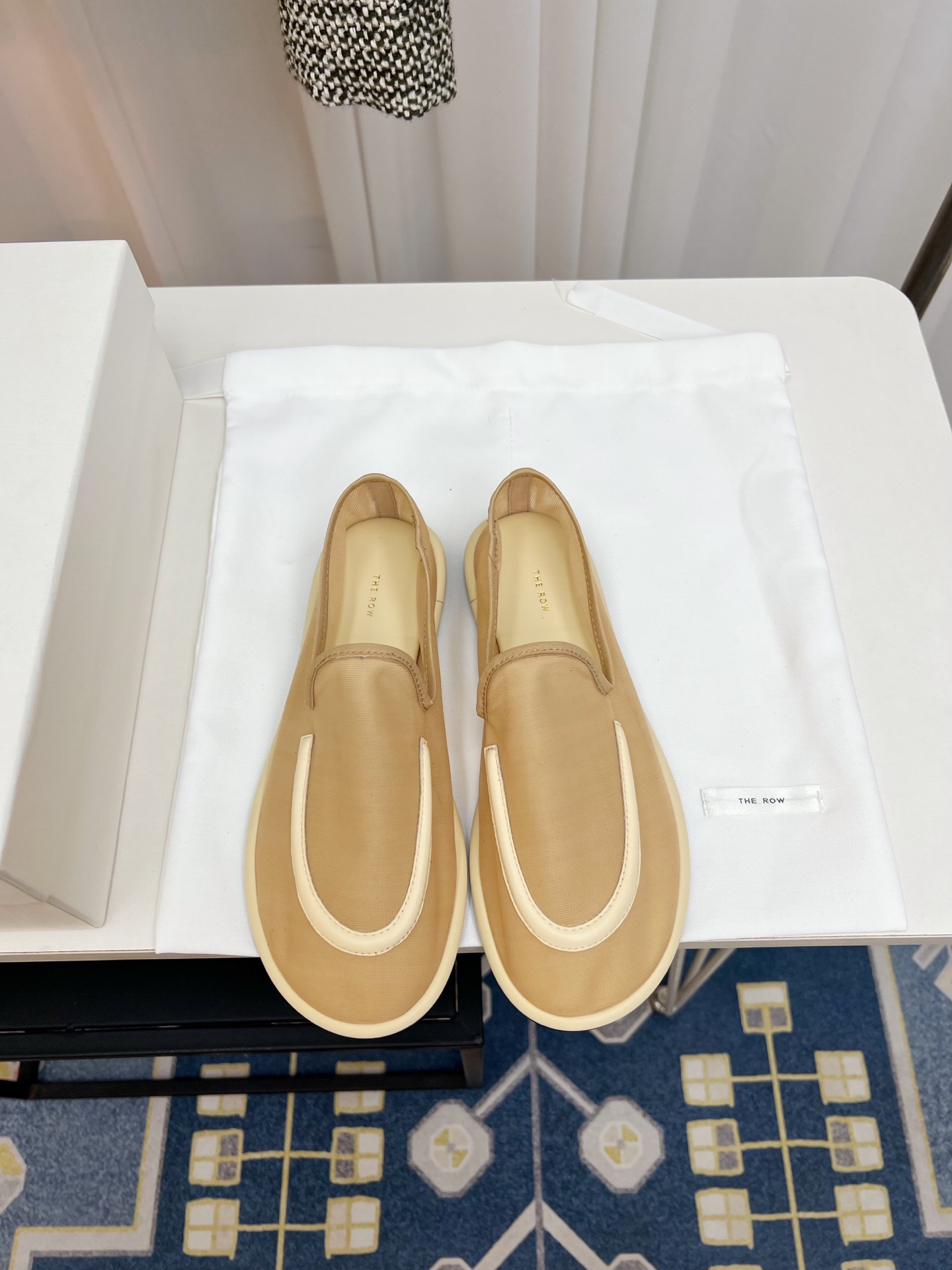 这款鞋子是AAAAA 1:1 质量 (非常棒). 使用了和原版一模一样的材料. 商标部分也保持了和The Row一样. 图片拍摄是实物鞋子拍摄, 您所收到的实物保证和我们图片一模一样.
