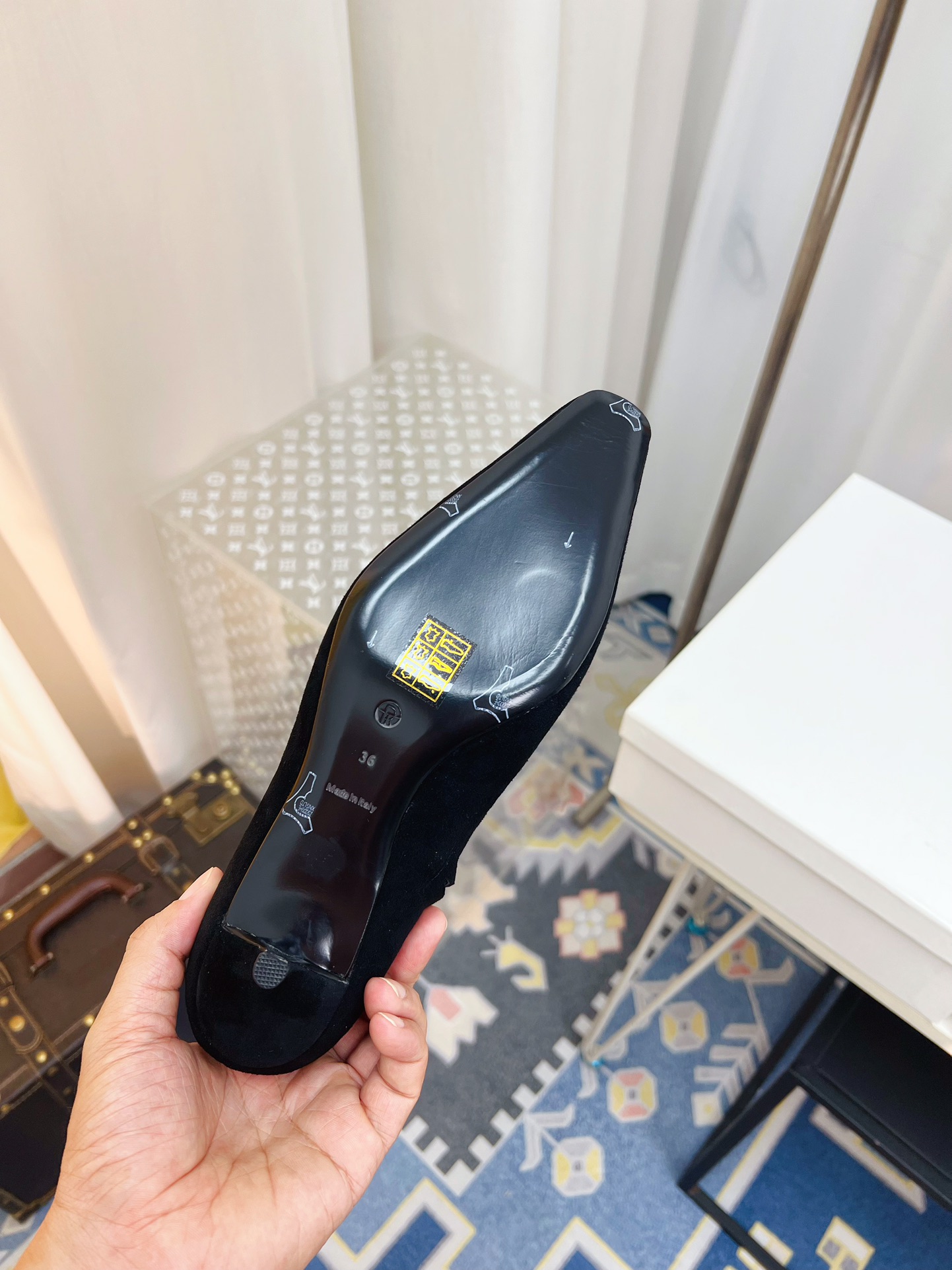 这款鞋子是AAAAA 1:1 质量 (非常棒). 使用了和原版一模一样的材料. 商标部分也保持了和The Row一样. 图片拍摄是实物鞋子拍摄, 您所收到的实物保证和我们图片一模一样.
