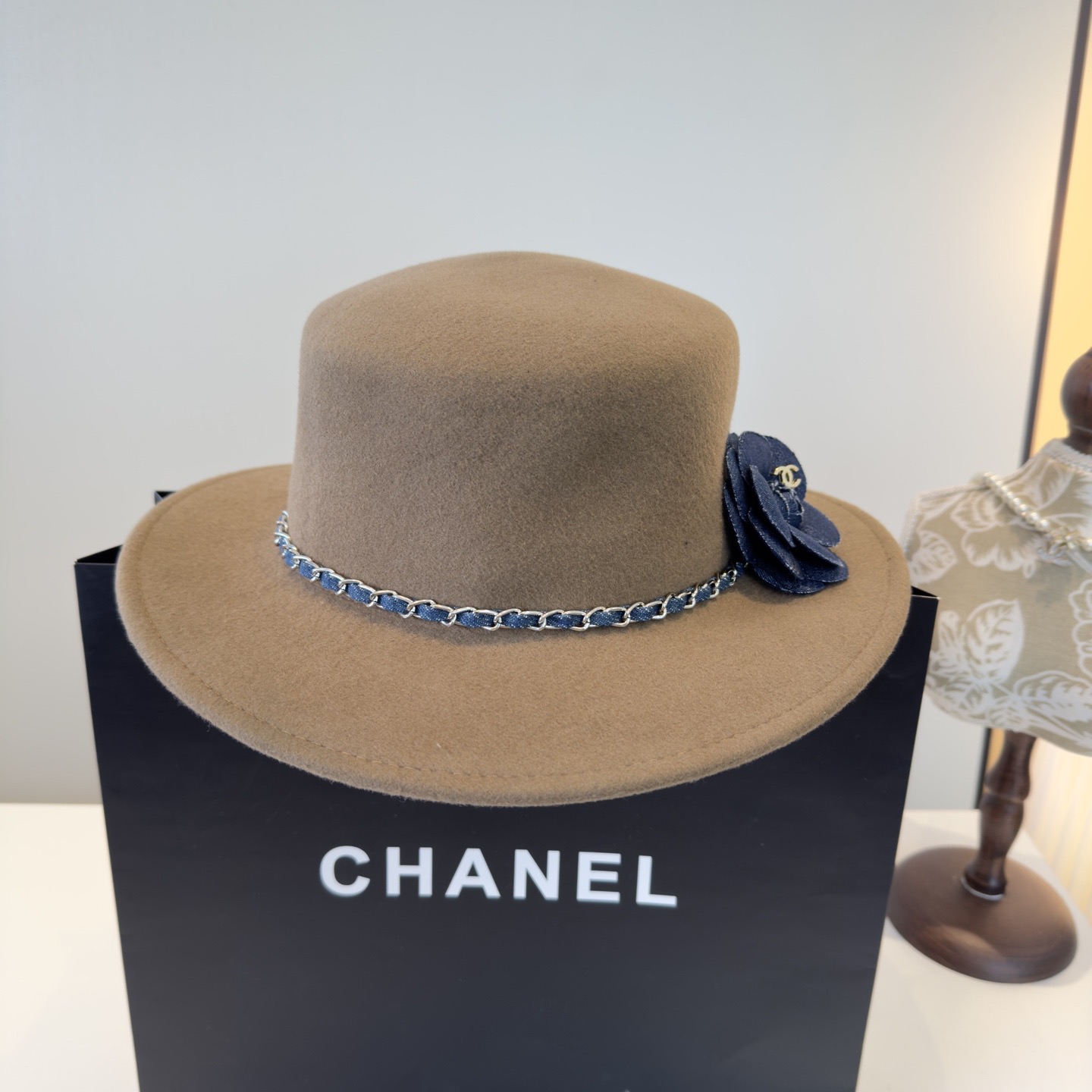 这款帽子是AAAAA 1:1 质量 (非常棒). 使用了和原版一模一样的材料. 商标部分也保持了和香奈儿/Chanel一样. 图片拍摄是实物帽子拍摄, 您所收到的实物保证和我们图片一模一样.