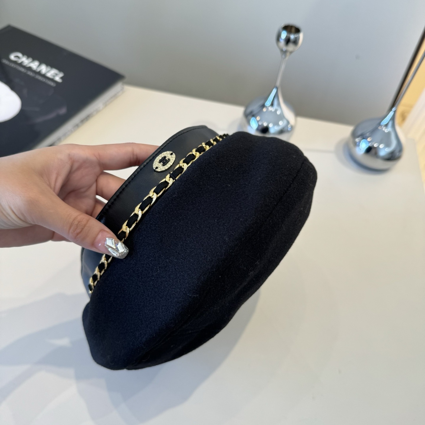 这款帽子是AAAAA 1:1 质量 (非常棒). 使用了和原版一模一样的材料. 商标部分也保持了和香奈儿/Chanel一样. 图片拍摄是实物帽子拍摄, 您所收到的实物保证和我们图片一模一样.
