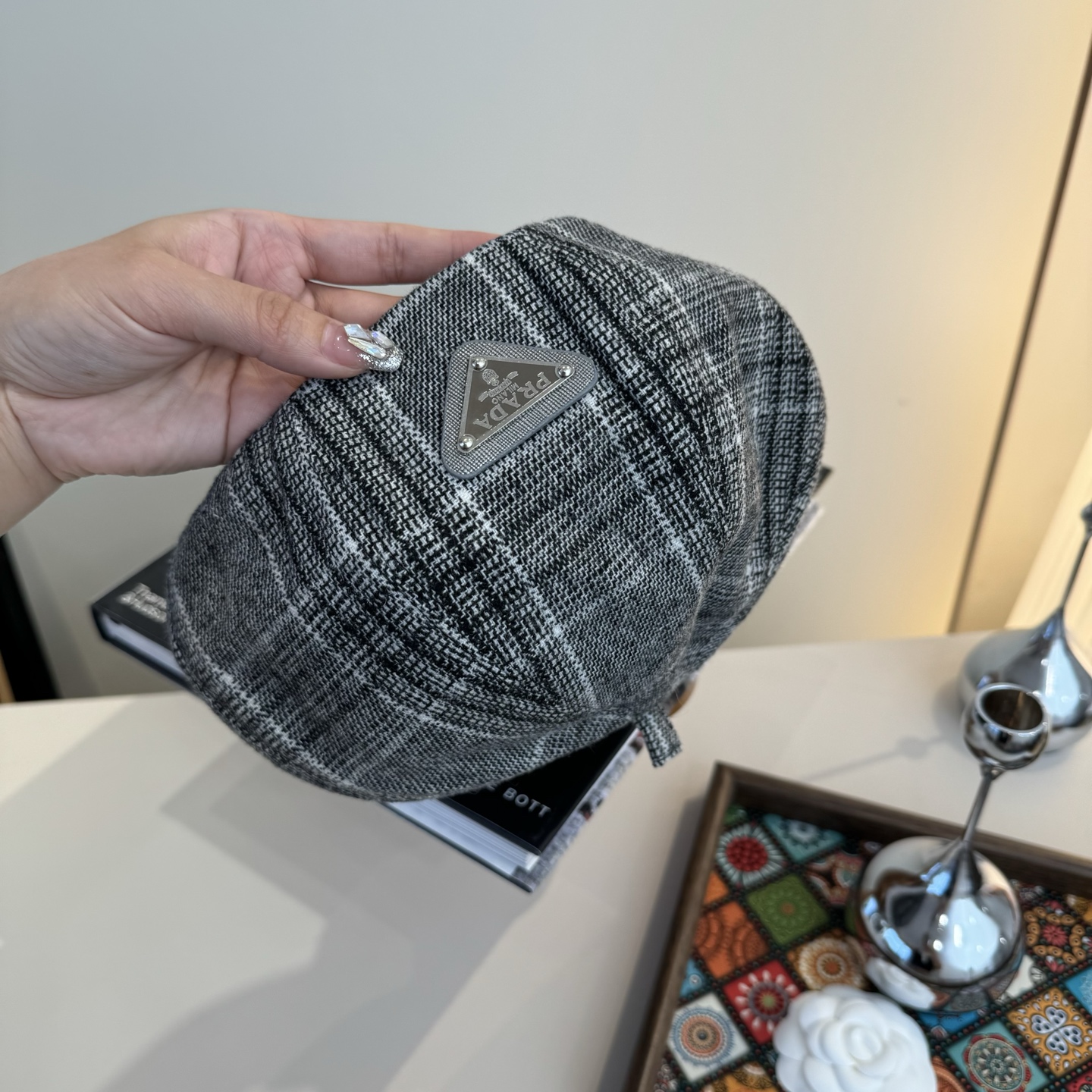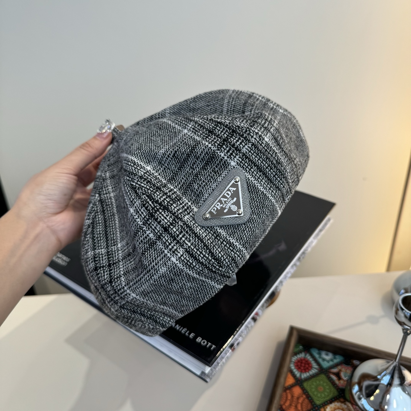这款帽子是AAAAA 1:1 质量 (非常棒). 使用了和原版一模一样的材料. 商标部分也保持了和普拉达/Prada一样. 图片拍摄是实物帽子拍摄, 您所收到的实物保证和我们图片一模一样.