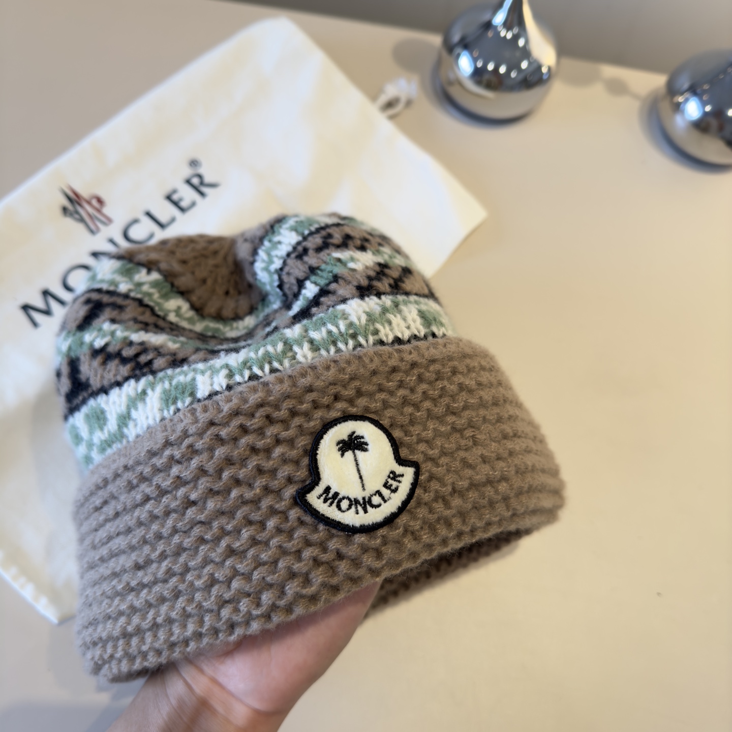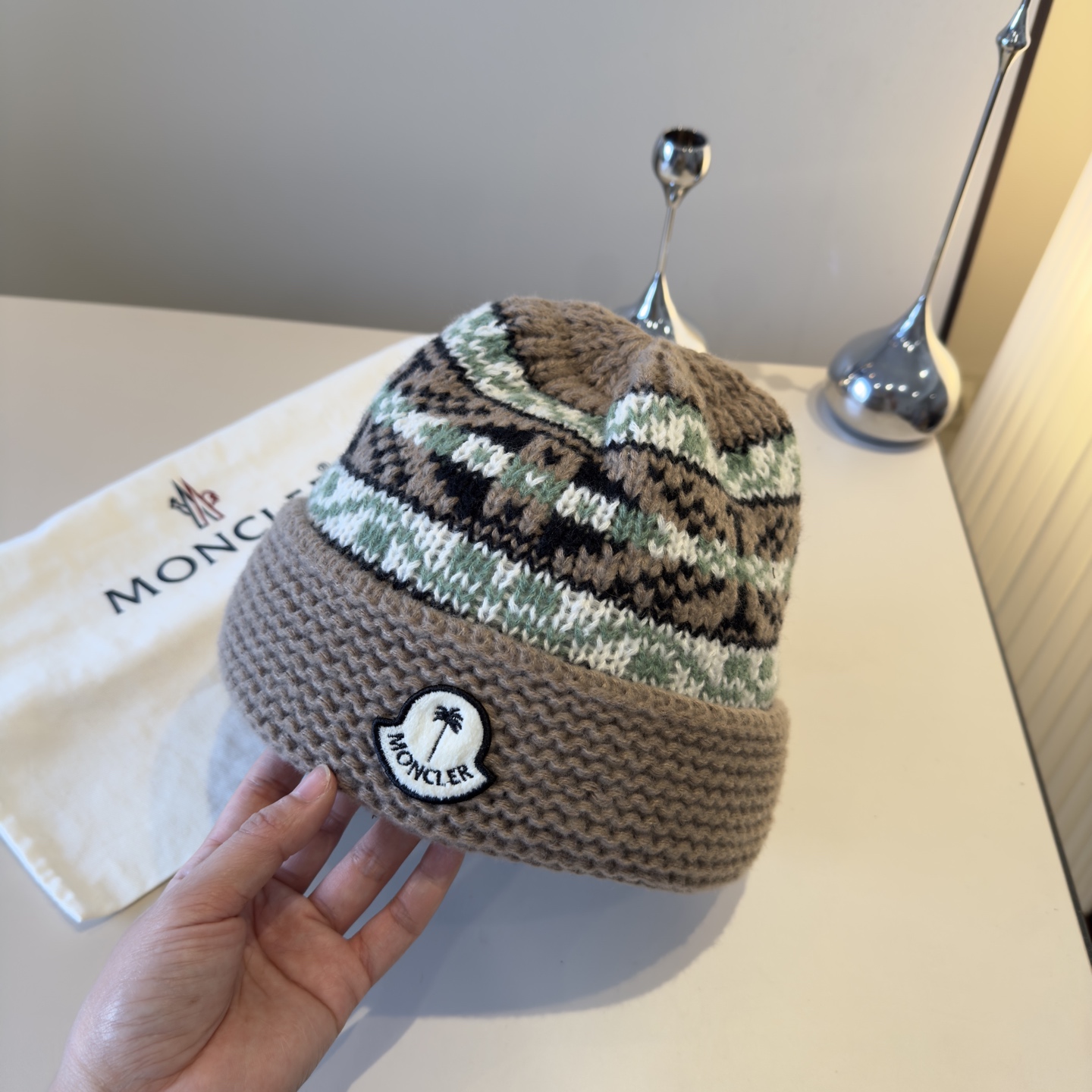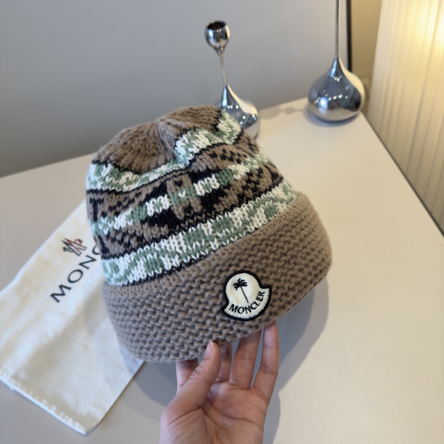 这款帽子是AAAAA 1:1 质量 (非常棒). 使用了和原版一模一样的材料. 商标部分也保持了和盟可睐/moncler一样. 图片拍摄是实物帽子拍摄, 您所收到的实物保证和我们图片一模一样.
