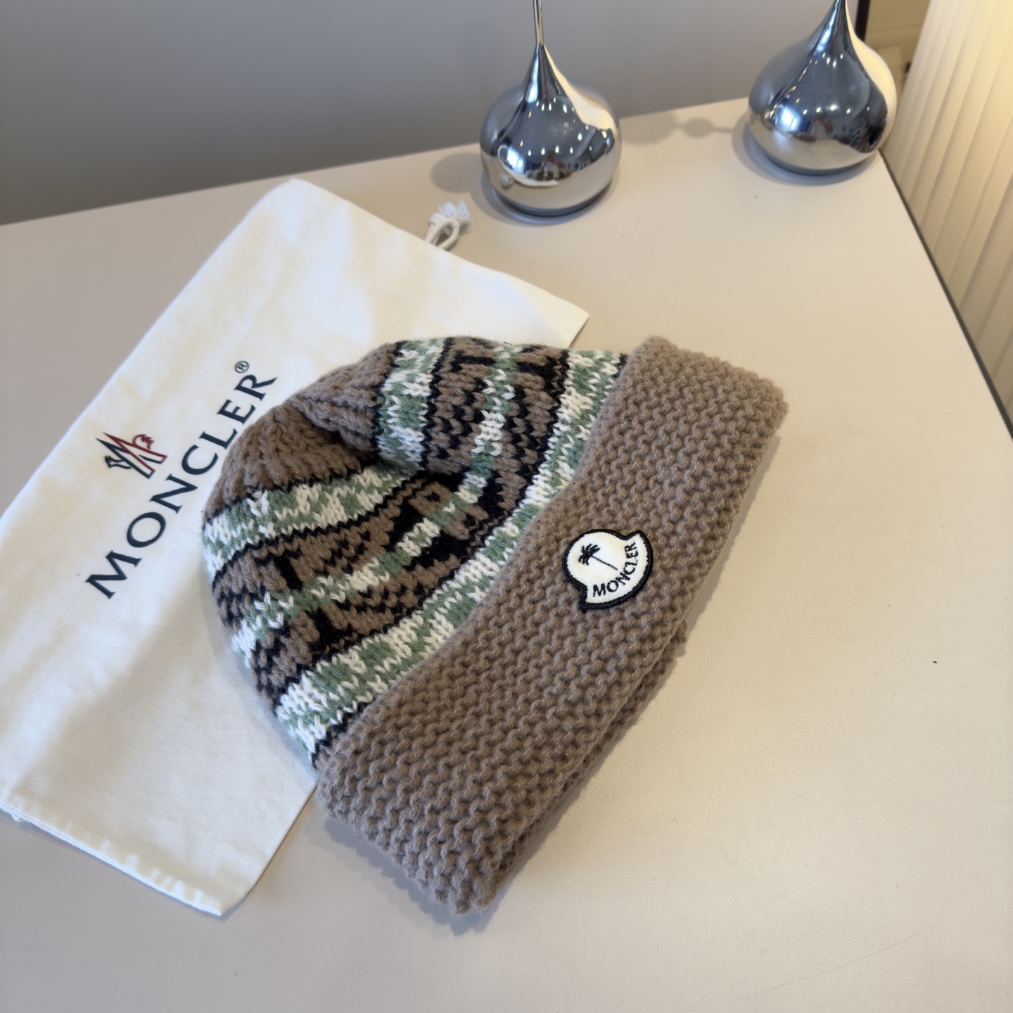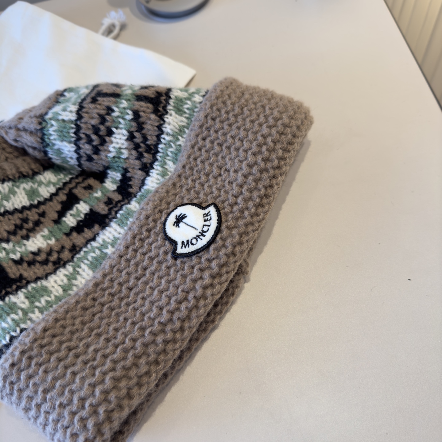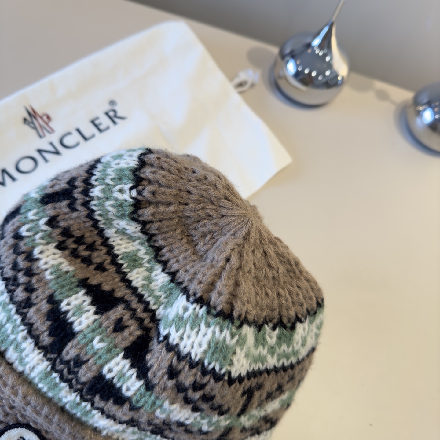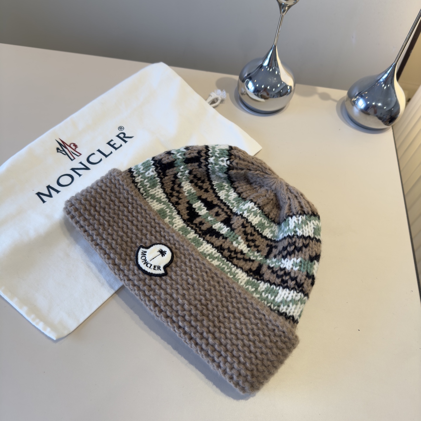 这款帽子是AAAAA 1:1 质量 (非常棒). 使用了和原版一模一样的材料. 商标部分也保持了和盟可睐/moncler一样. 图片拍摄是实物帽子拍摄, 您所收到的实物保证和我们图片一模一样.