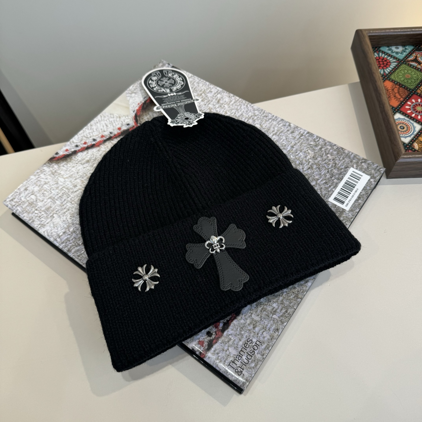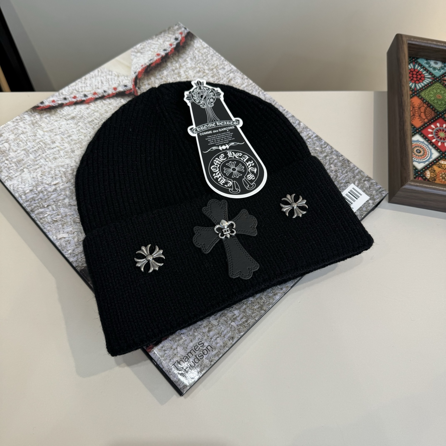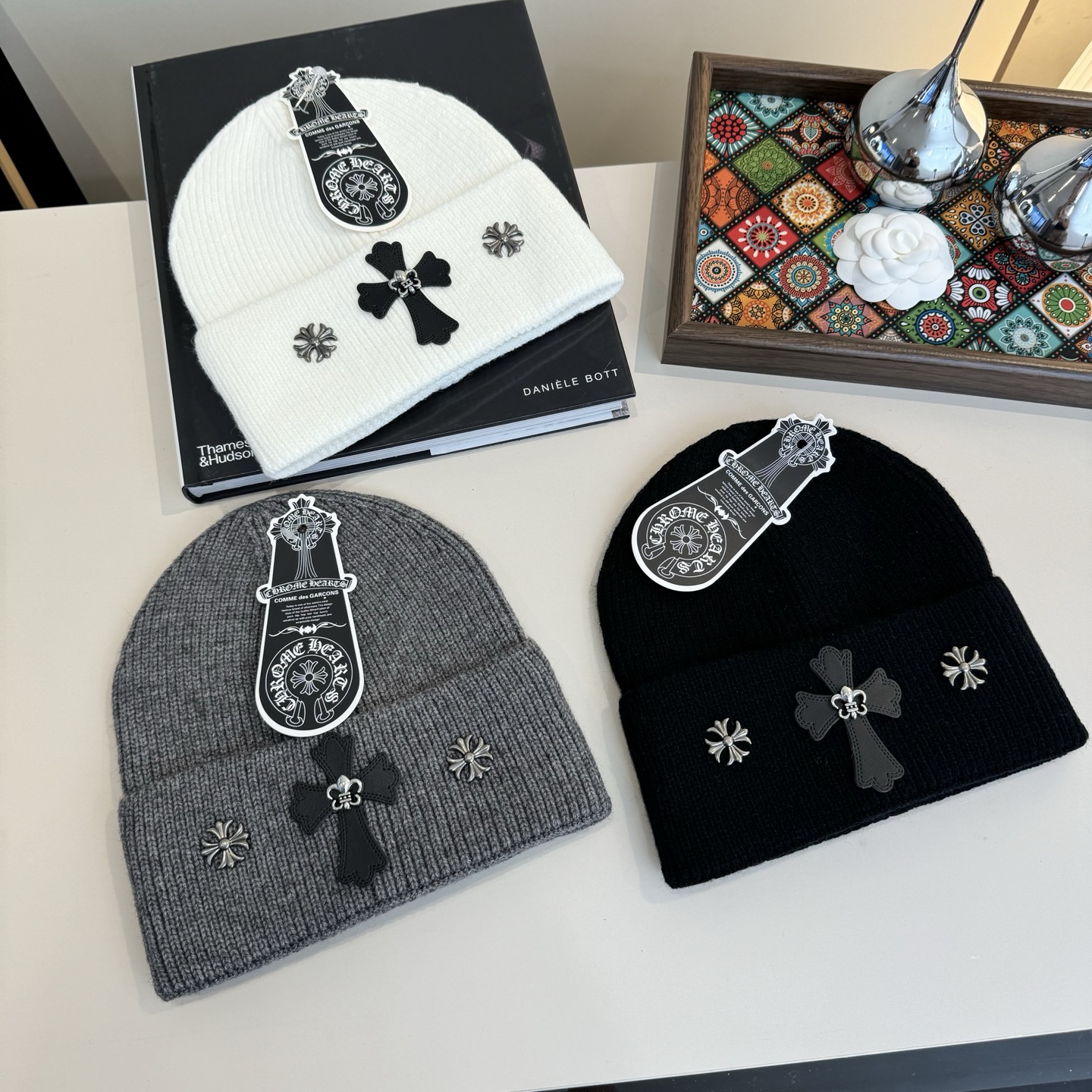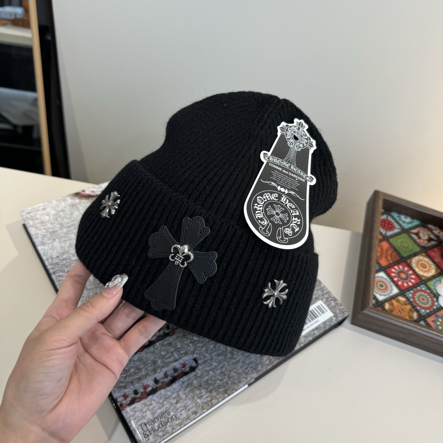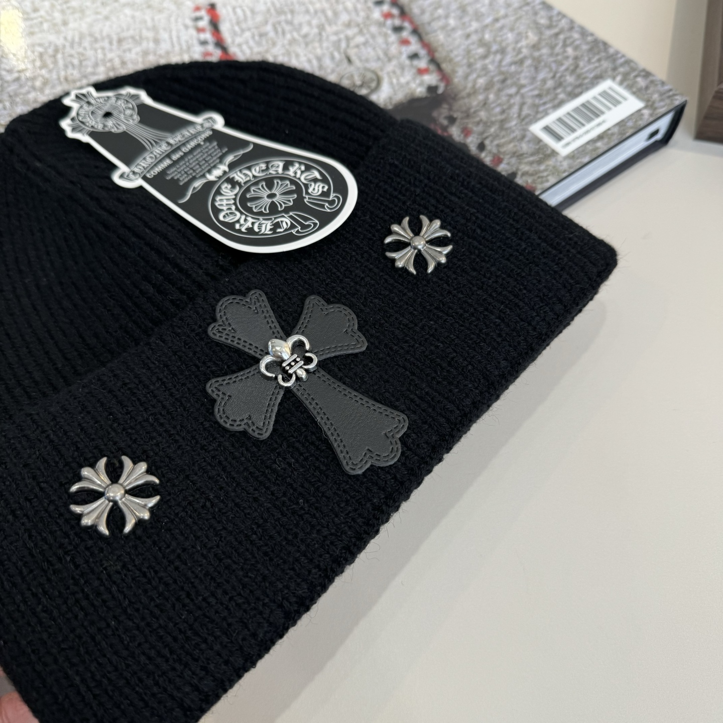 这款帽子是AAAAA 1:1 质量 (非常棒). 使用了和原版一模一样的材料. 商标部分也保持了和克罗心/Chrome Hearts一样. 图片拍摄是实物帽子拍摄, 您所收到的实物保证和我们图片一模一样.