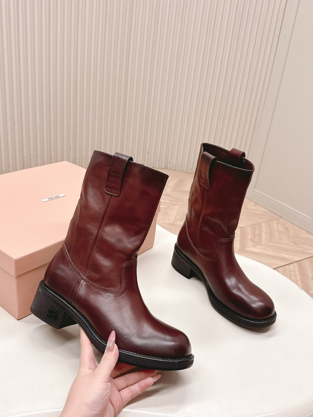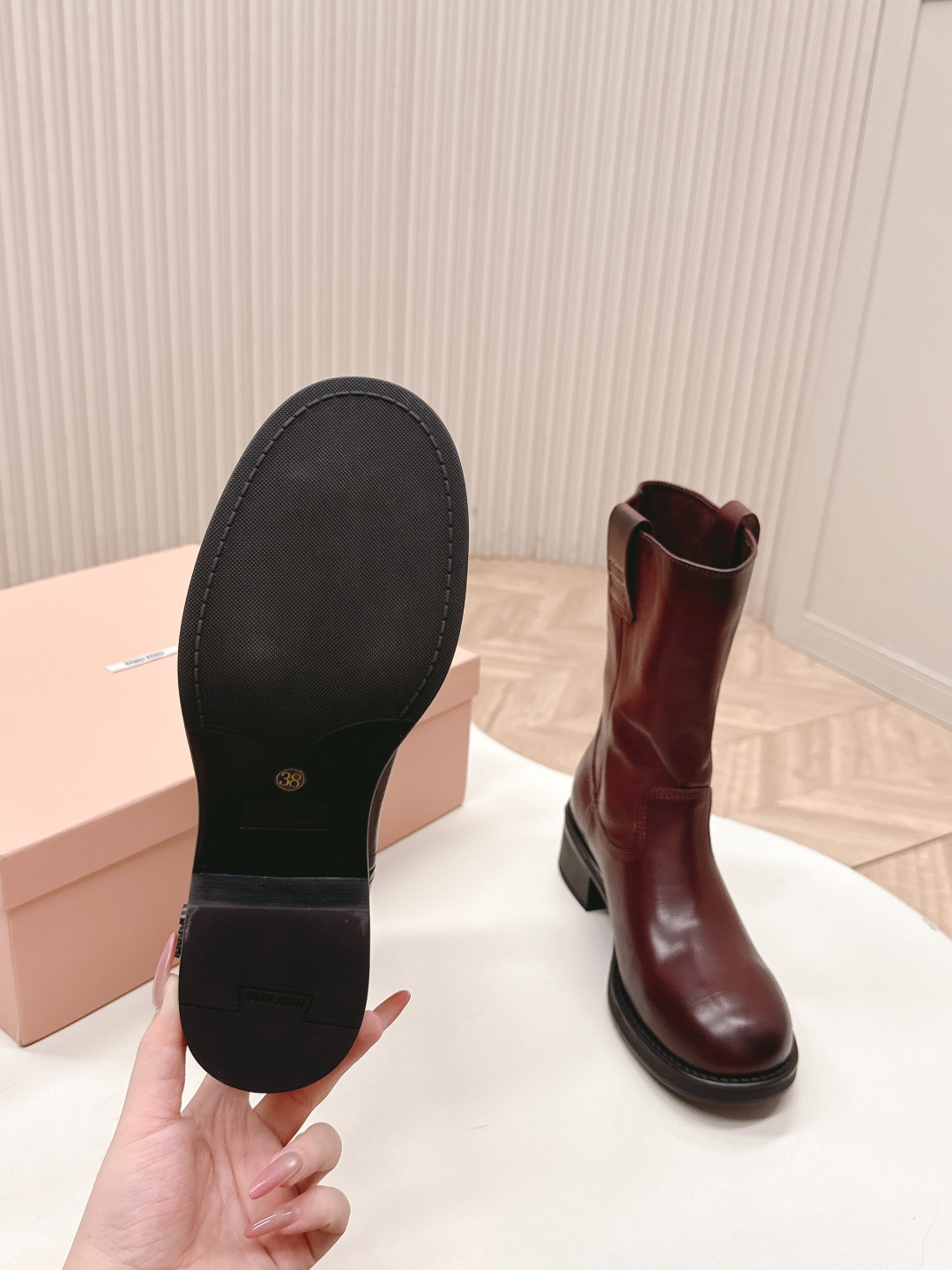 这款鞋子是AAAAA 1:1 质量 (非常棒). 使用了和原版一模一样的材料. 商标部分也保持了和缪缪/Miu Miu一样. 图片拍摄是实物鞋子拍摄, 您所收到的实物保证和我们图片一模一样.