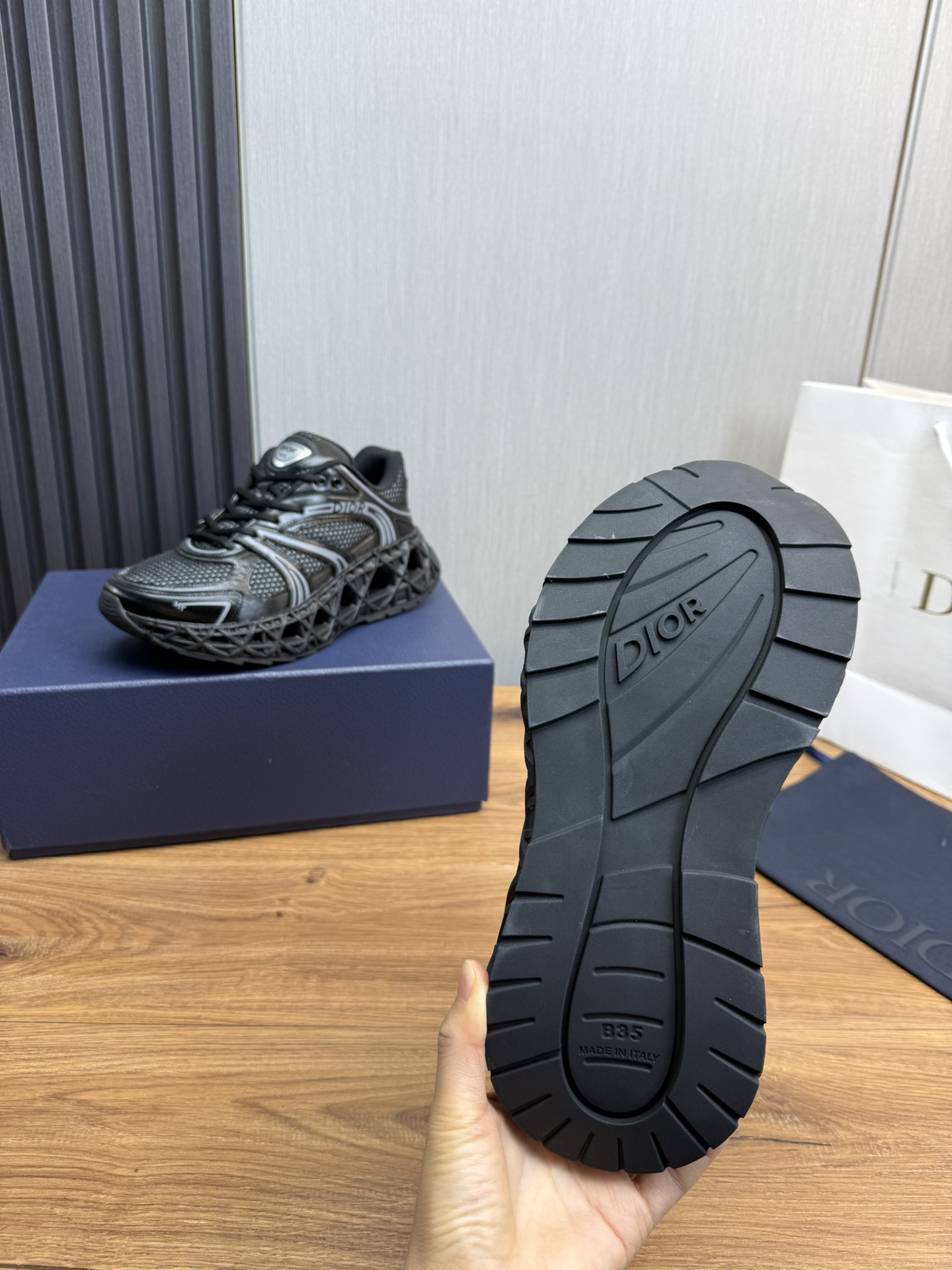 这款鞋子是AAAAA 1:1 质量 (非常棒). 使用了和原版一模一样的材料. 商标部分也保持了和迪奥/Dior一样. 图片拍摄是实物鞋子拍摄, 您所收到的实物保证和我们图片一模一样.