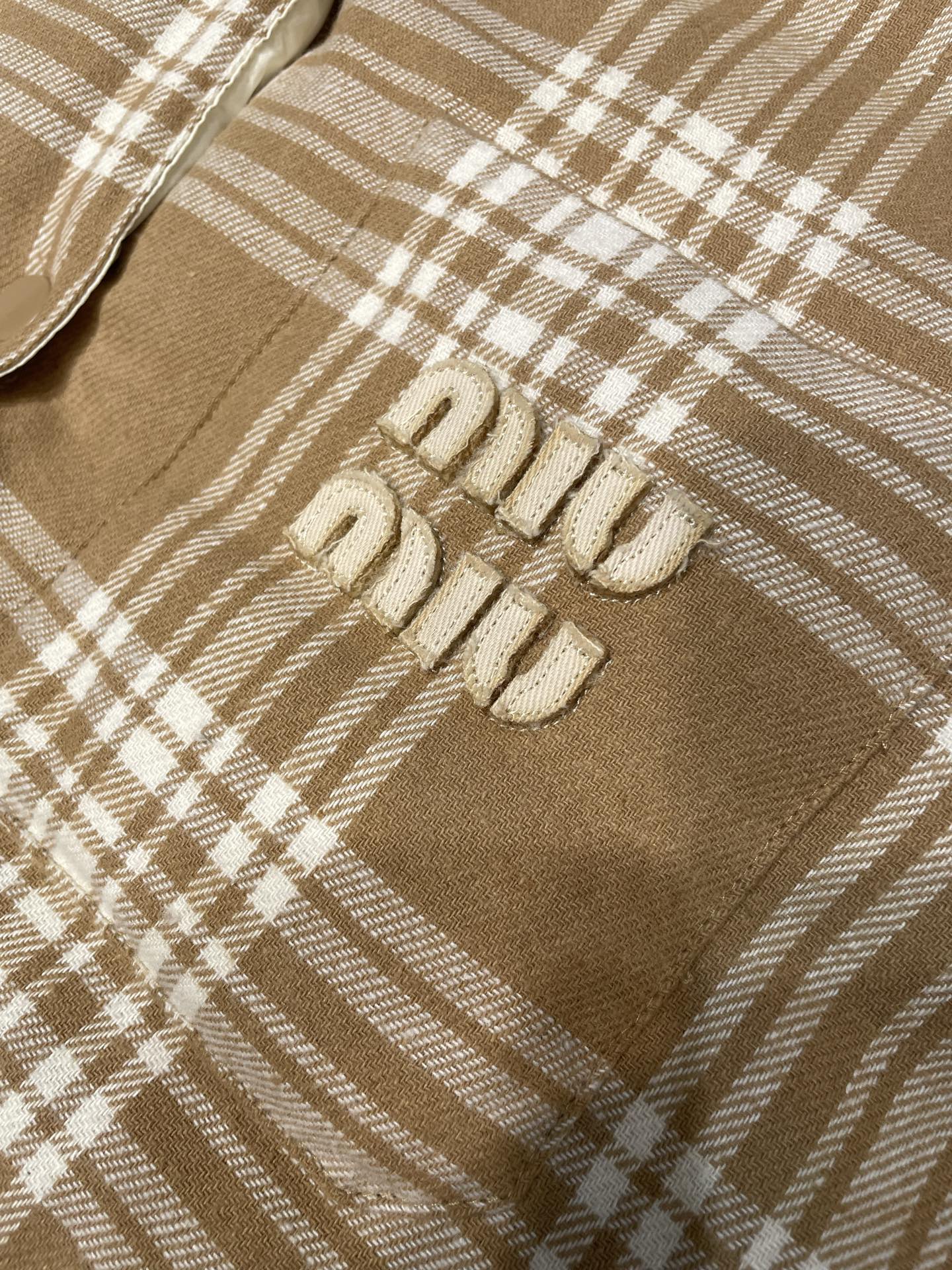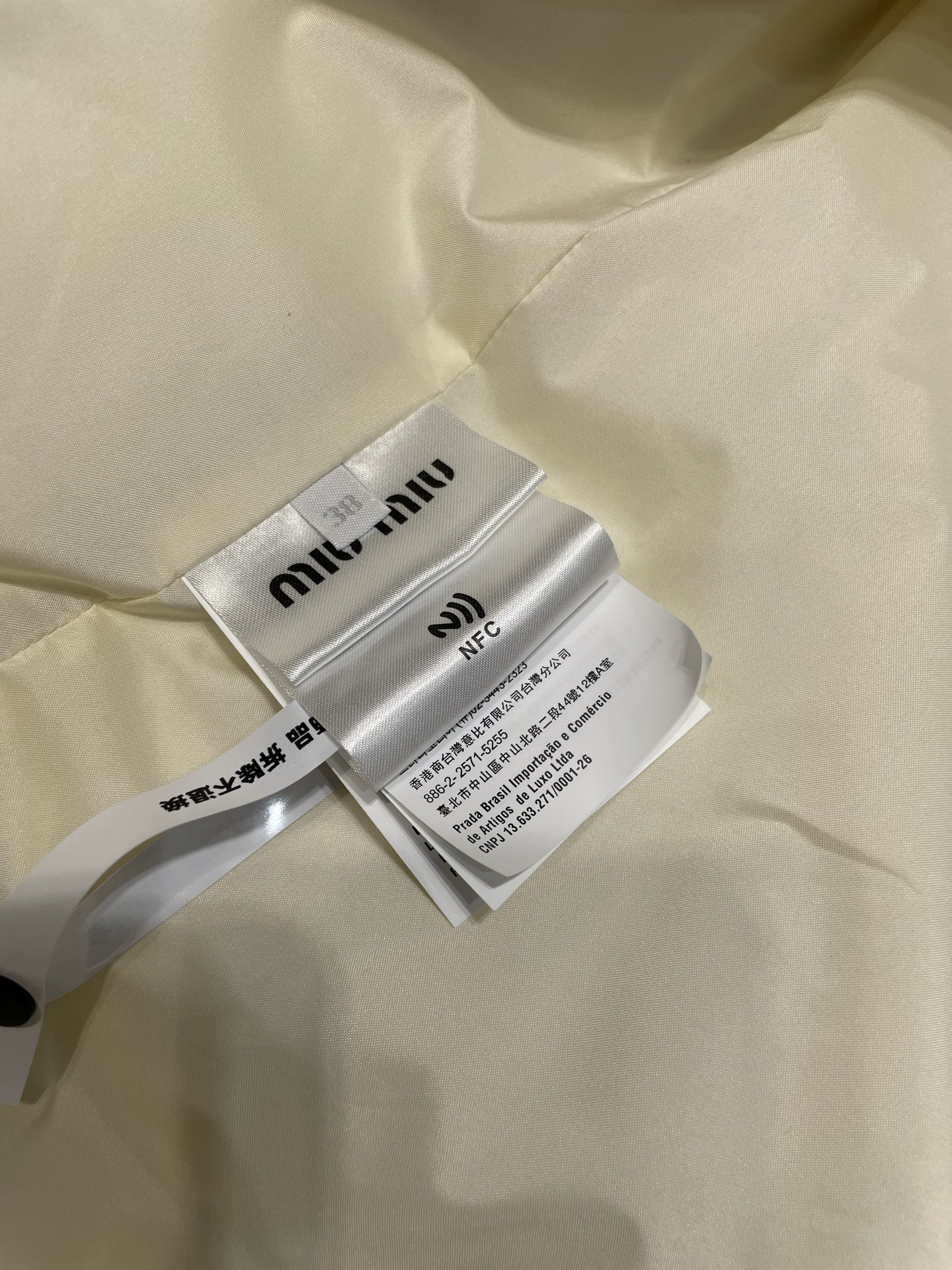 这款衣服是AAAAA 1:1 质量 (非常棒). 使用了和原版一模一样的材料. 商标部分也保持了和缪缪/Miu Miu一样. 图片拍摄是实物衣服拍摄, 您所收到的实物保证和我们图片一模一样.