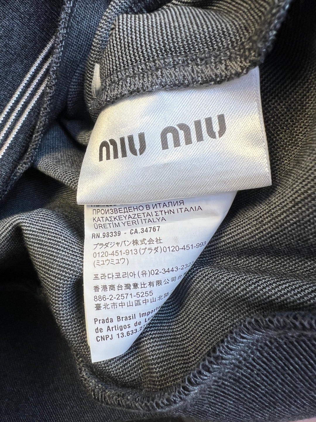这款衣服是AAAAA 1:1 质量 (非常棒). 使用了和原版一模一样的材料. 商标部分也保持了和缪缪/Miu Miu一样. 图片拍摄是实物衣服拍摄, 您所收到的实物保证和我们图片一模一样.