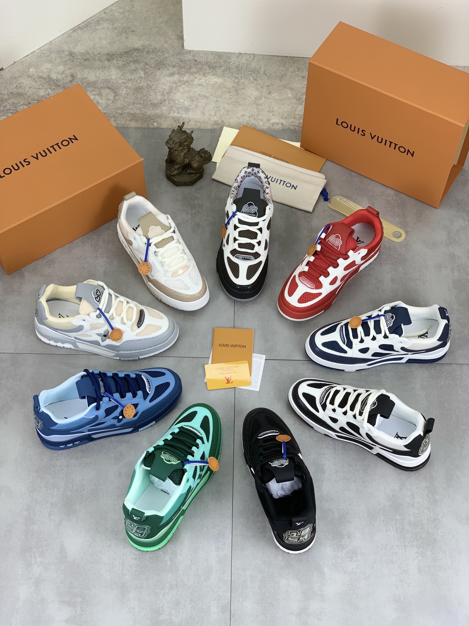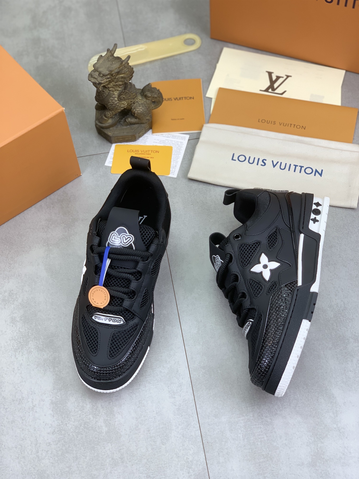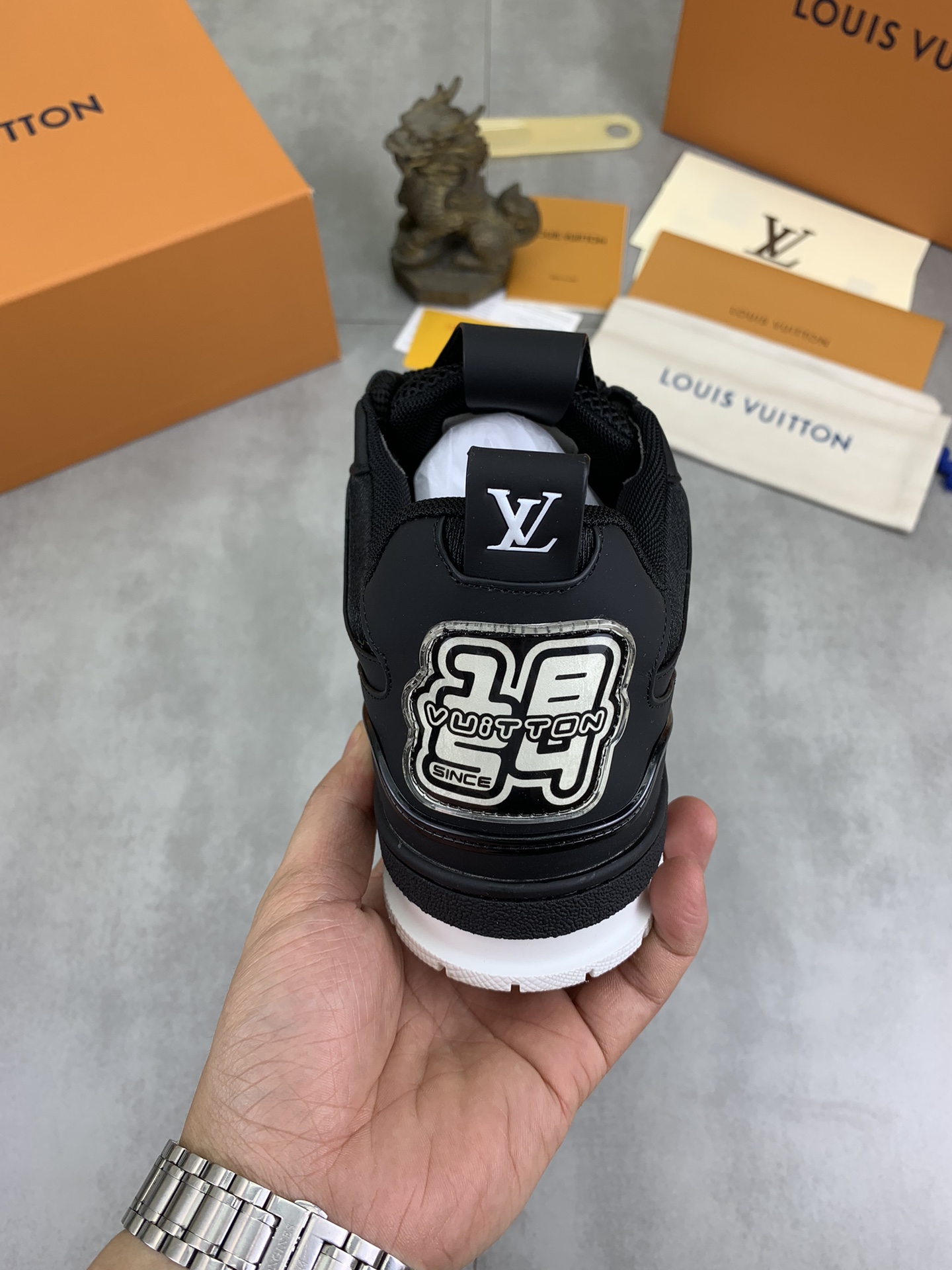 这款鞋子是AAAAA 1:1 质量 (非常棒). 使用了和原版一模一样的材料. 商标部分也保持了和路易威登/Louis Vuitton一样. 图片拍摄是实物鞋子拍摄, 您所收到的实物保证和我们图片一模一样.