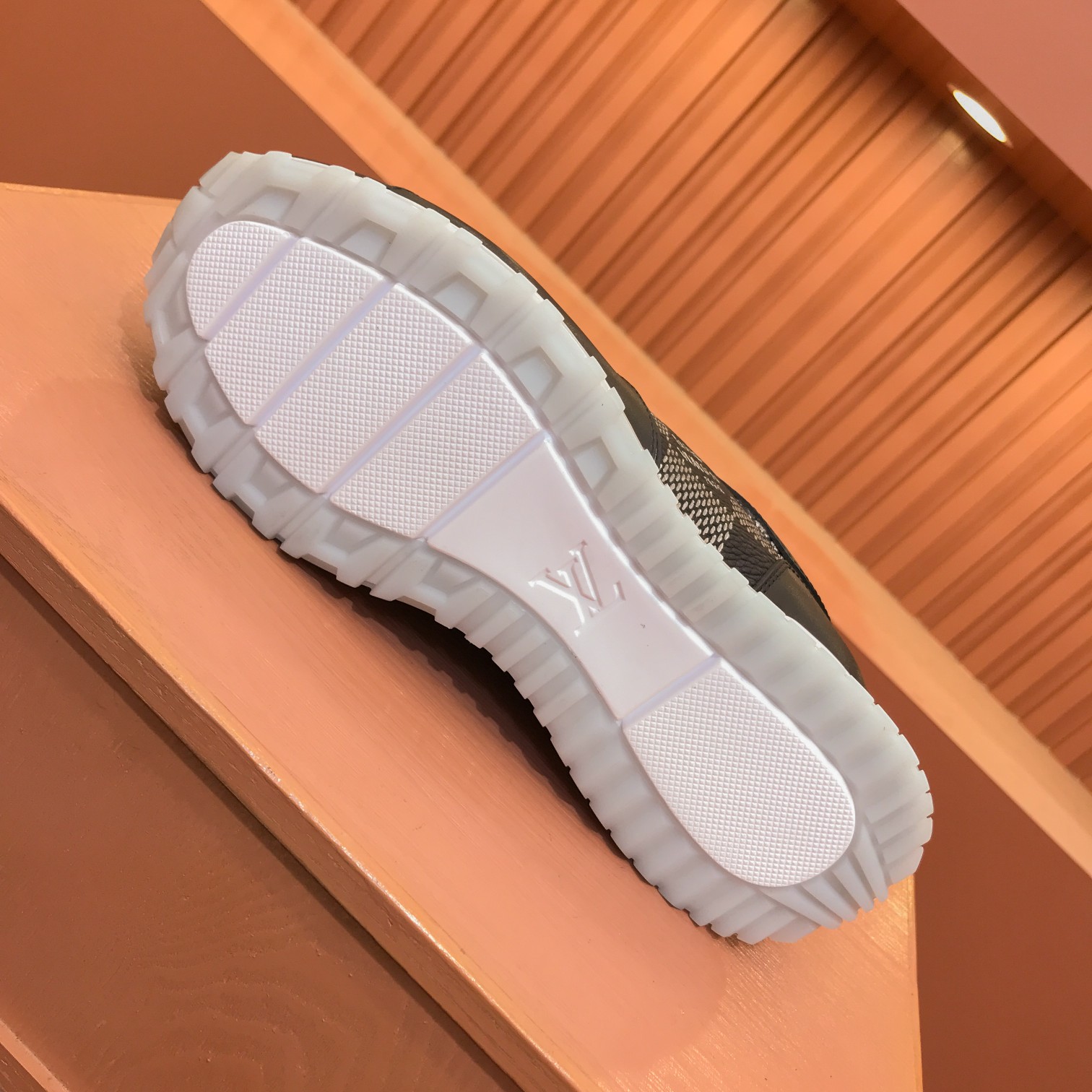 这款鞋子是AAAAA 1:1 质量 (非常棒). 使用了和原版一模一样的材料. 商标部分也保持了和路易威登/Louis Vuitton一样. 图片拍摄是实物鞋子拍摄, 您所收到的实物保证和我们图片一模一样.