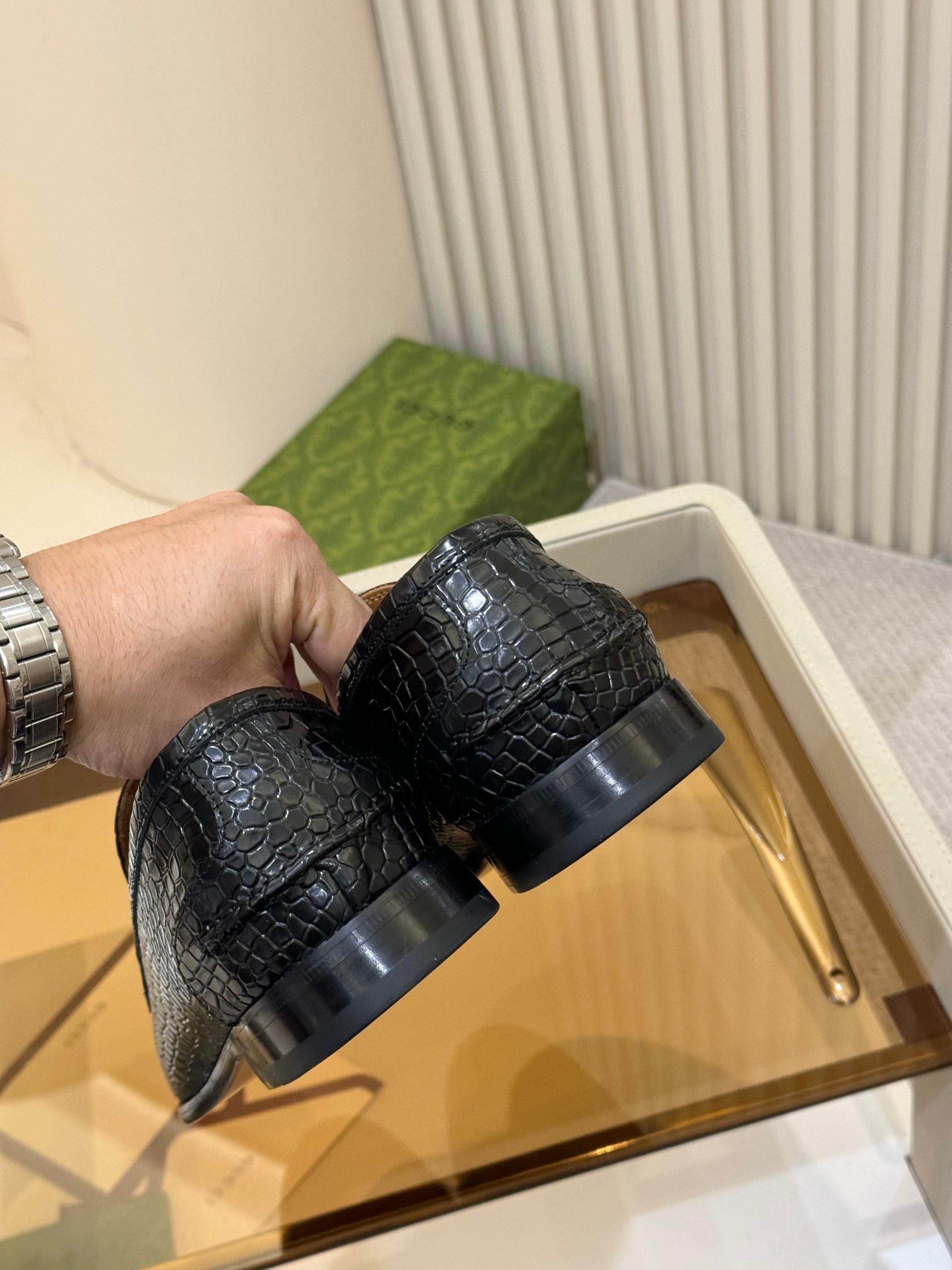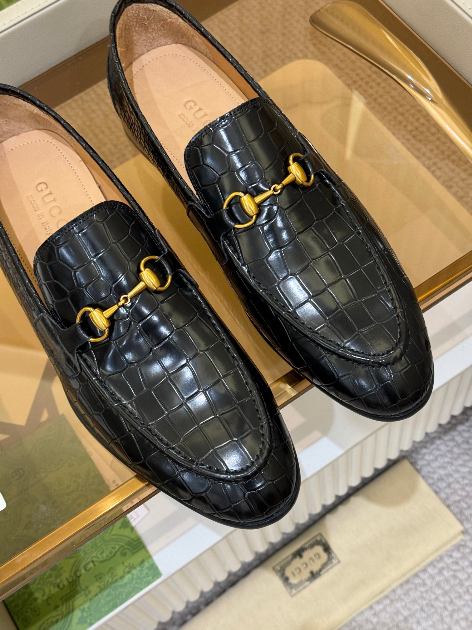 这款鞋子是AAAAA 1:1 质量 (非常棒). 使用了和原版一模一样的材料. 商标部分也保持了和古奇/Gucci一样. 图片拍摄是实物鞋子拍摄, 您所收到的实物保证和我们图片一模一样.