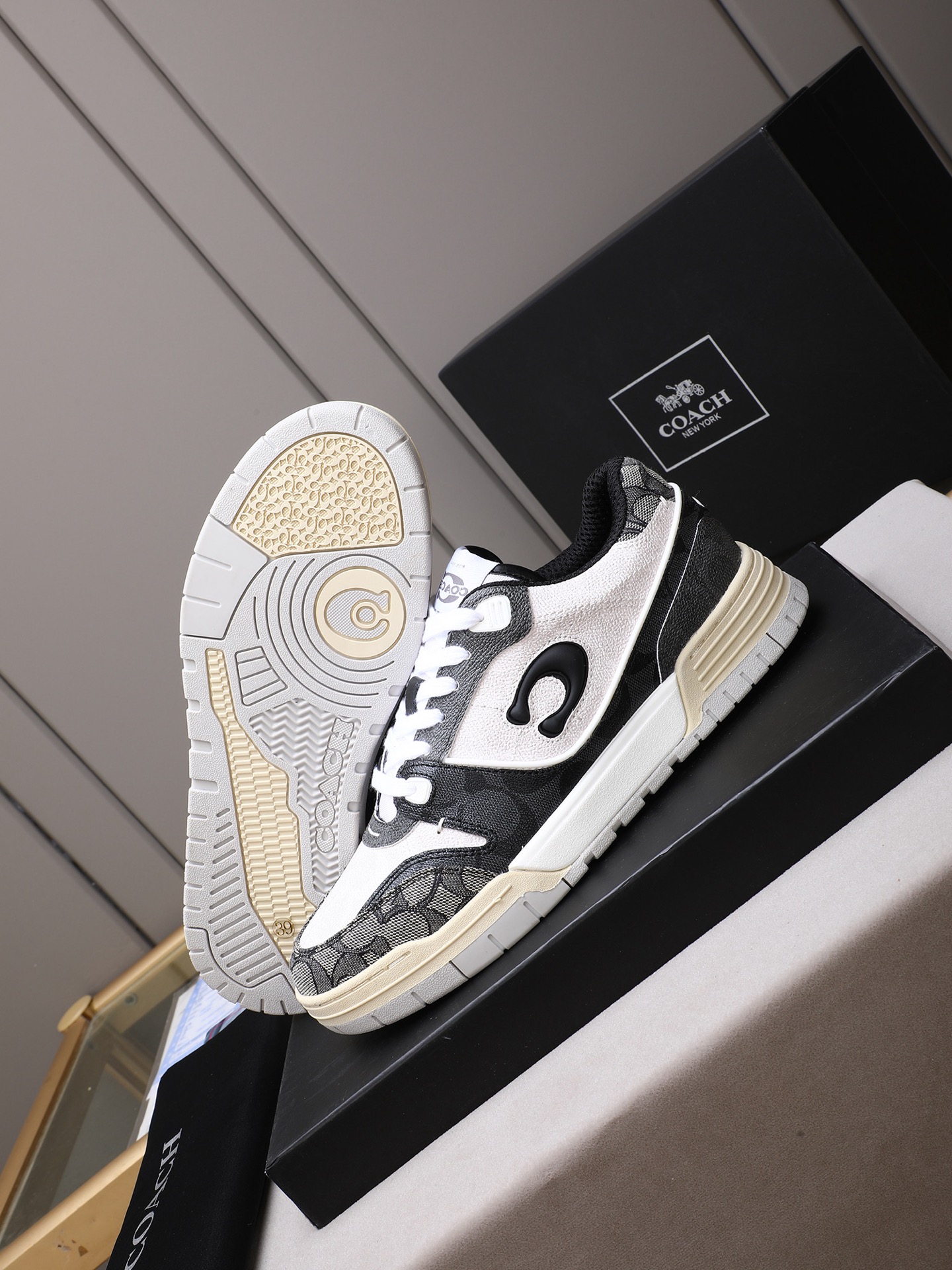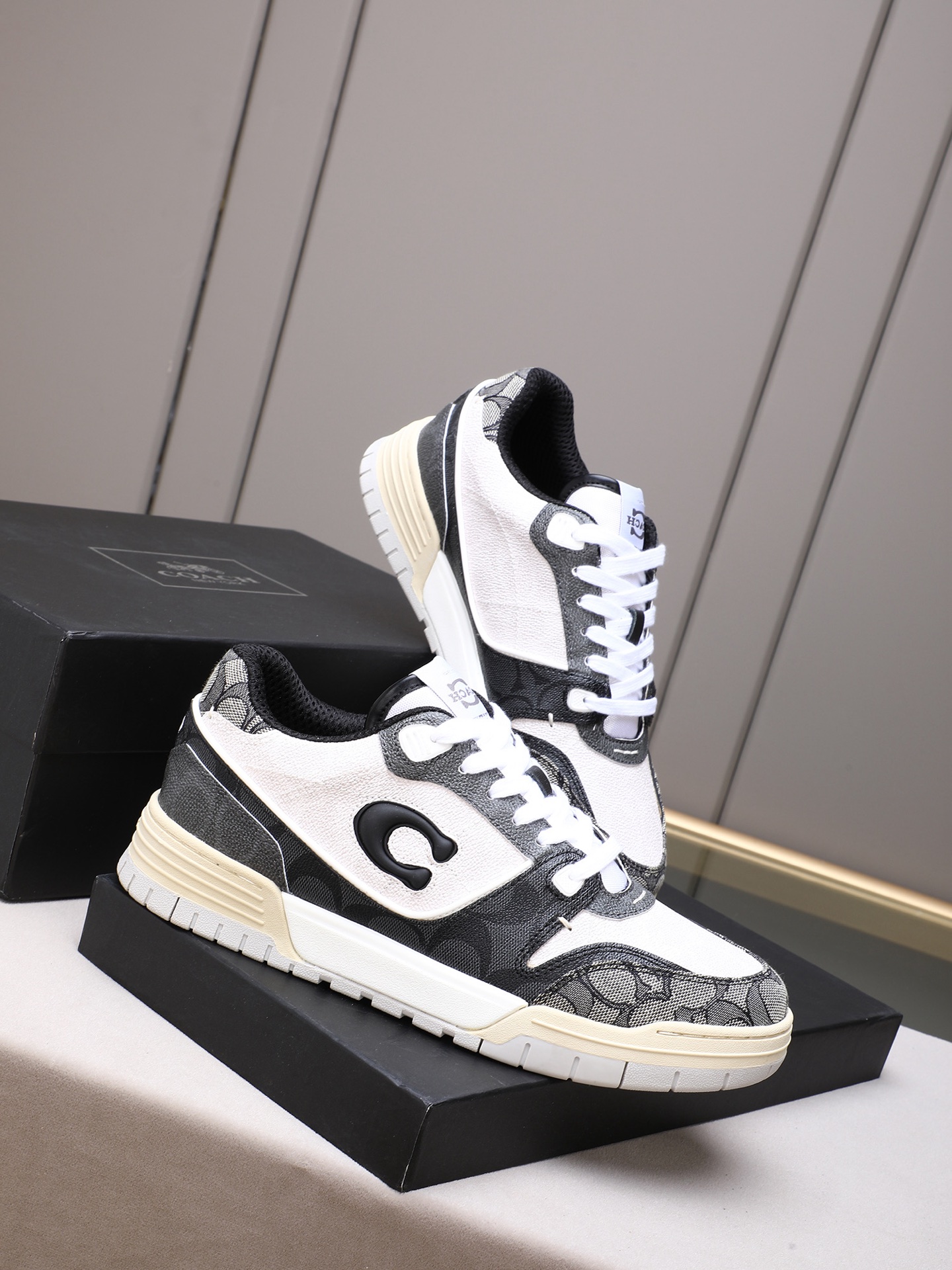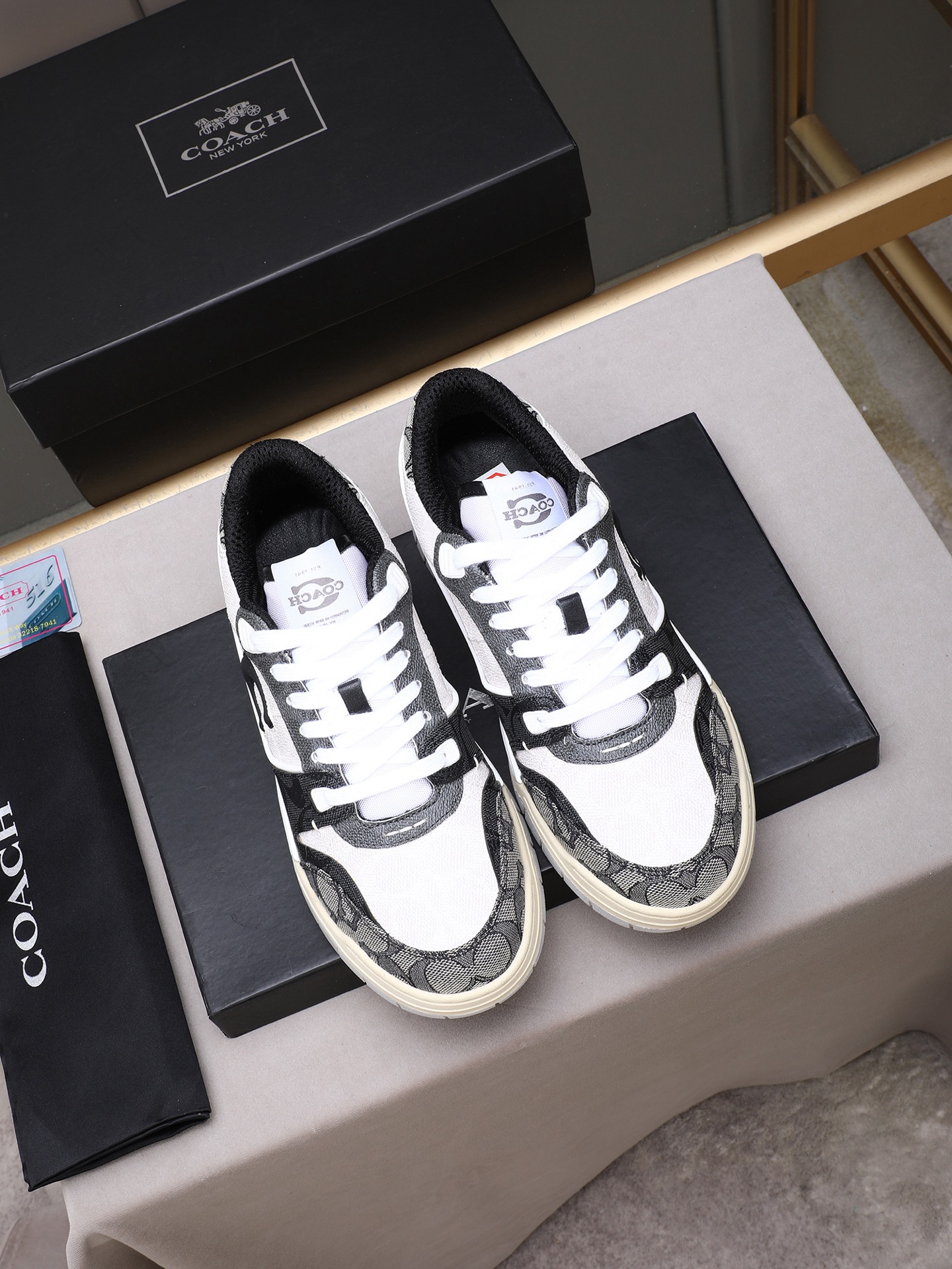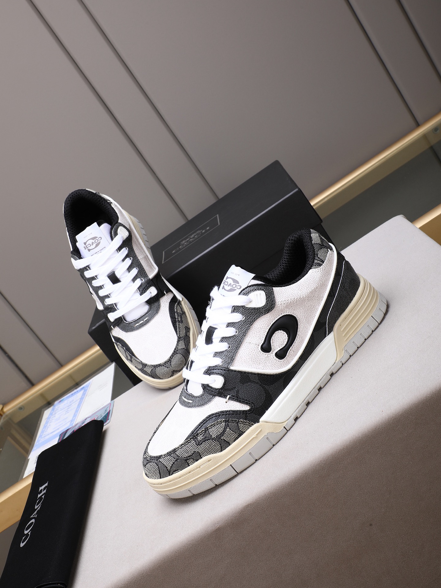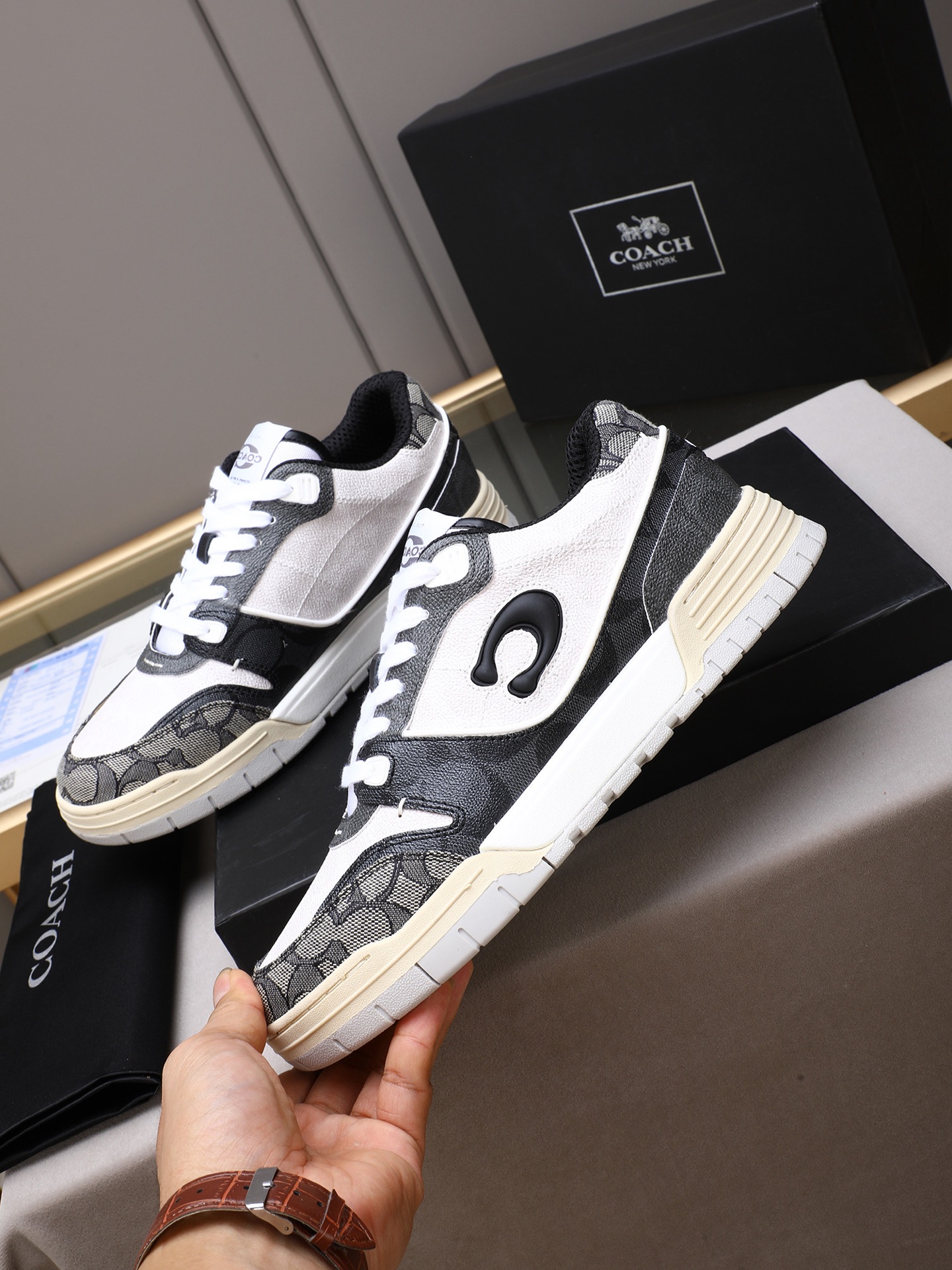 这款鞋子是AAAAA 1:1 质量 (非常棒). 使用了和原版一模一样的材料. 商标部分也保持了和蔻驰/Coach一样. 图片拍摄是实物鞋子拍摄, 您所收到的实物保证和我们图片一模一样.