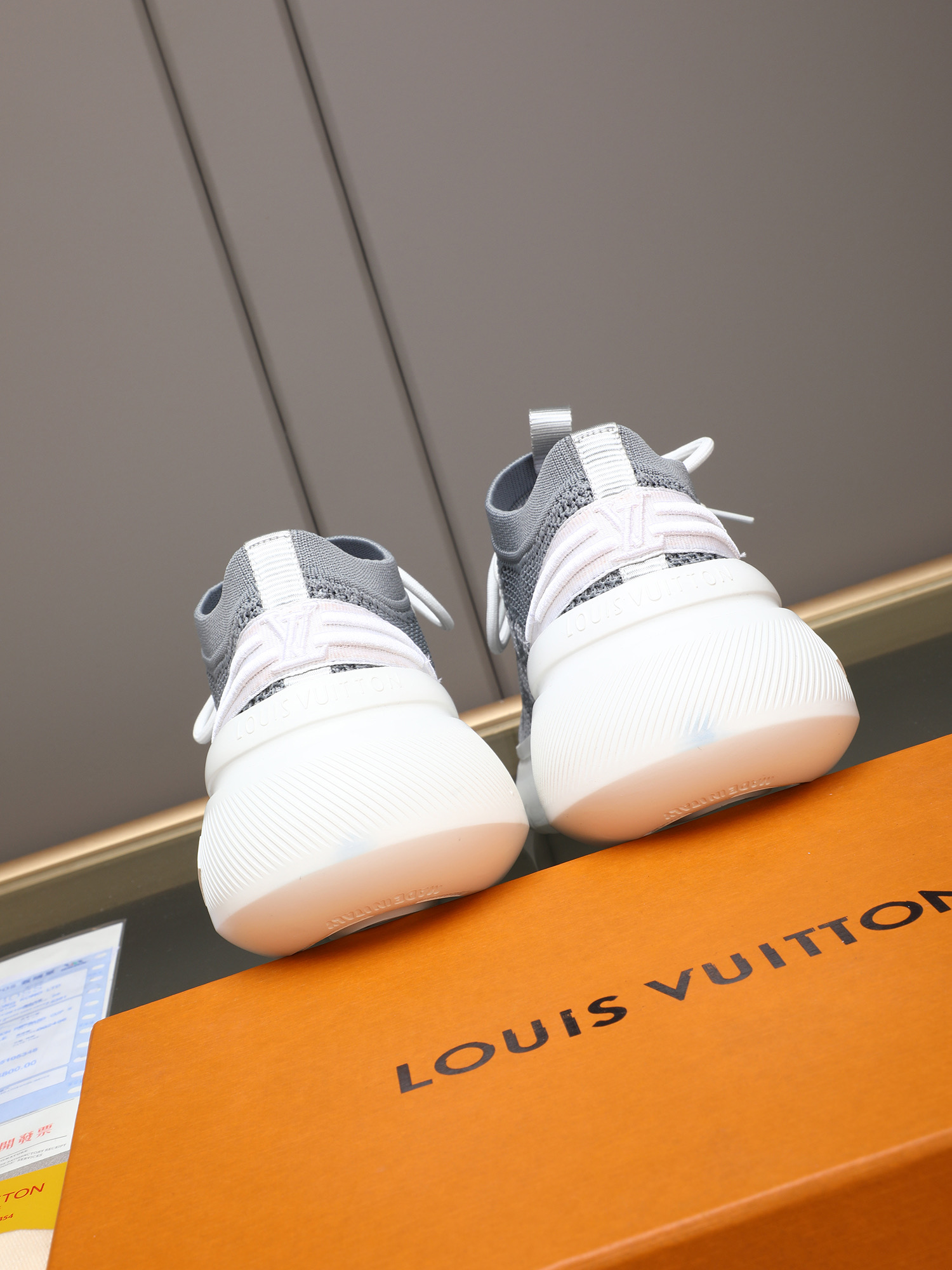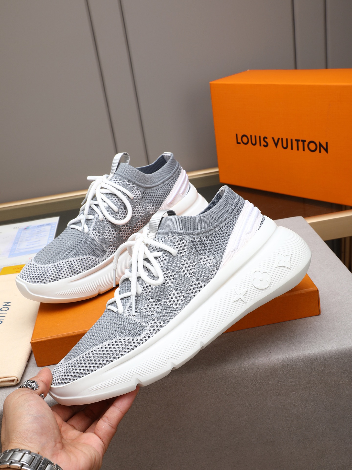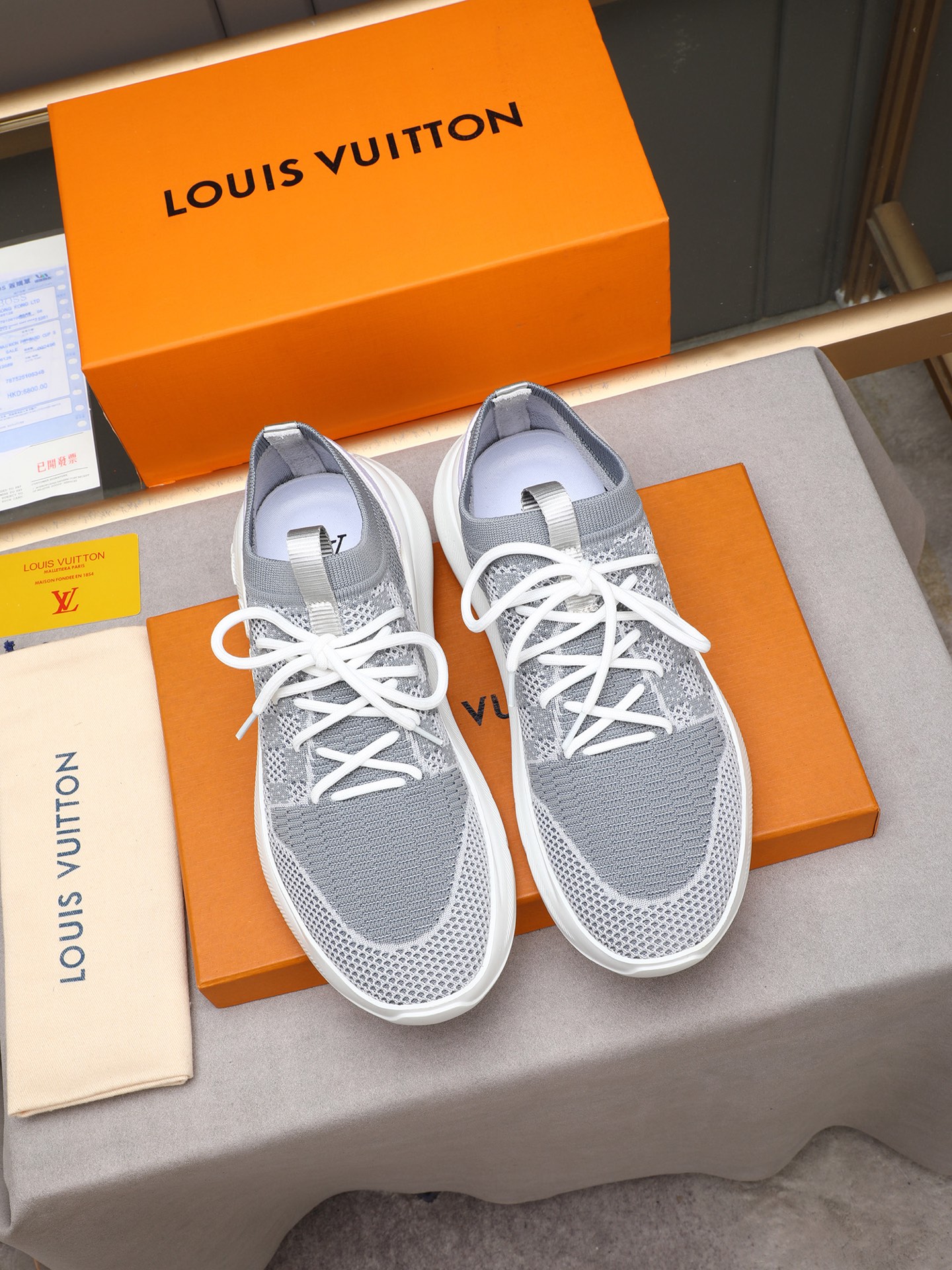 这款鞋子是AAAAA 1:1 质量 (非常棒). 使用了和原版一模一样的材料. 商标部分也保持了和路易威登/Louis Vuitton一样. 图片拍摄是实物鞋子拍摄, 您所收到的实物保证和我们图片一模一样.