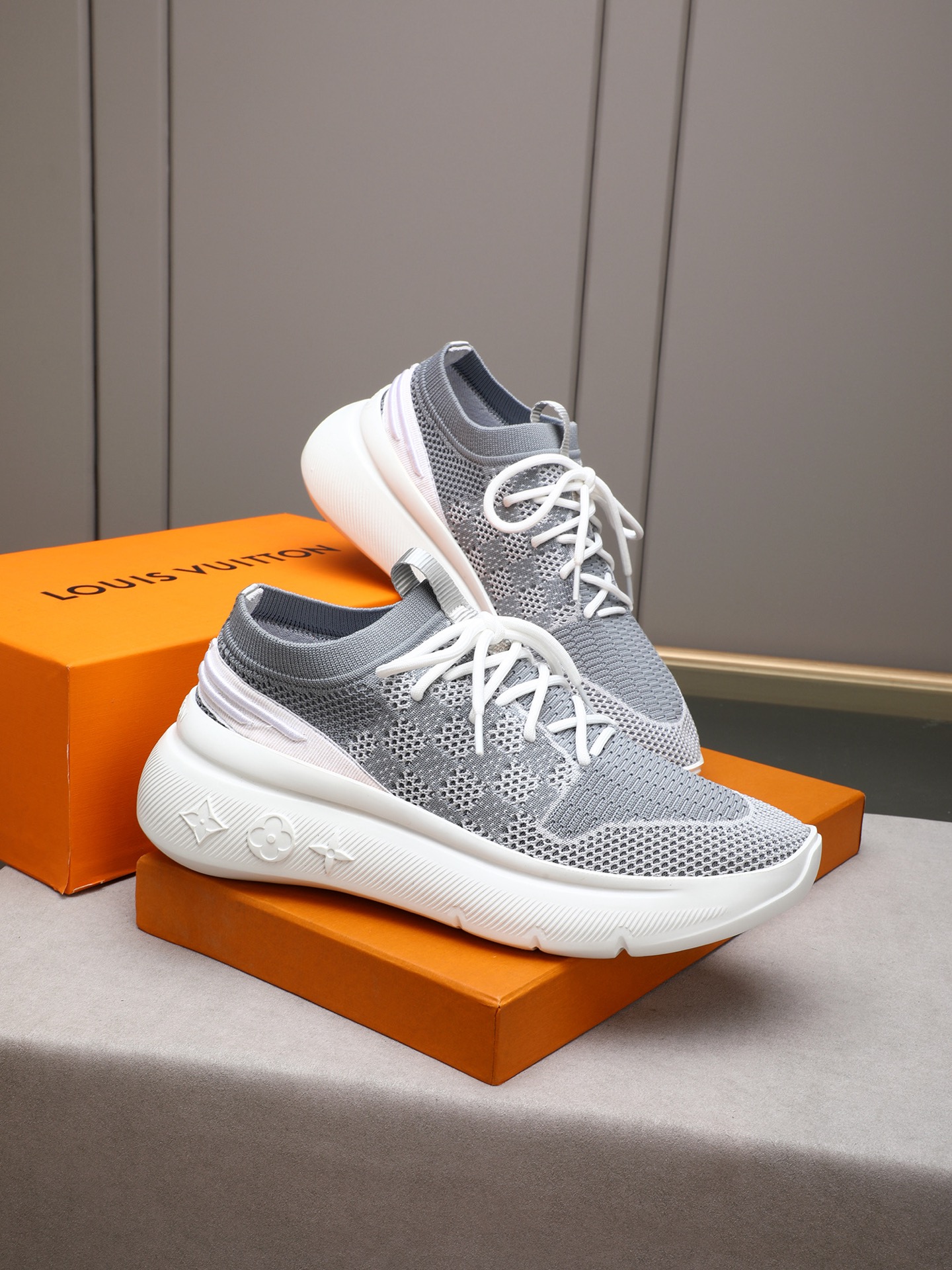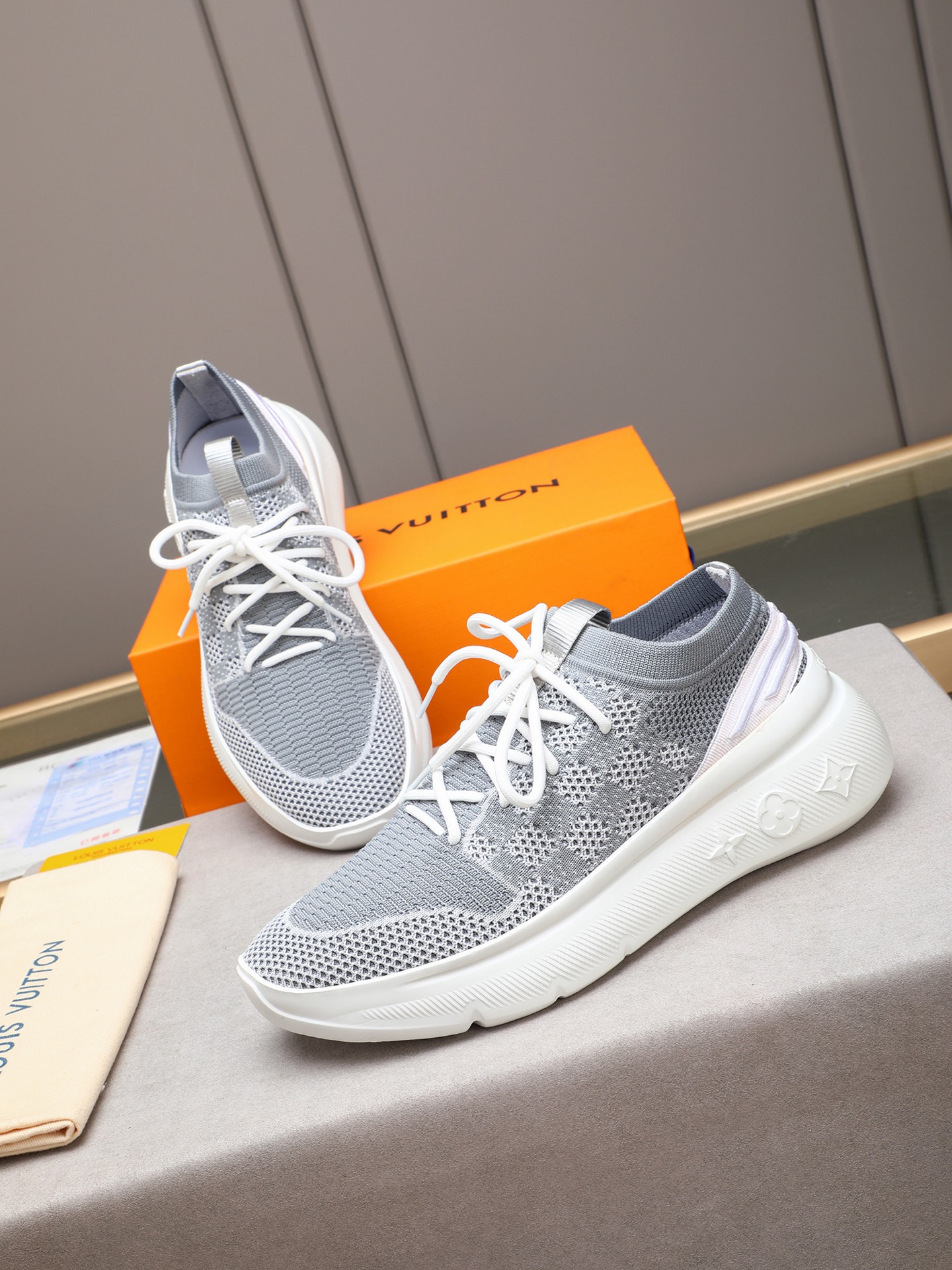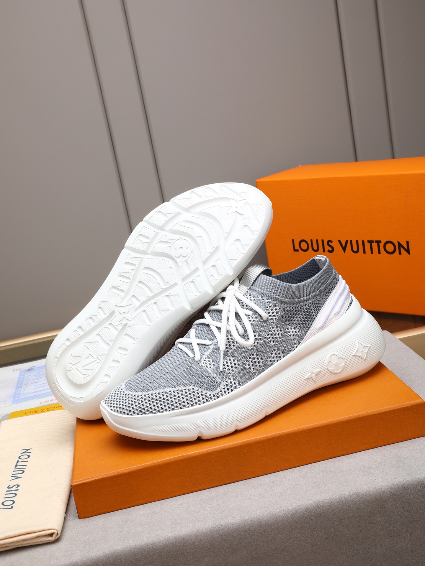 这款鞋子是AAAAA 1:1 质量 (非常棒). 使用了和原版一模一样的材料. 商标部分也保持了和路易威登/Louis Vuitton一样. 图片拍摄是实物鞋子拍摄, 您所收到的实物保证和我们图片一模一样.