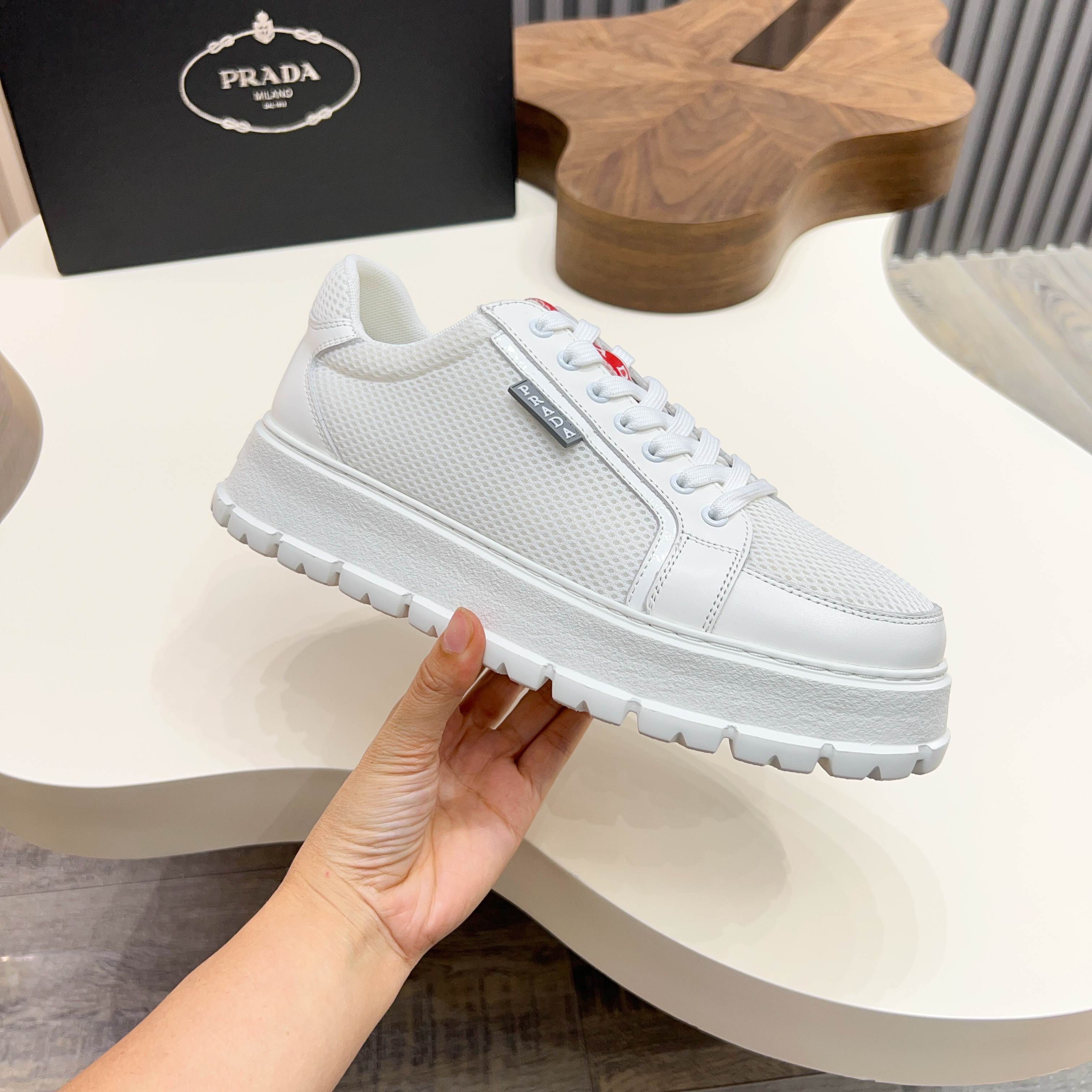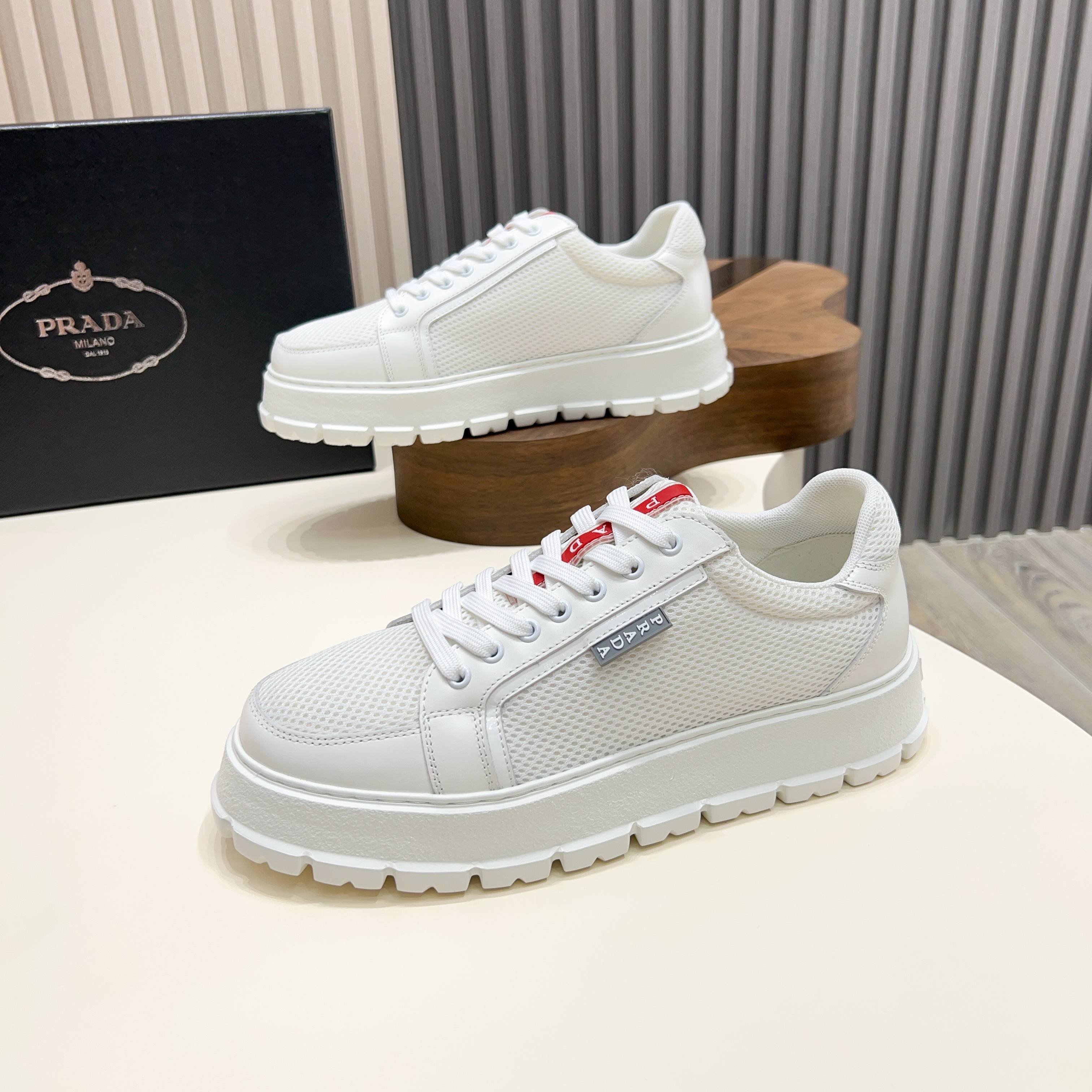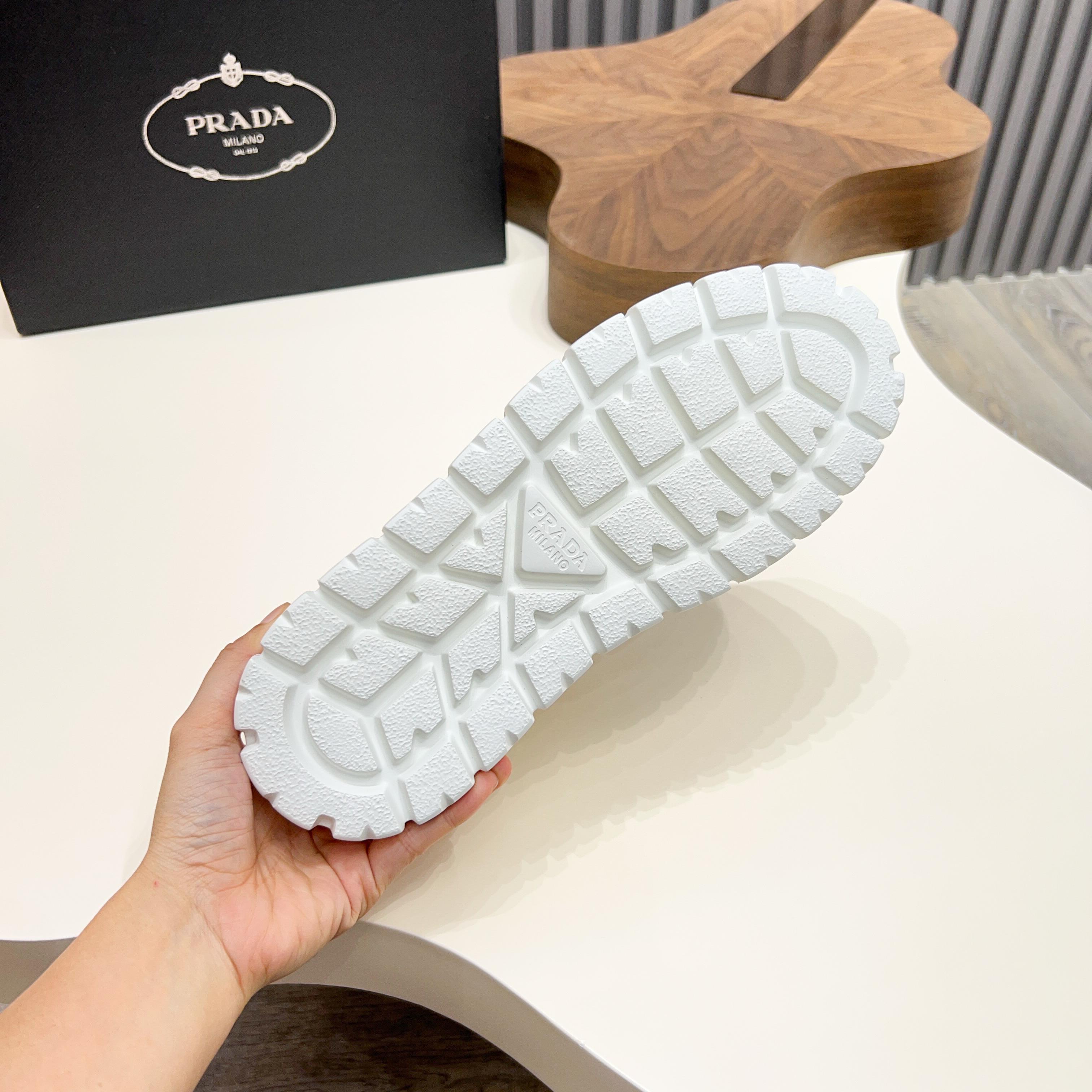 这款鞋子是AAAAA 1:1 质量 (非常棒). 使用了和原版一模一样的材料. 商标部分也保持了和普拉达/Prada一样. 图片拍摄是实物鞋子拍摄, 您所收到的实物保证和我们图片一模一样.