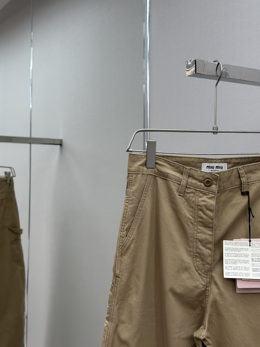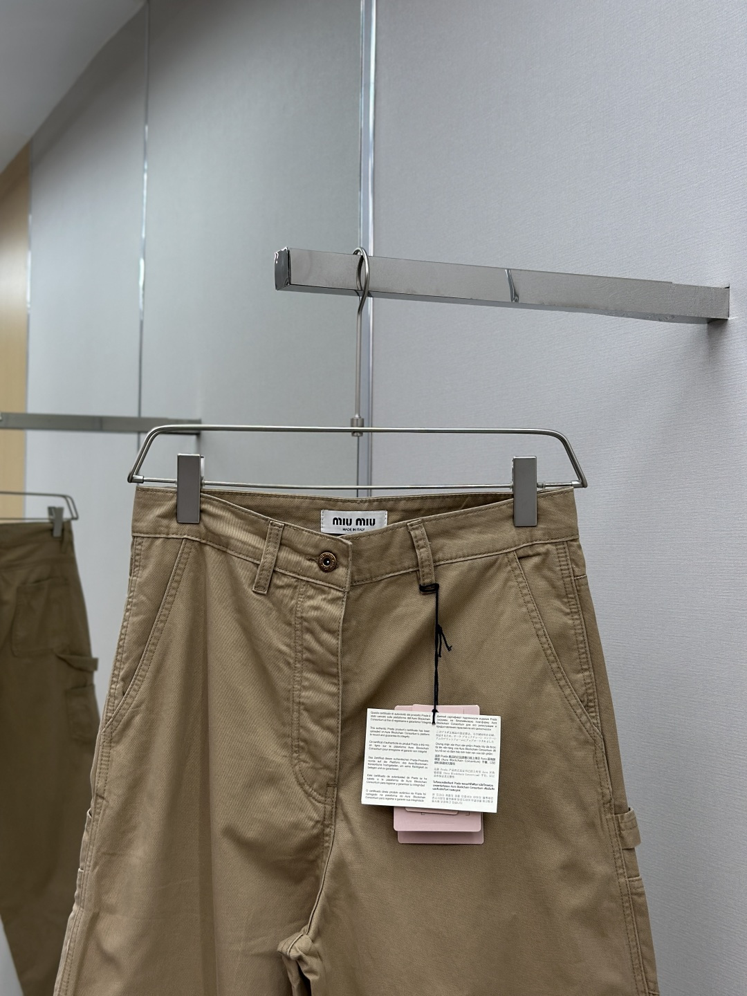 这款衣服是AAAAA 1:1 质量 (非常棒). 使用了和原版一模一样的材料. 商标部分也保持了和缪缪/Miu Miu一样. 图片拍摄是实物衣服拍摄, 您所收到的实物保证和我们图片一模一样.