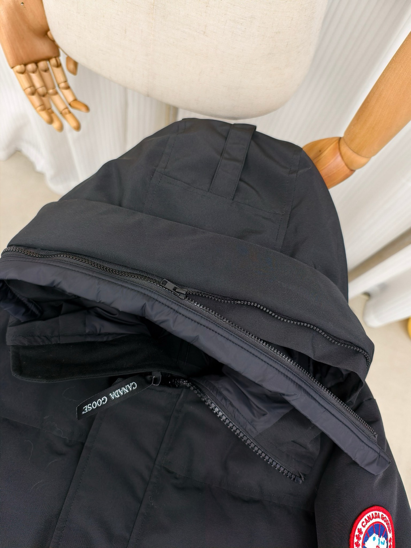 这款衣服是AAAAA 1:1 质量 (非常棒). 使用了和原版一模一样的材料. 商标部分也保持了和Canada Goose一样. 图片拍摄是实物衣服拍摄, 您所收到的实物保证和我们图片一模一样.