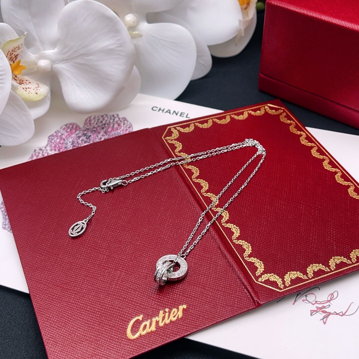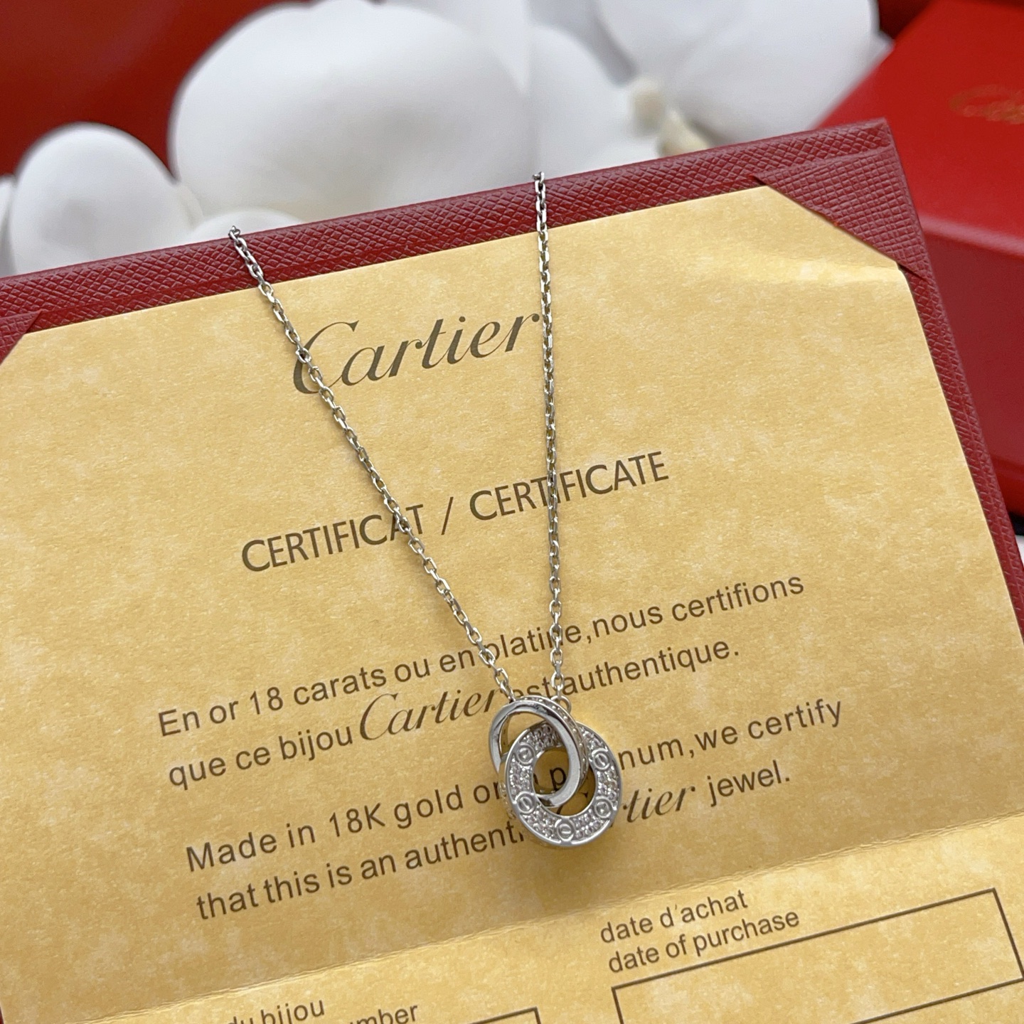 这款首饰是AAAAA 1:1 质量 (非常棒). 使用了和原版一模一样的材料. 商标部分也保持了和卡地亚/Cartier一样. 图片拍摄是实物首饰拍摄, 您所收到的实物保证和我们图片一模一样.