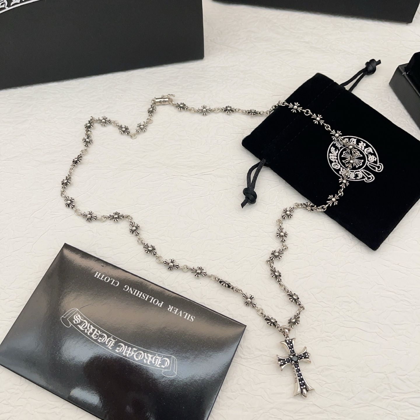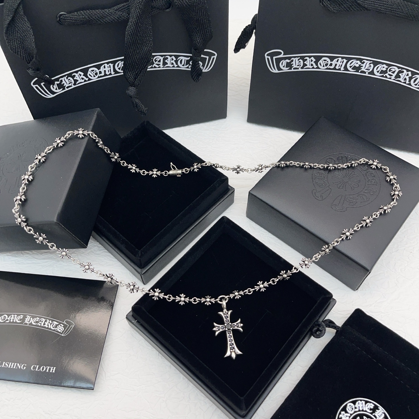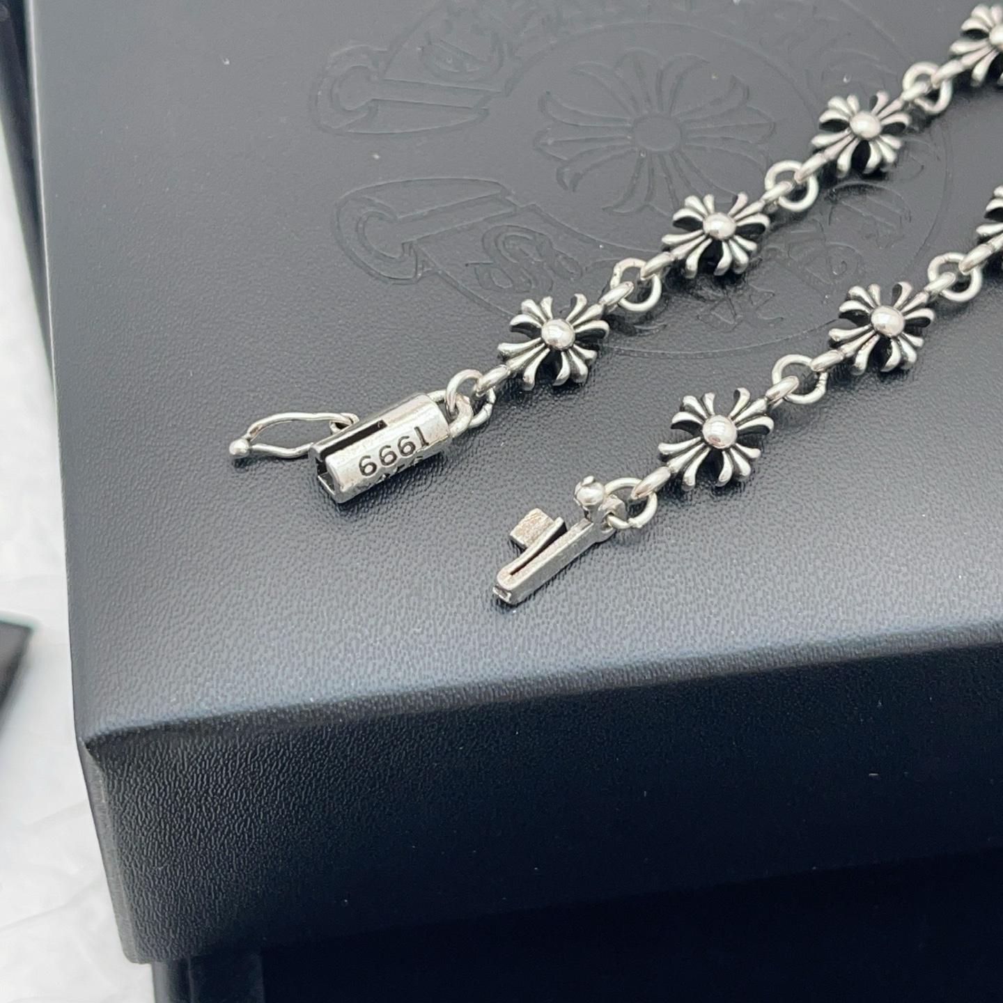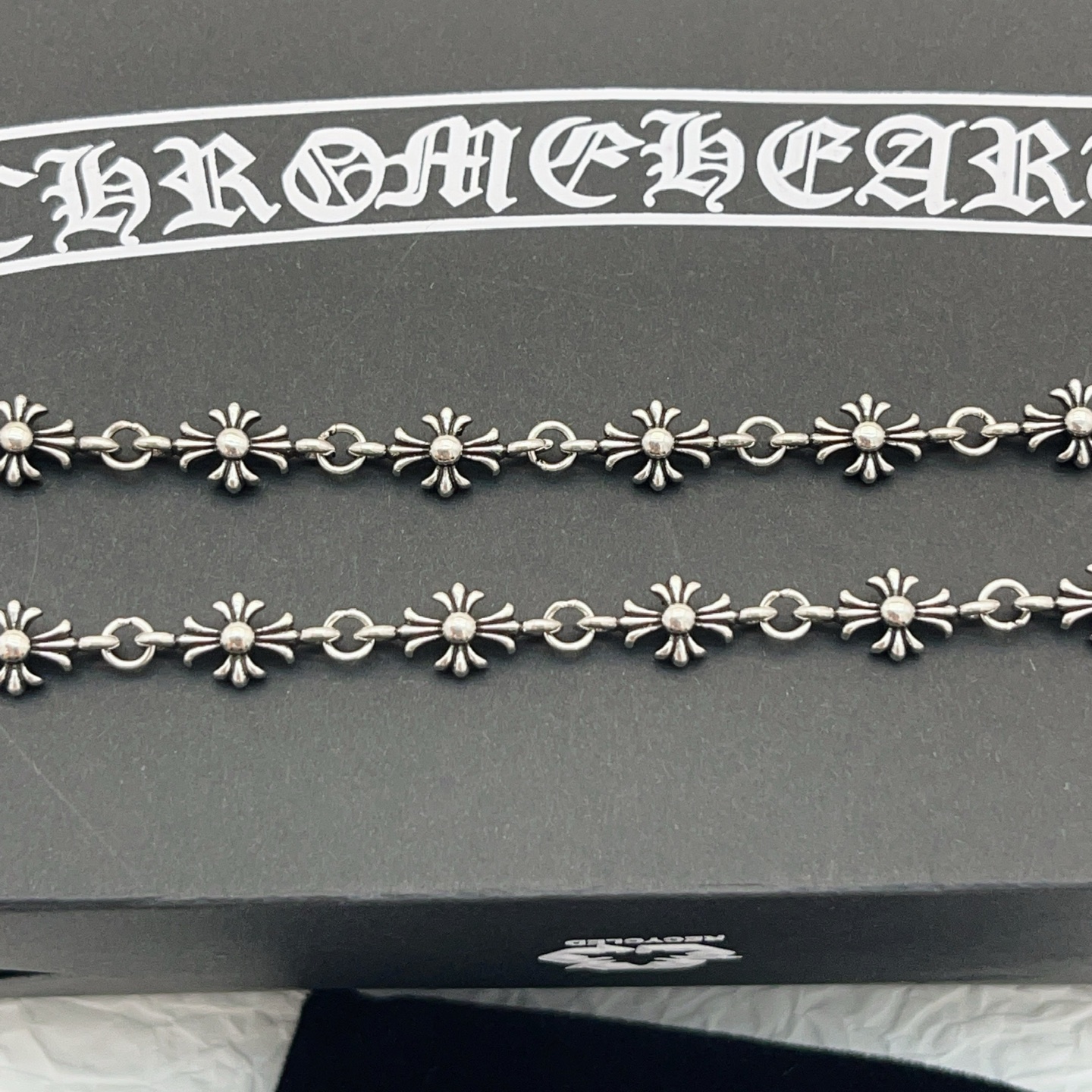 这款首饰是AAAAA 1:1 质量 (非常棒). 使用了和原版一模一样的材料. 商标部分也保持了和克罗心/Chrome Hearts一样. 图片拍摄是实物首饰拍摄, 您所收到的实物保证和我们图片一模一样.