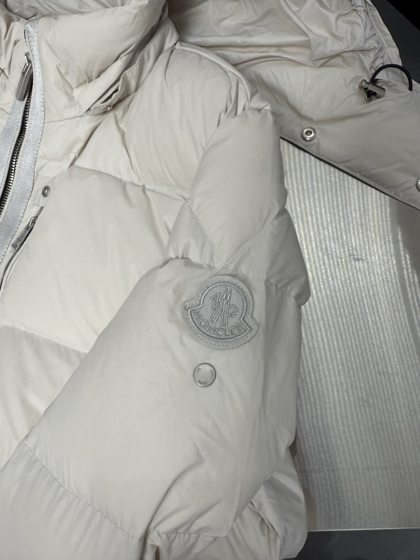 这款衣服是AAAAA 1:1 质量 (非常棒). 使用了和原版一模一样的材料. 商标部分也保持了和盟可睐/moncler一样. 图片拍摄是实物衣服拍摄, 您所收到的实物保证和我们图片一模一样.