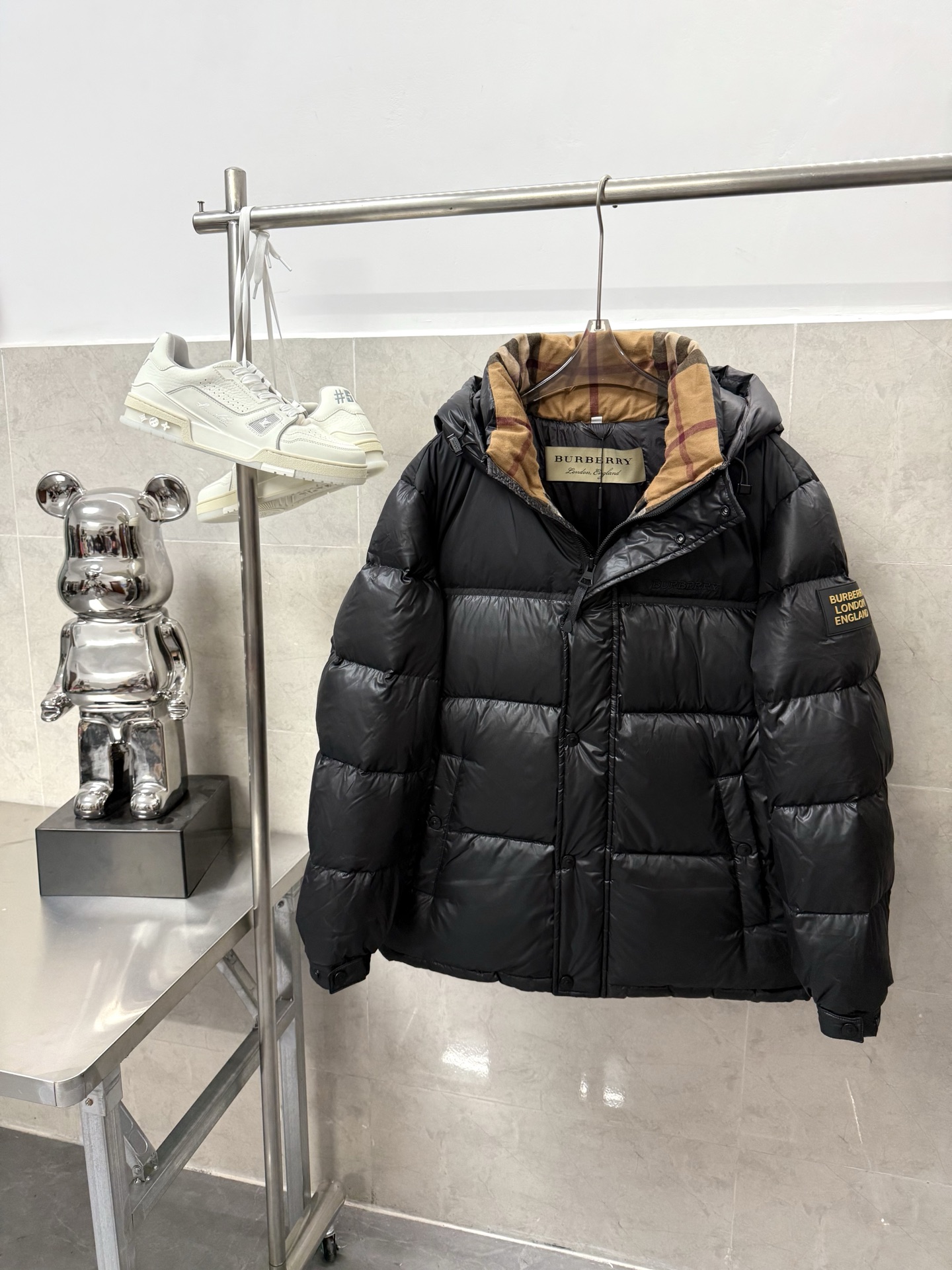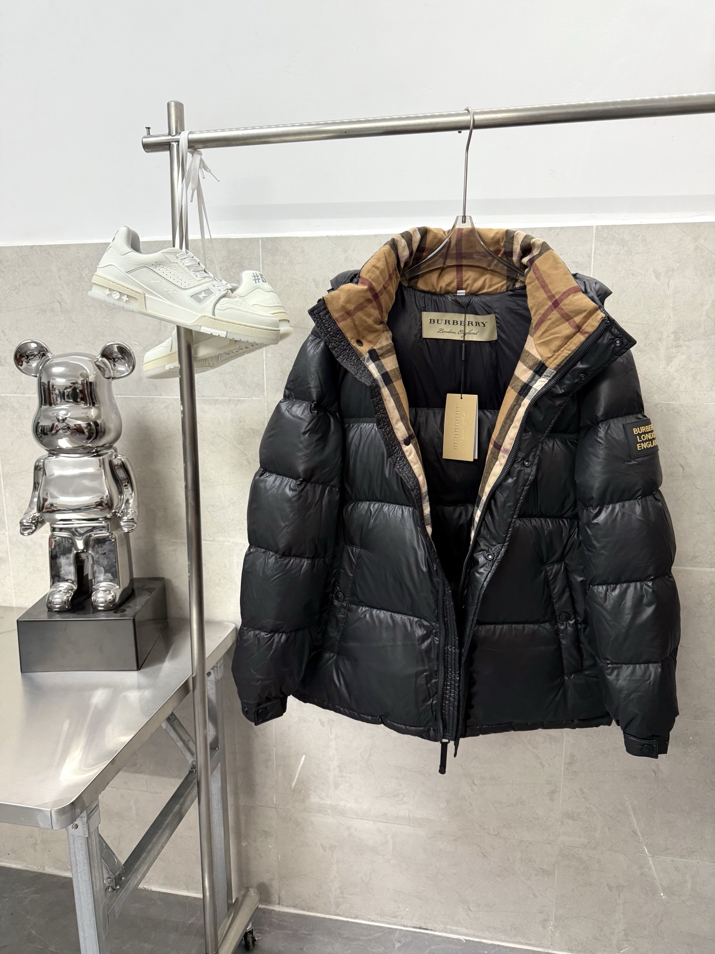 这款衣服是AAAAA 1:1 质量 (非常棒). 使用了和原版一模一样的材料. 商标部分也保持了和巴宝莉/Burberry一样. 图片拍摄是实物衣服拍摄, 您所收到的实物保证和我们图片一模一样.