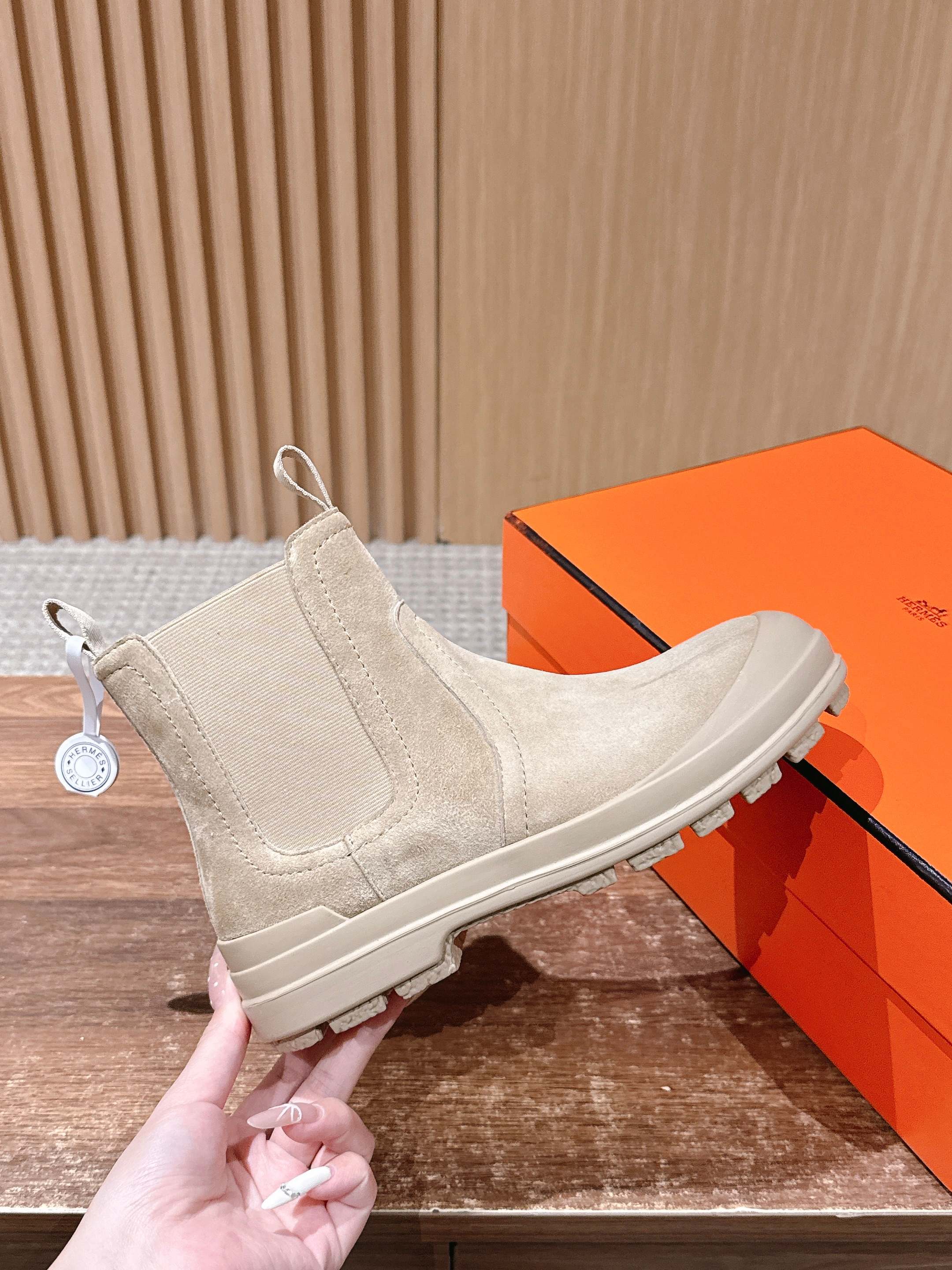 这款鞋子是AAAAA 1:1 质量 (非常棒). 使用了和原版一模一样的材料. 商标部分也保持了和爱马仕/Hermes一样. 图片拍摄是实物鞋子拍摄, 您所收到的实物保证和我们图片一模一样.