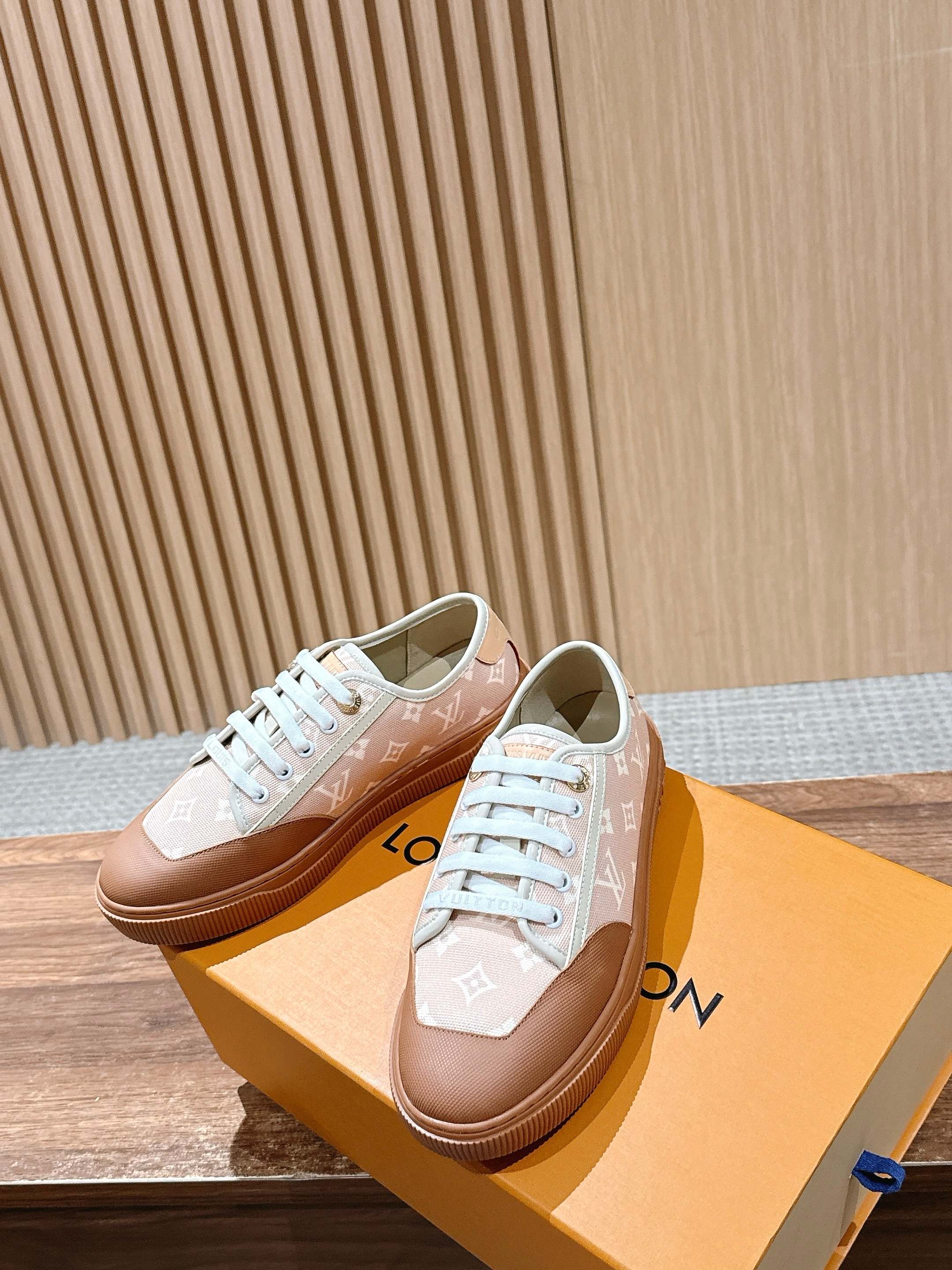 这款鞋子是AAAAA 1:1 质量 (非常棒). 使用了和原版一模一样的材料. 商标部分也保持了和路易威登/Louis Vuitton一样. 图片拍摄是实物鞋子拍摄, 您所收到的实物保证和我们图片一模一样.