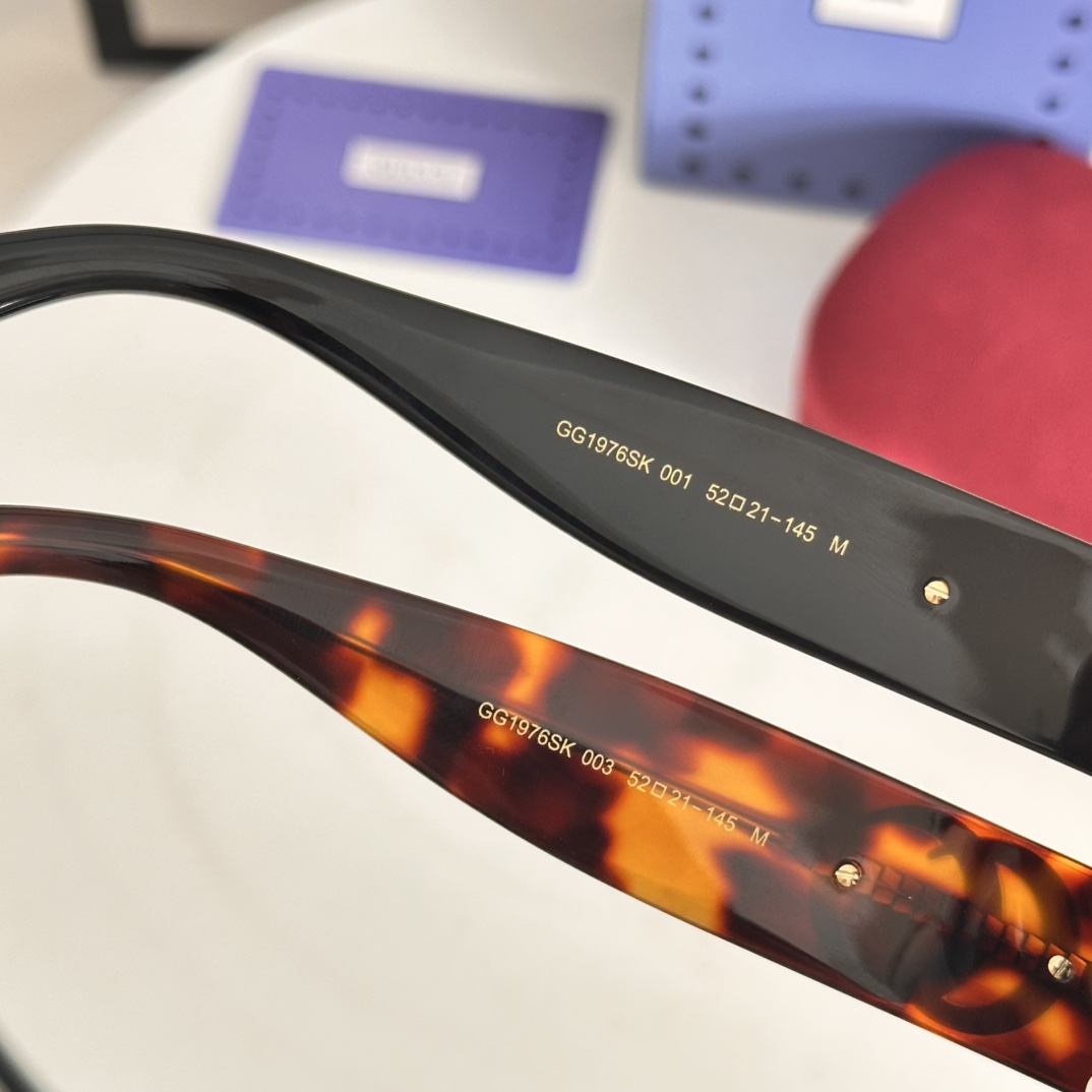 这款太阳眼镜是AAAAA 1:1 质量 (非常棒). 使用了和原版一模一样的材料. 商标部分也保持了和古奇/Gucci一样. 图片拍摄是实物太阳眼镜拍摄, 您所收到的实物保证和我们图片一模一样.