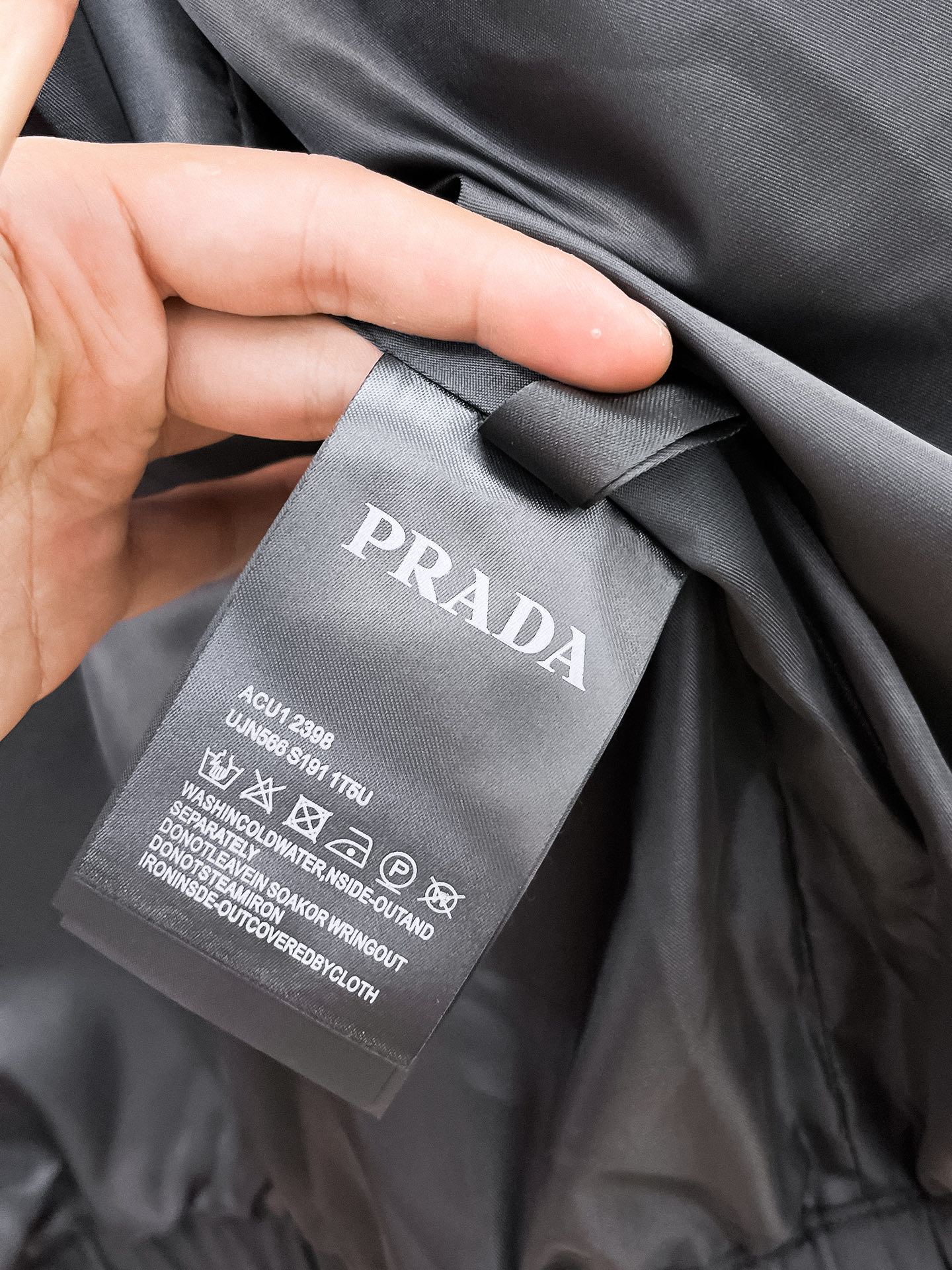 这款衣服是AAAAA 1:1 质量 (非常棒). 使用了和原版一模一样的材料. 商标部分也保持了和普拉达/Prada一样. 图片拍摄是实物衣服拍摄, 您所收到的实物保证和我们图片一模一样.