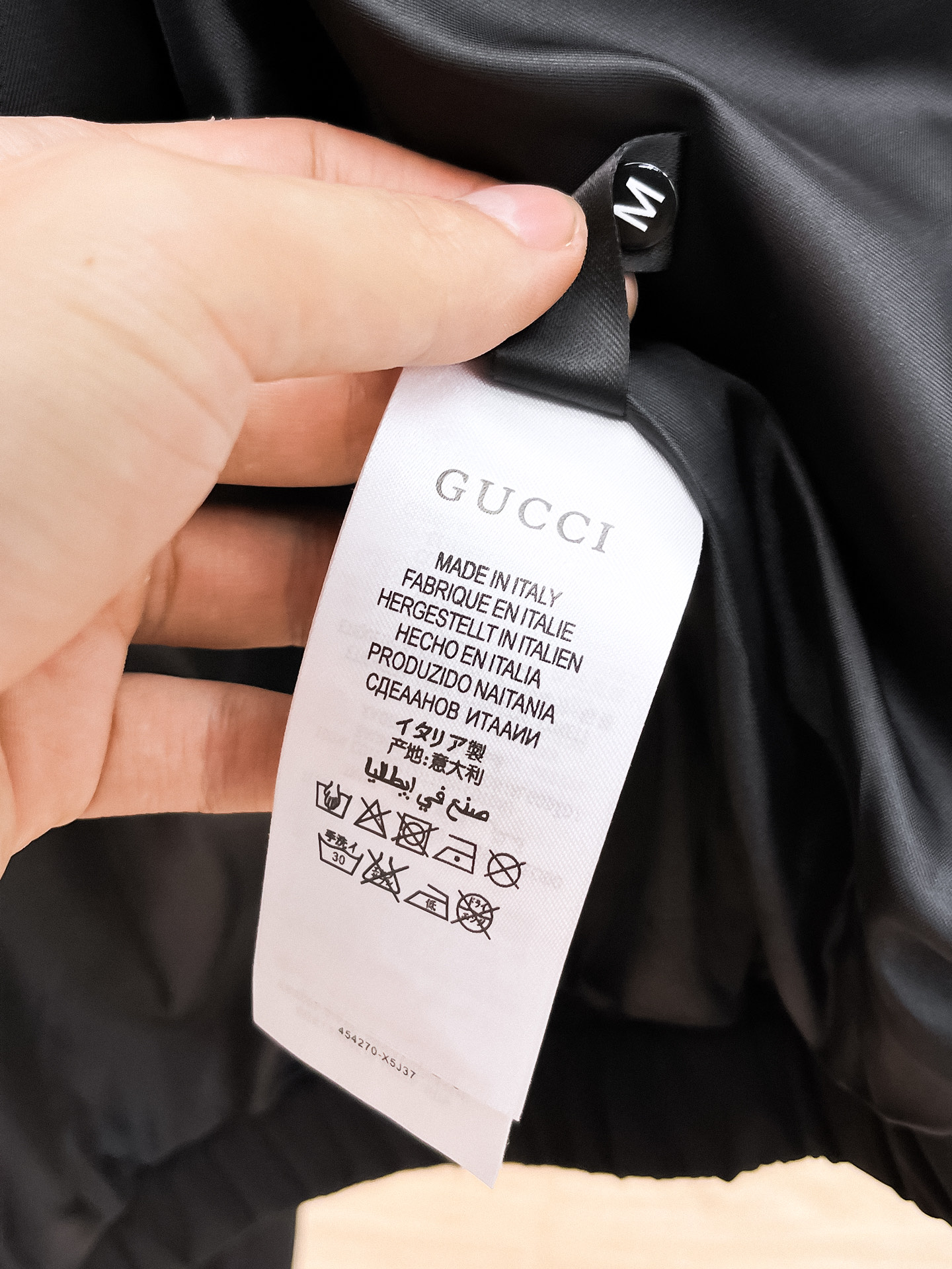 这款衣服是AAAAA 1:1 质量 (非常棒). 使用了和原版一模一样的材料. 商标部分也保持了和古奇/Gucci一样. 图片拍摄是实物衣服拍摄, 您所收到的实物保证和我们图片一模一样.