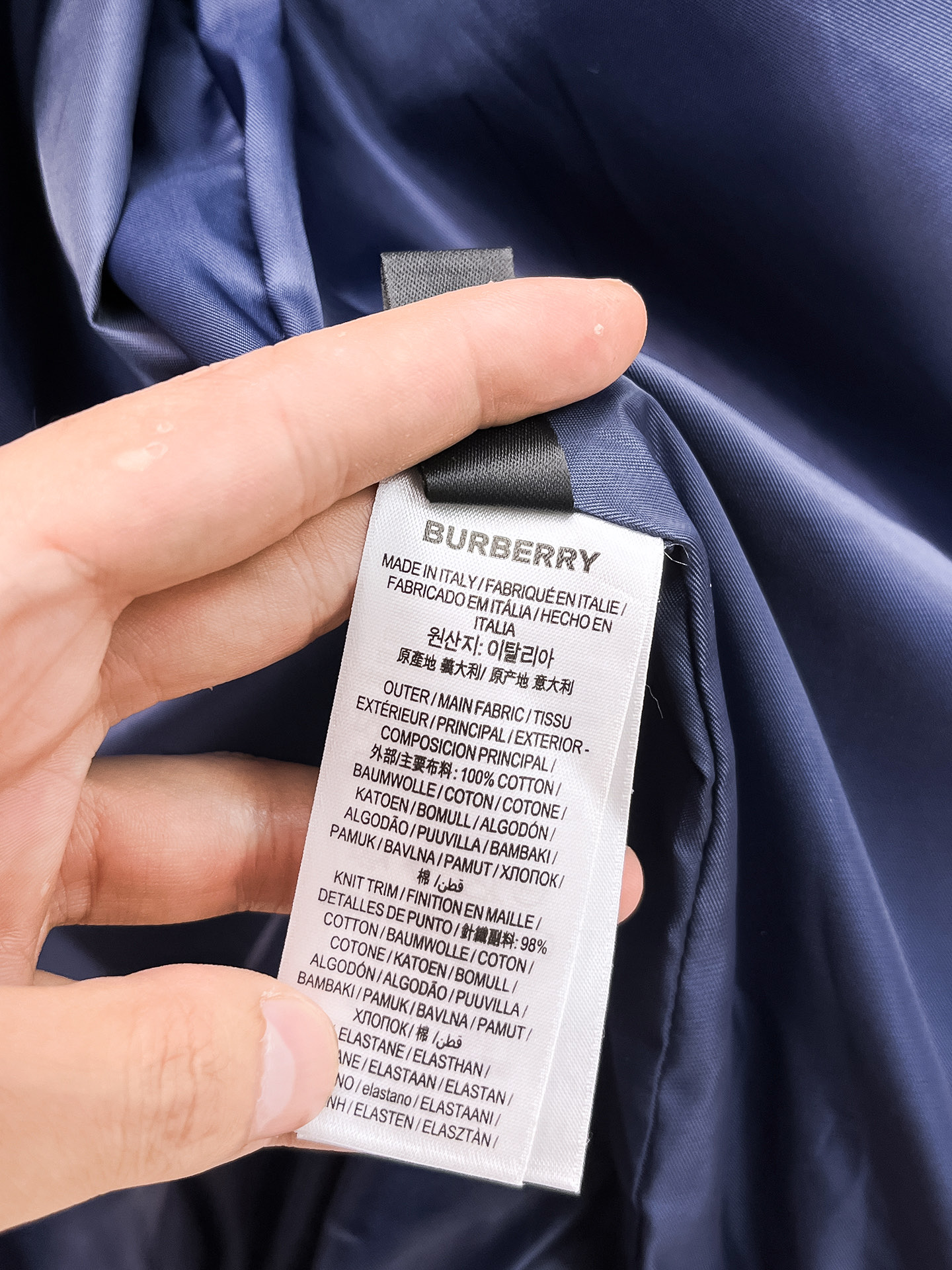 这款衣服是AAAAA 1:1 质量 (非常棒). 使用了和原版一模一样的材料. 商标部分也保持了和巴宝莉/Burberry一样. 图片拍摄是实物衣服拍摄, 您所收到的实物保证和我们图片一模一样.