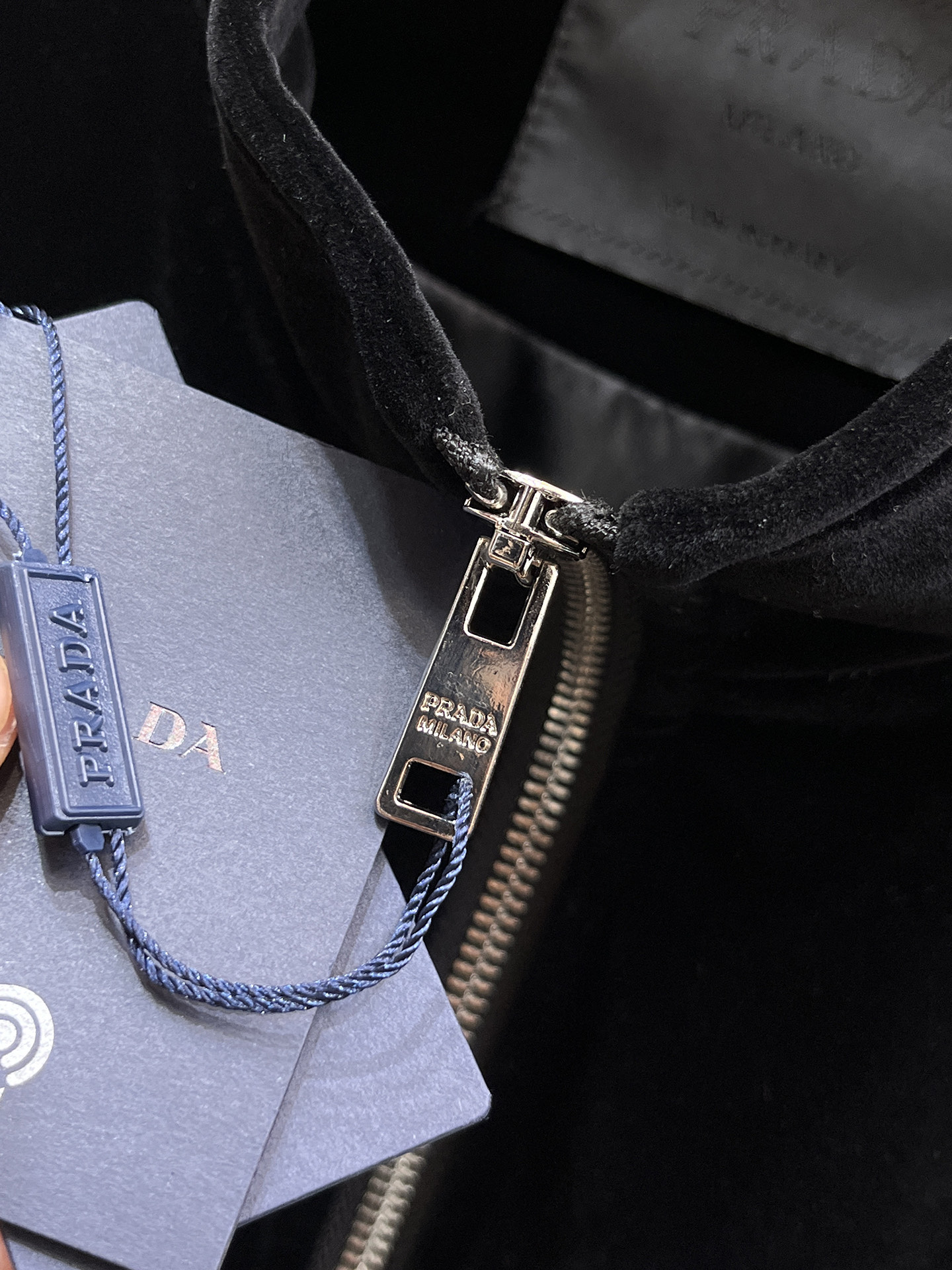 这款衣服是AAAAA 1:1 质量 (非常棒). 使用了和原版一模一样的材料. 商标部分也保持了和普拉达/Prada一样. 图片拍摄是实物衣服拍摄, 您所收到的实物保证和我们图片一模一样.