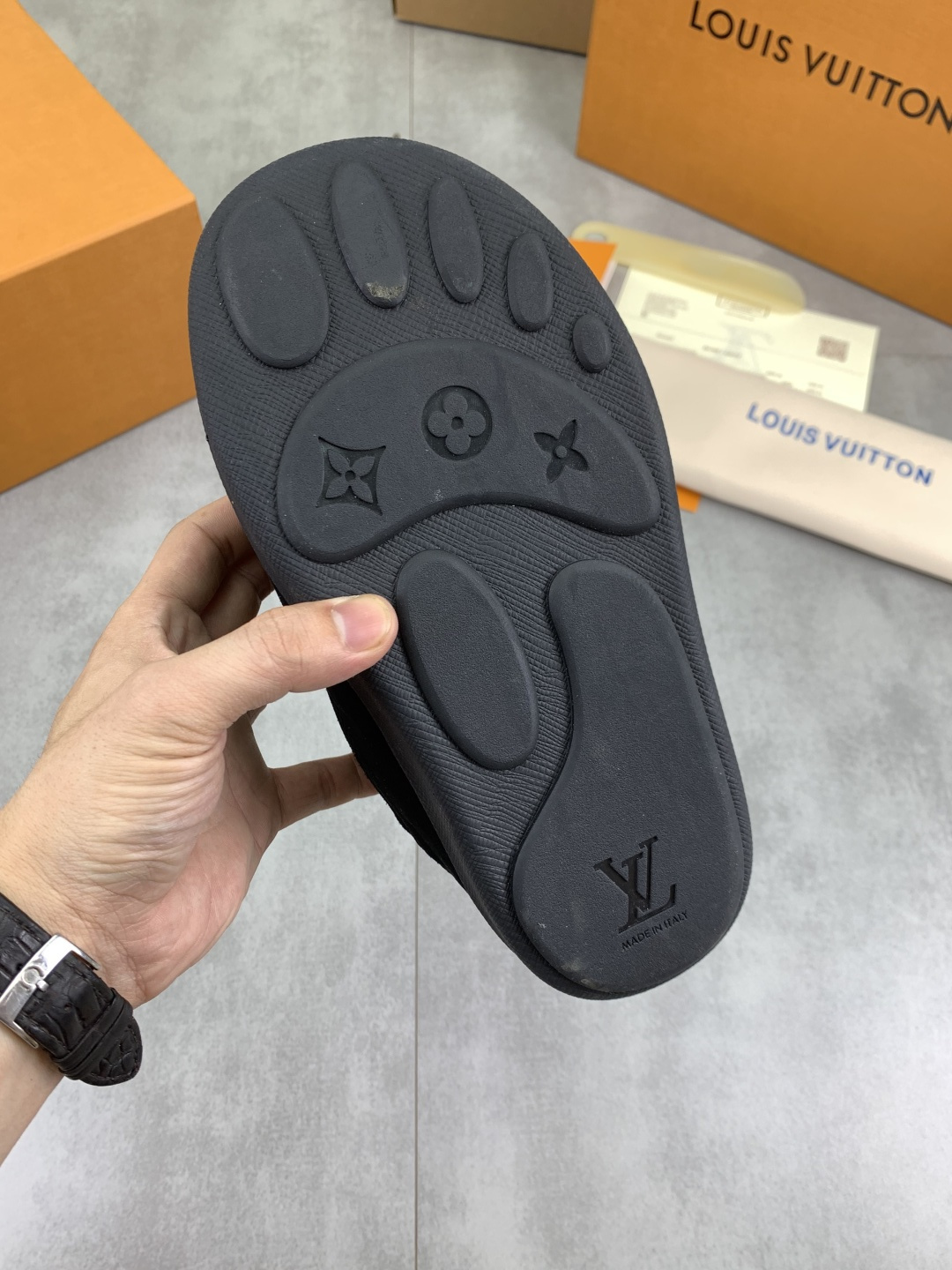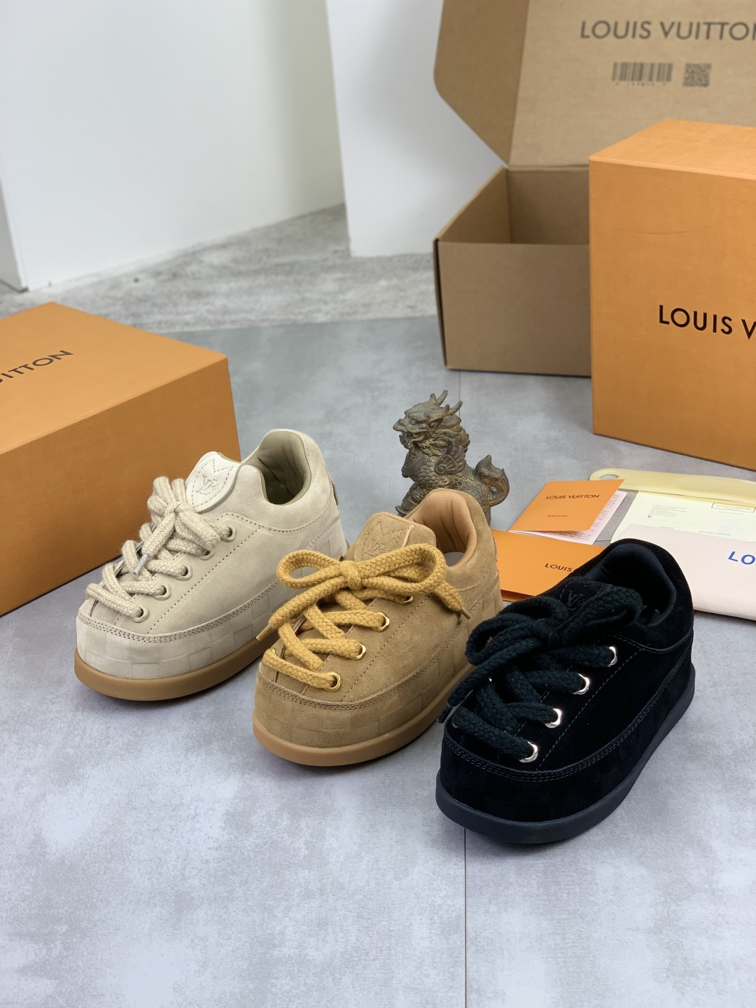 这款鞋子是AAAAA 1:1 质量 (非常棒). 使用了和原版一模一样的材料. 商标部分也保持了和路易威登/Louis Vuitton一样. 图片拍摄是实物鞋子拍摄, 您所收到的实物保证和我们图片一模一样.