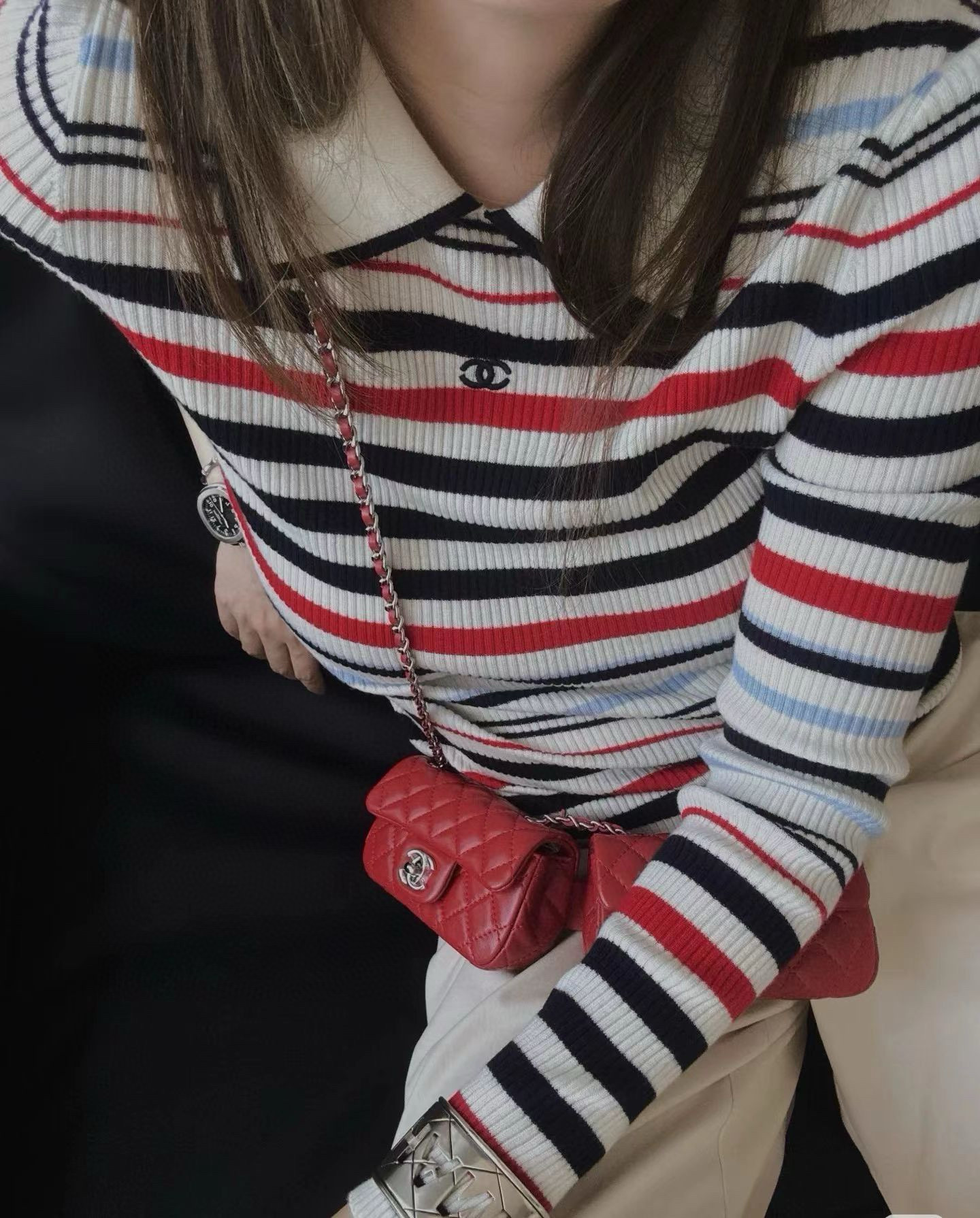 这款衣服是AAAAA 1:1 质量 (非常棒). 使用了和原版一模一样的材料. 商标部分也保持了和香奈儿/Chanel一样. 图片拍摄是实物衣服拍摄, 您所收到的实物保证和我们图片一模一样.
