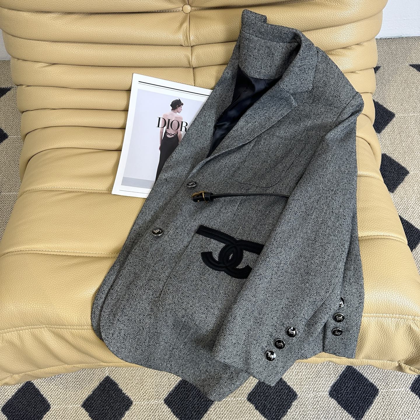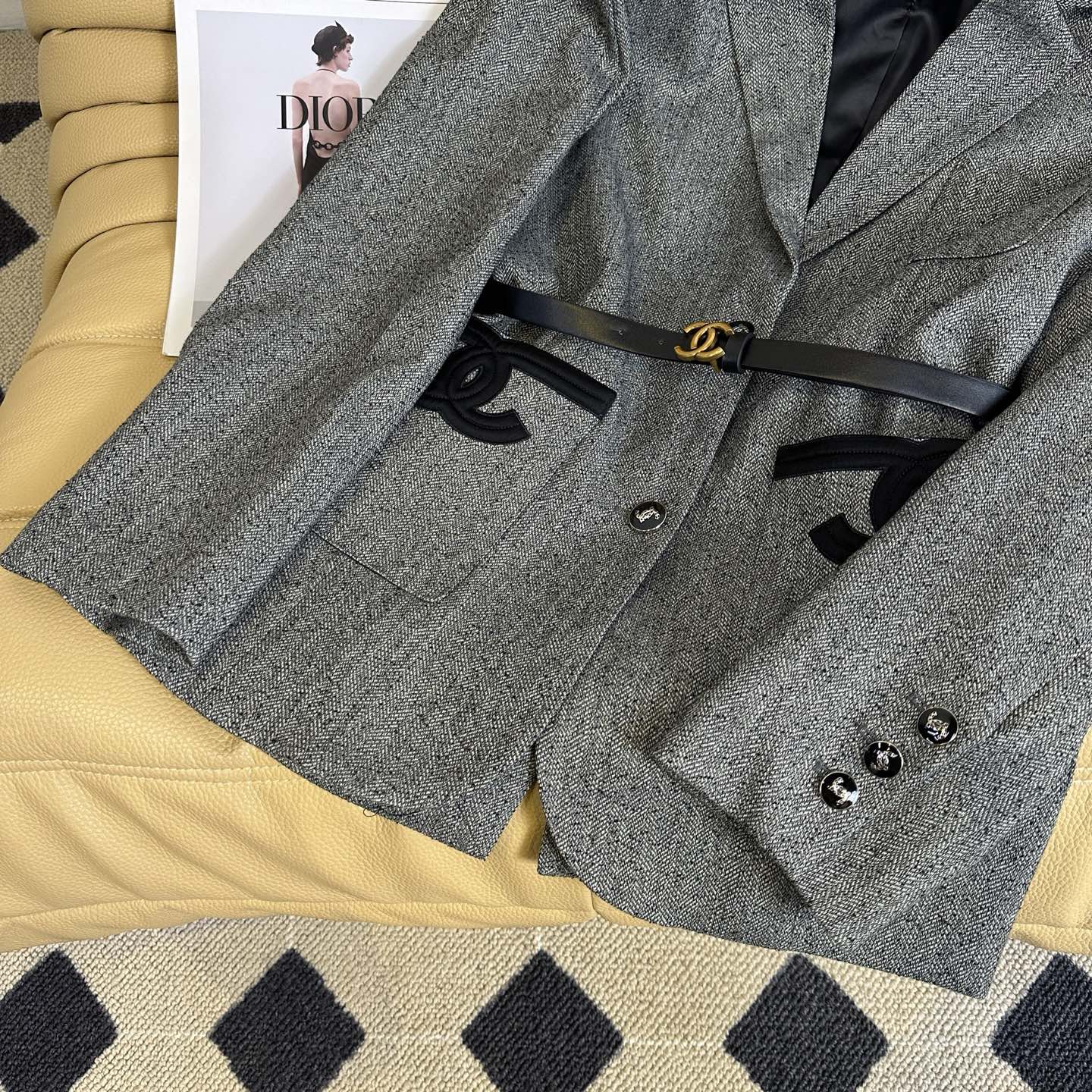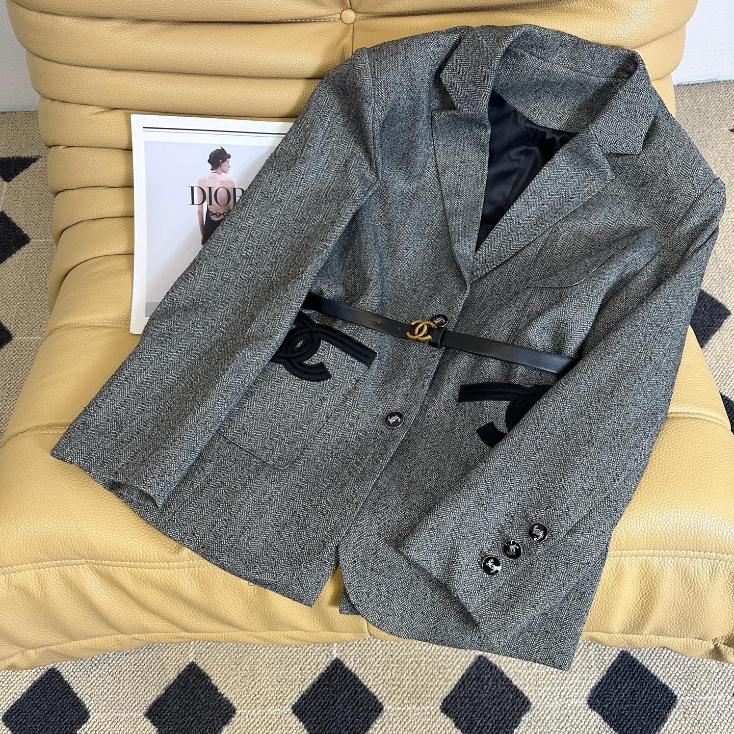 这款衣服是AAAAA 1:1 质量 (非常棒). 使用了和原版一模一样的材料. 商标部分也保持了和香奈儿/Chanel一样. 图片拍摄是实物衣服拍摄, 您所收到的实物保证和我们图片一模一样.