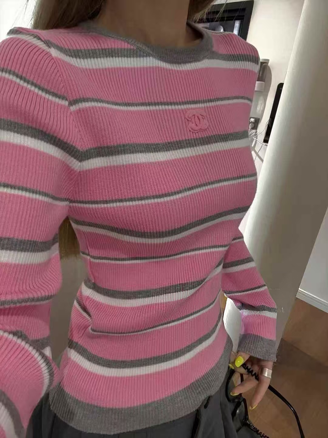 这款衣服是AAAAA 1:1 质量 (非常棒). 使用了和原版一模一样的材料. 商标部分也保持了和香奈儿/Chanel一样. 图片拍摄是实物衣服拍摄, 您所收到的实物保证和我们图片一模一样.