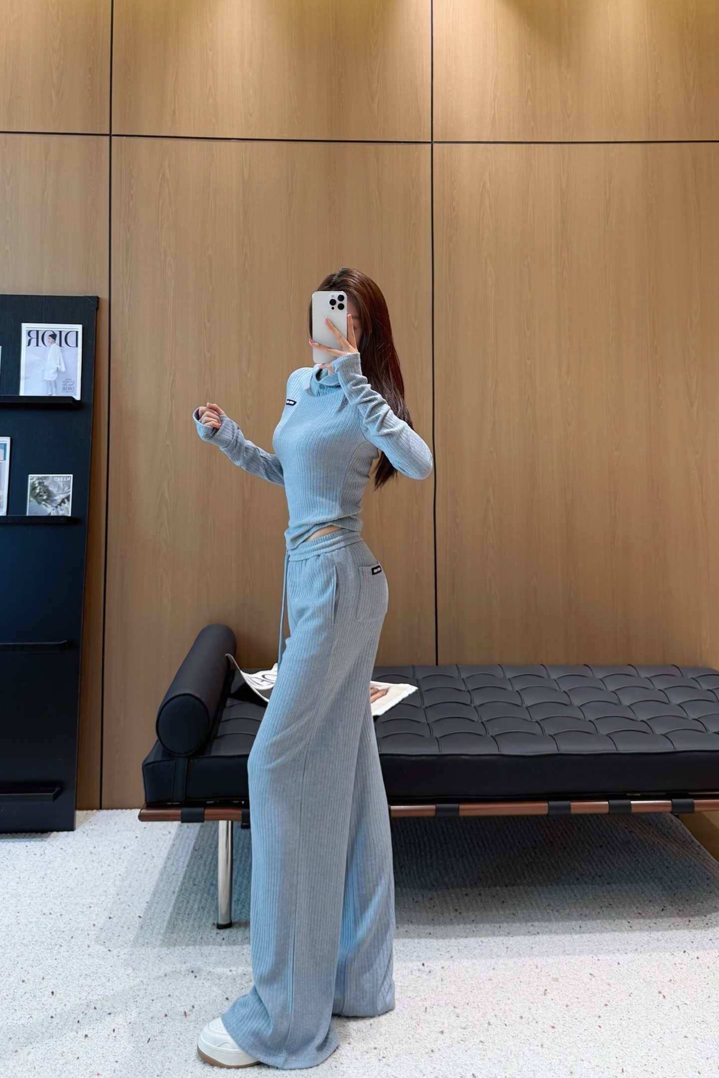 这款衣服是AAAAA 1:1 质量 (非常棒). 使用了和原版一模一样的材料. 商标部分也保持了和缪缪/Miu Miu一样. 图片拍摄是实物衣服拍摄, 您所收到的实物保证和我们图片一模一样.