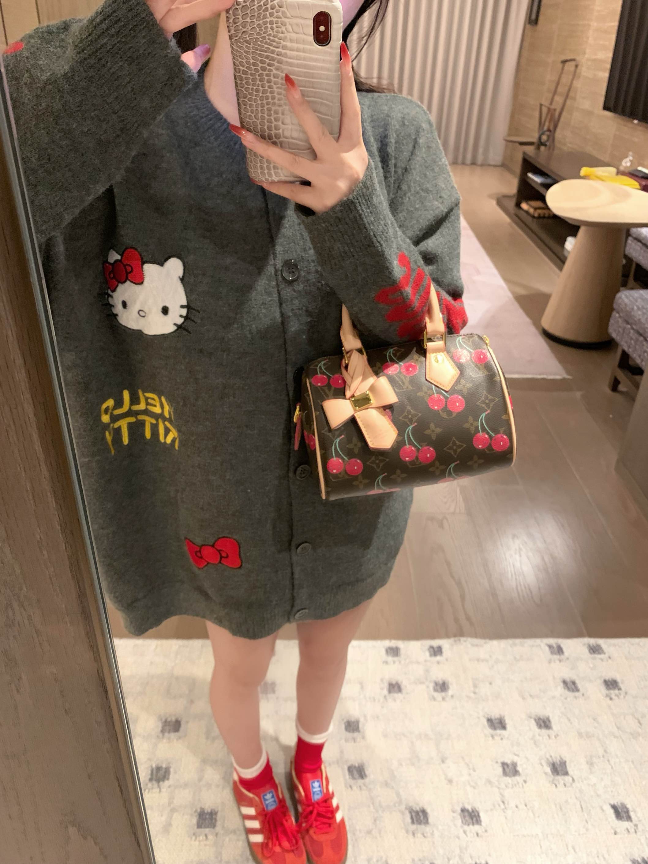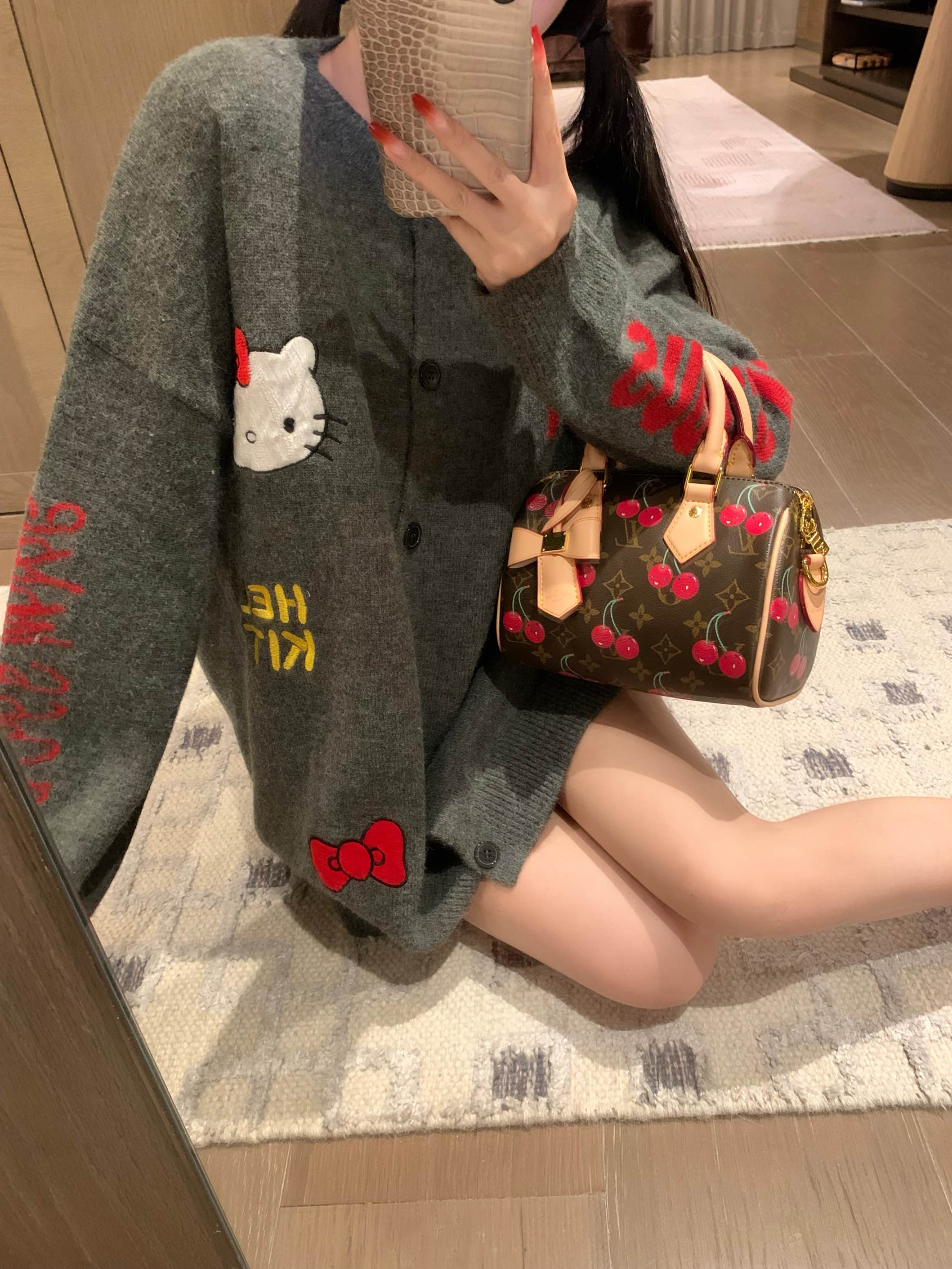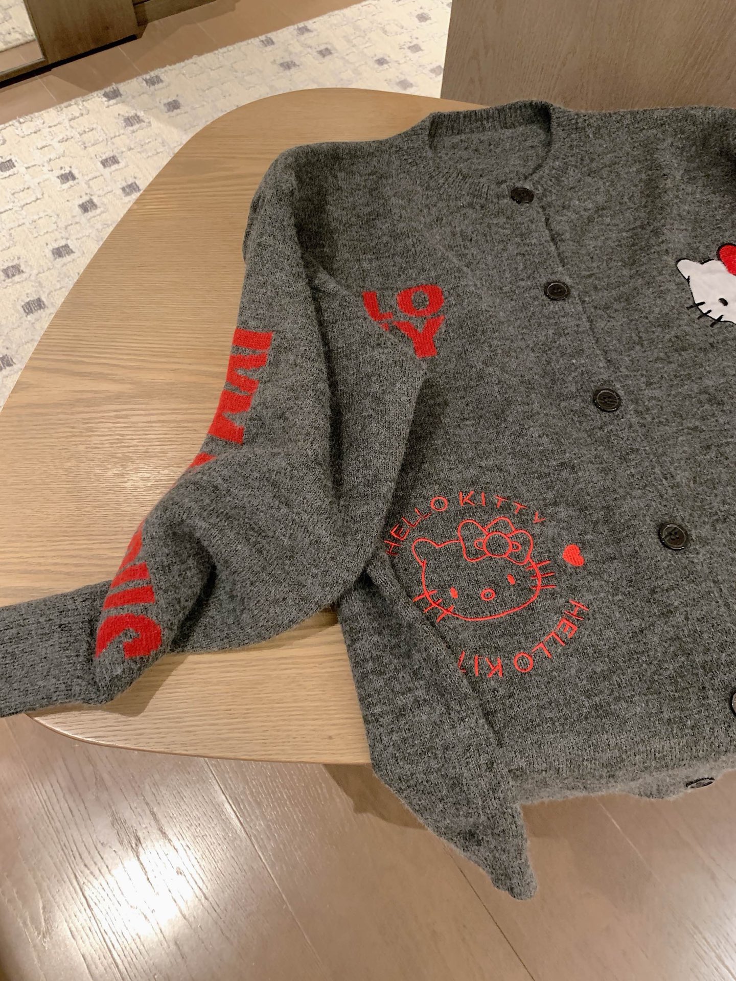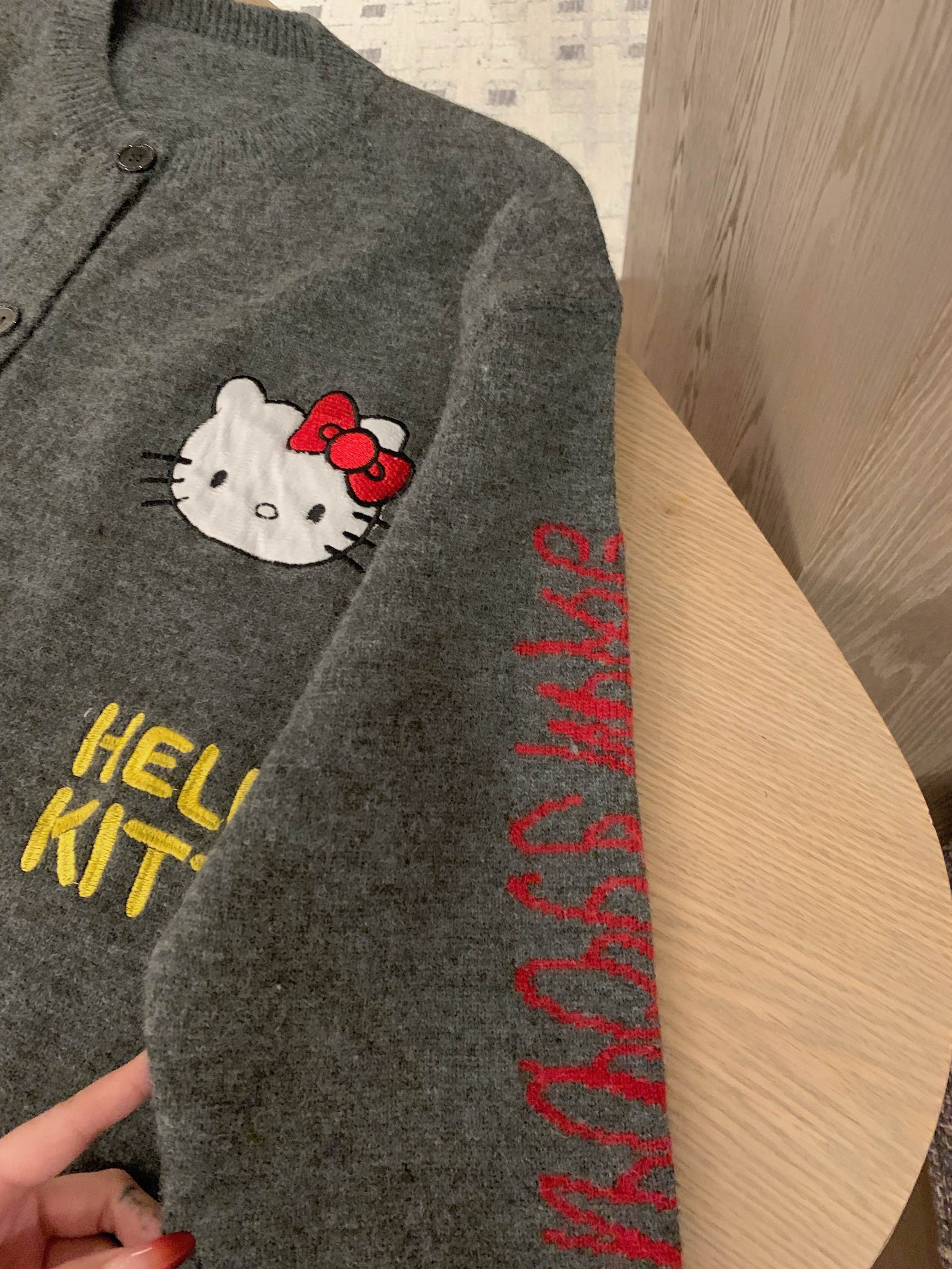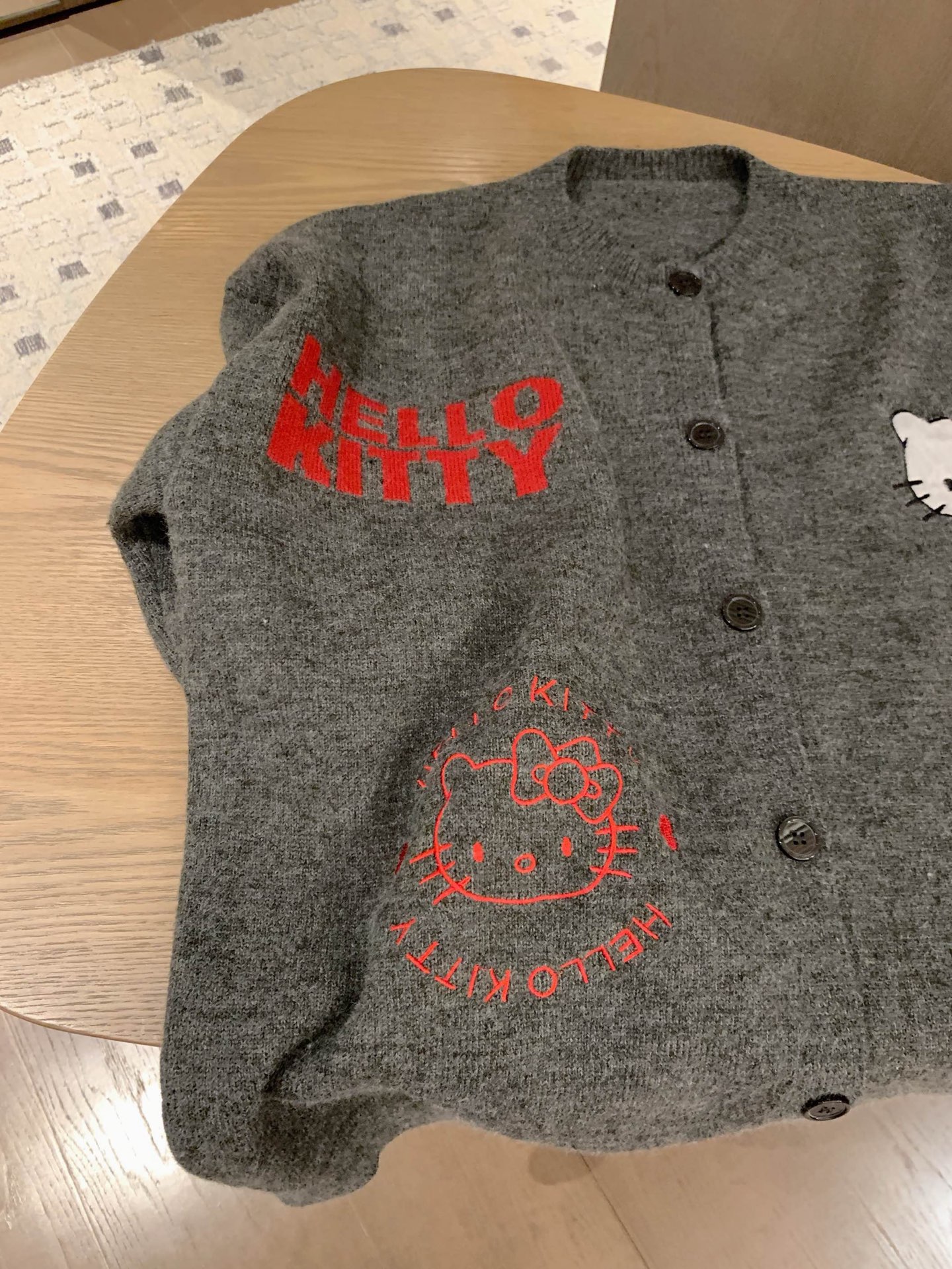 这款衣服是AAAAA 1:1 质量 (非常棒). 使用了和原版一模一样的材料. 商标部分也保持了和HELLO KITTY一样. 图片拍摄是实物衣服拍摄, 您所收到的实物保证和我们图片一模一样.