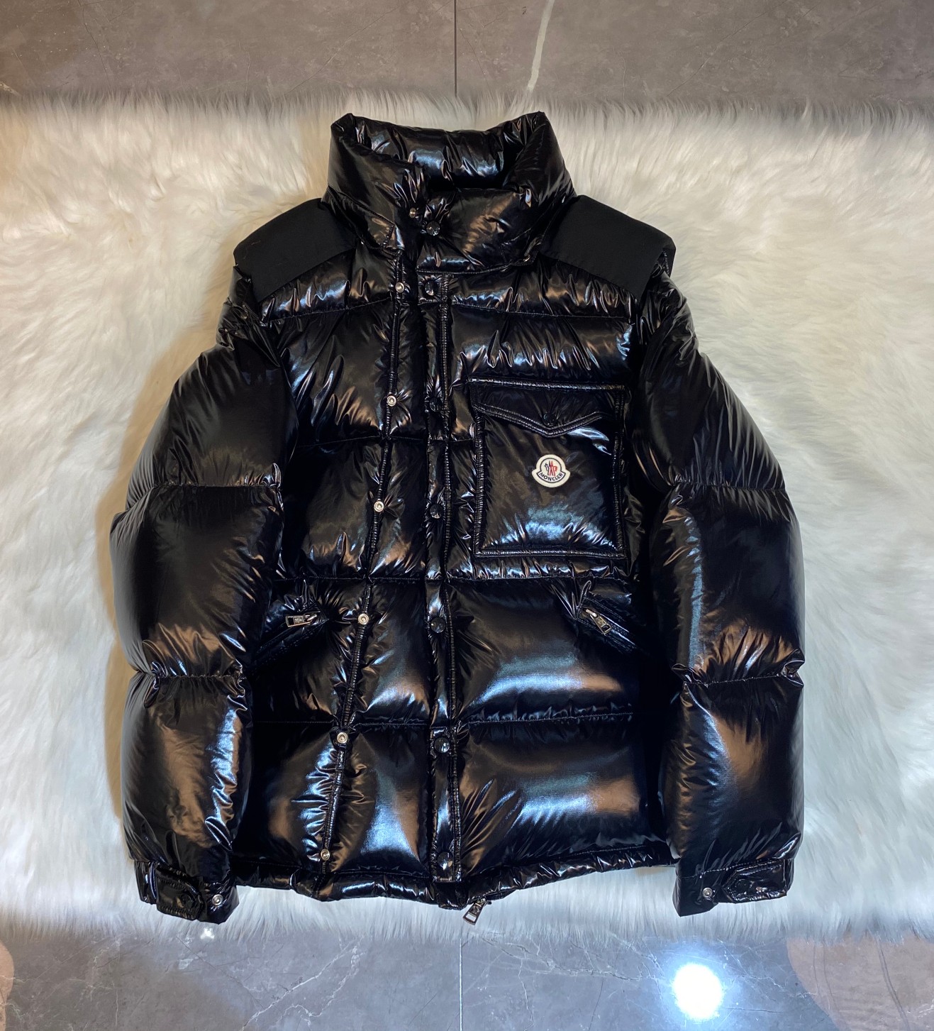 这款衣服是AAAAA 1:1 质量 (非常棒). 使用了和原版一模一样的材料. 商标部分也保持了和盟可睐/moncler一样. 图片拍摄是实物衣服拍摄, 您所收到的实物保证和我们图片一模一样.