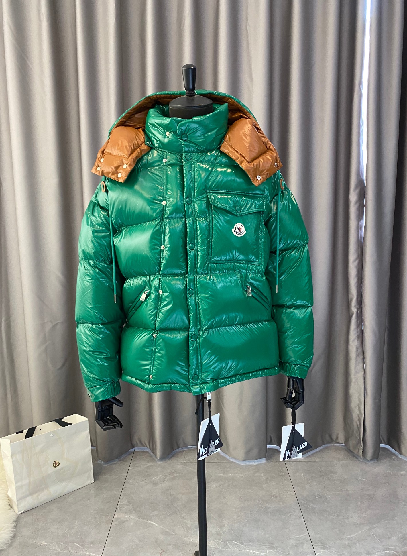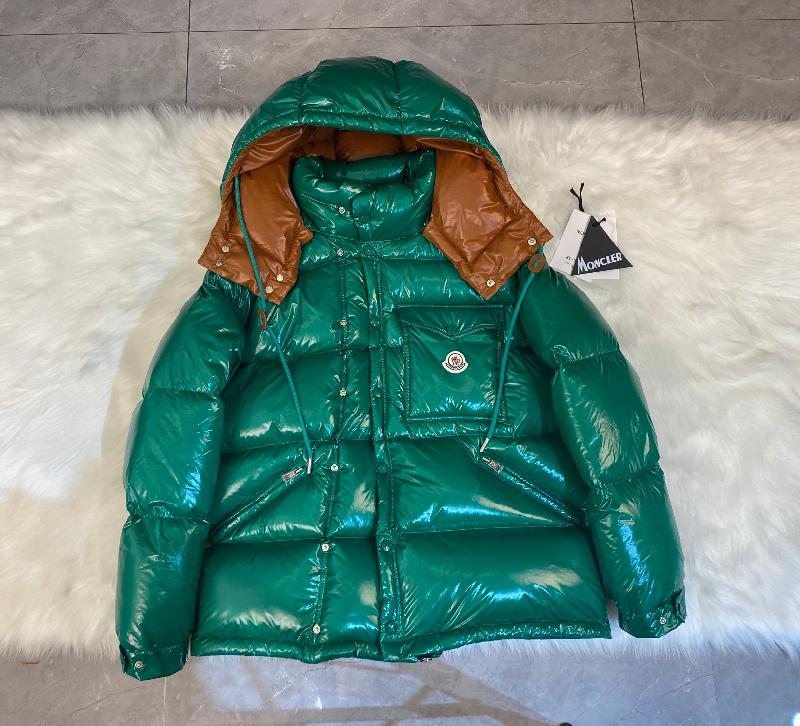 这款衣服是AAAAA 1:1 质量 (非常棒). 使用了和原版一模一样的材料. 商标部分也保持了和盟可睐/moncler一样. 图片拍摄是实物衣服拍摄, 您所收到的实物保证和我们图片一模一样.