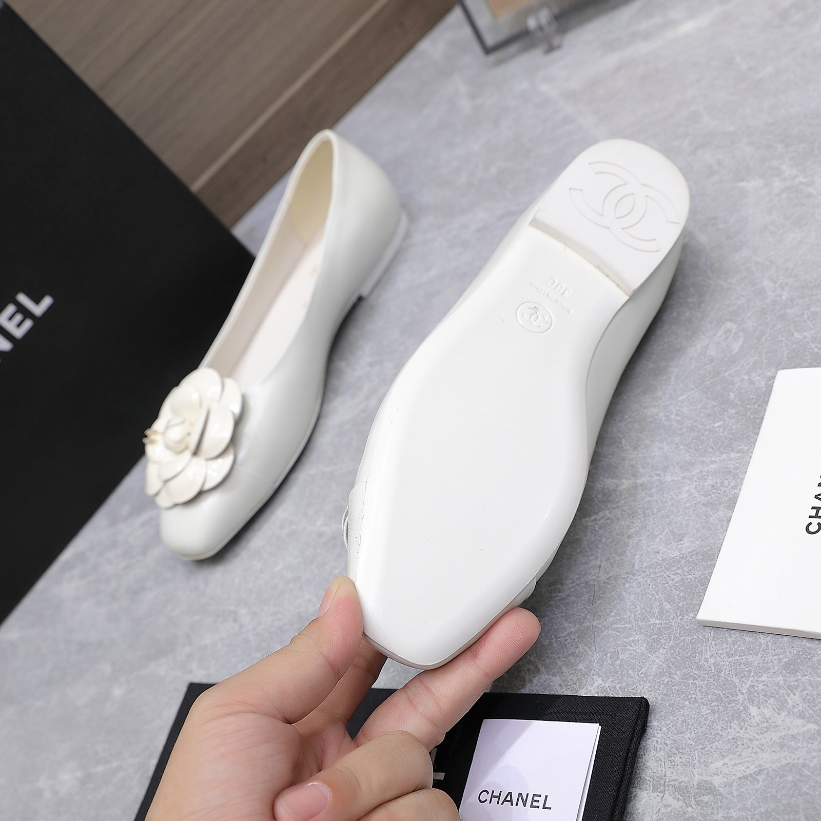 这款鞋子是AAAAA 1:1 质量 (非常棒). 使用了和原版一模一样的材料. 商标部分也保持了和香奈儿/Chanel一样. 图片拍摄是实物鞋子拍摄, 您所收到的实物保证和我们图片一模一样.