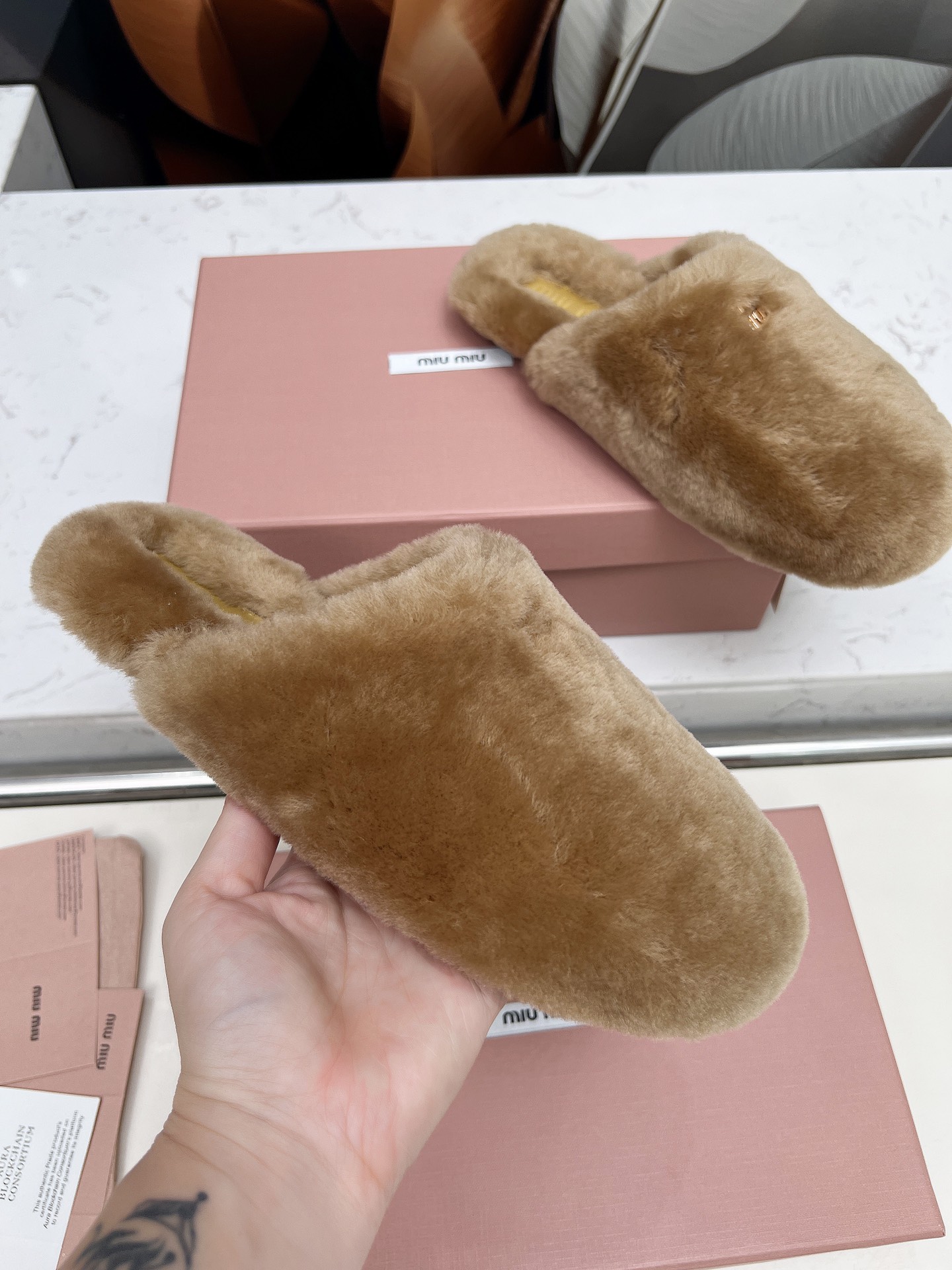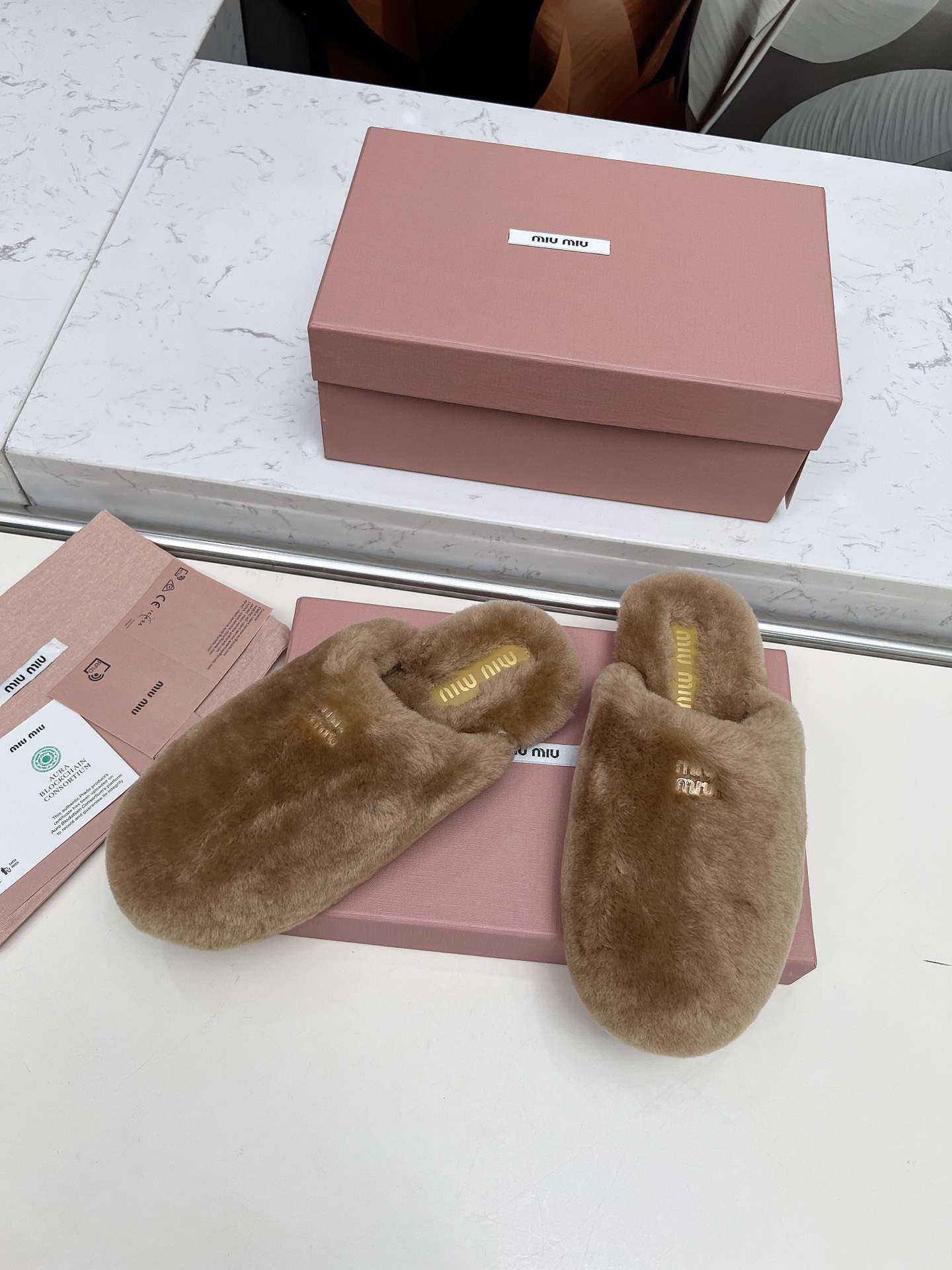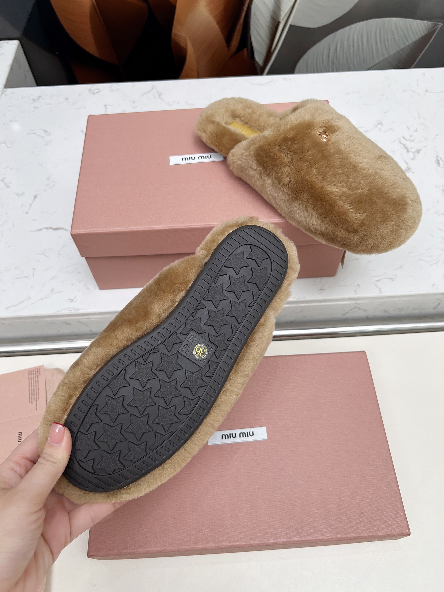 这款鞋子是AAAAA 1:1 质量 (非常棒). 使用了和原版一模一样的材料. 商标部分也保持了和缪缪/Miu Miu一样. 图片拍摄是实物鞋子拍摄, 您所收到的实物保证和我们图片一模一样.