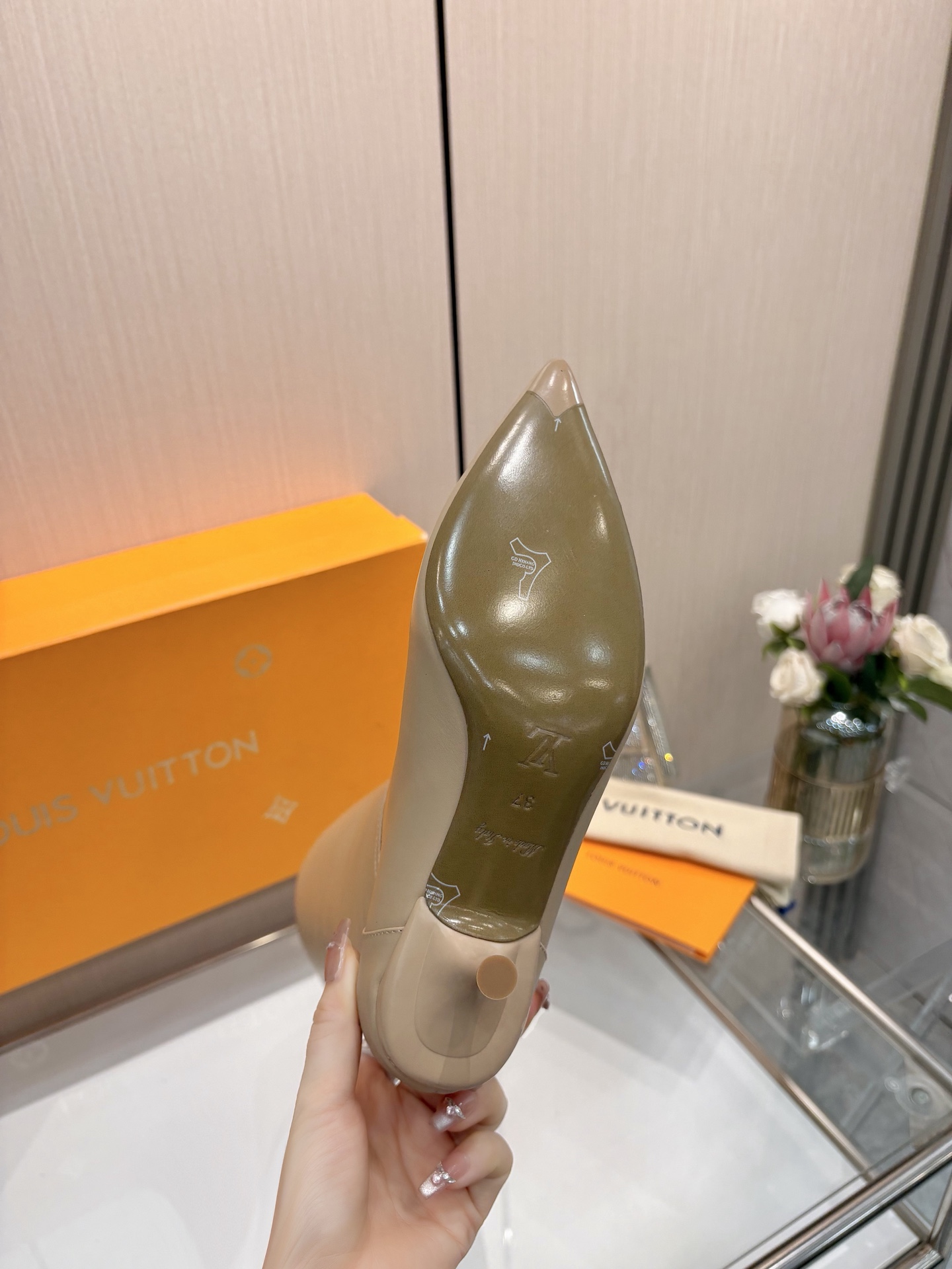 这款鞋子是AAAAA 1:1 质量 (非常棒). 使用了和原版一模一样的材料. 商标部分也保持了和路易威登/Louis Vuitton一样. 图片拍摄是实物鞋子拍摄, 您所收到的实物保证和我们图片一模一样.