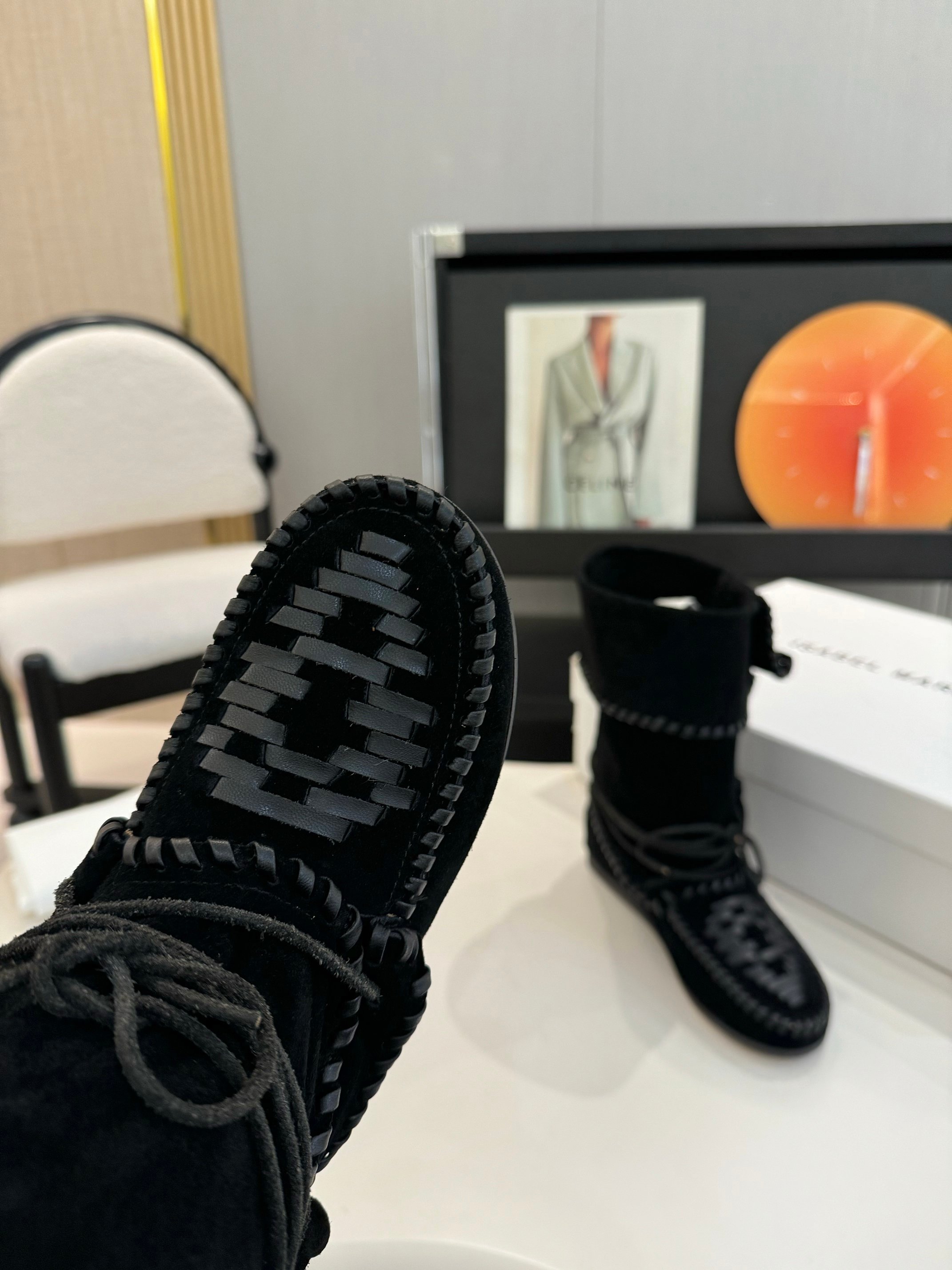 这款鞋子是AAAAA 1:1 质量 (非常棒). 使用了和原版一模一样的材料. 商标部分也保持了和伊莎贝尔·马兰特/Isabel Marant一样. 图片拍摄是实物鞋子拍摄, 您所收到的实物保证和我们图片一模一样.
