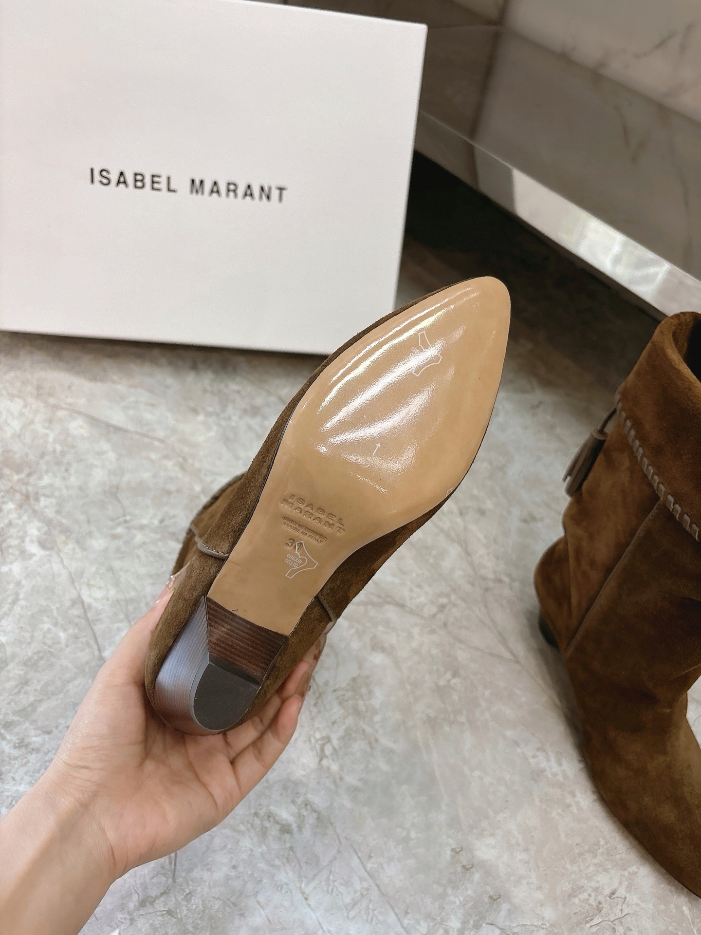 这款鞋子是AAAAA 1:1 质量 (非常棒). 使用了和原版一模一样的材料. 商标部分也保持了和伊莎贝尔·马兰特/Isabel Marant一样. 图片拍摄是实物鞋子拍摄, 您所收到的实物保证和我们图片一模一样.