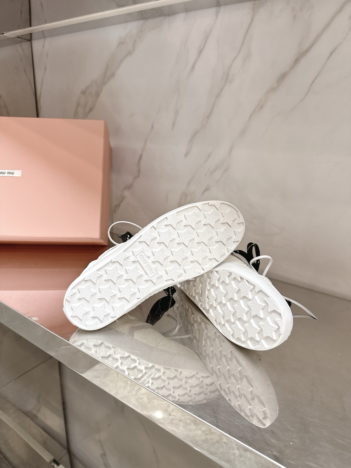 这款鞋子是AAAAA 1:1 质量 (非常棒). 使用了和原版一模一样的材料. 商标部分也保持了和缪缪/Miu Miu一样. 图片拍摄是实物鞋子拍摄, 您所收到的实物保证和我们图片一模一样.