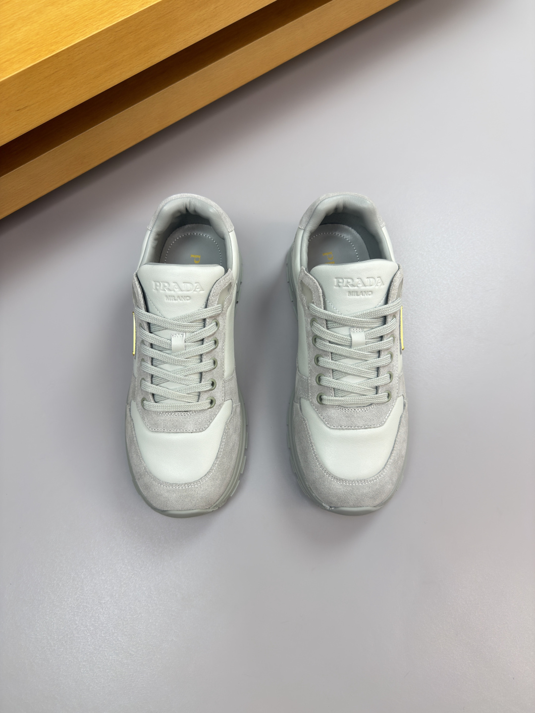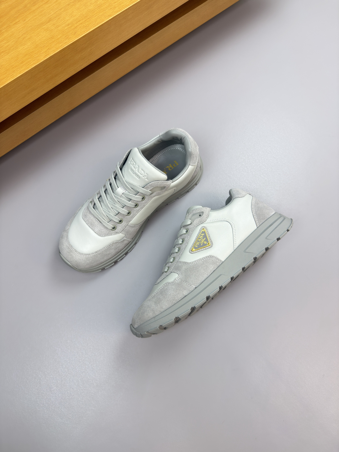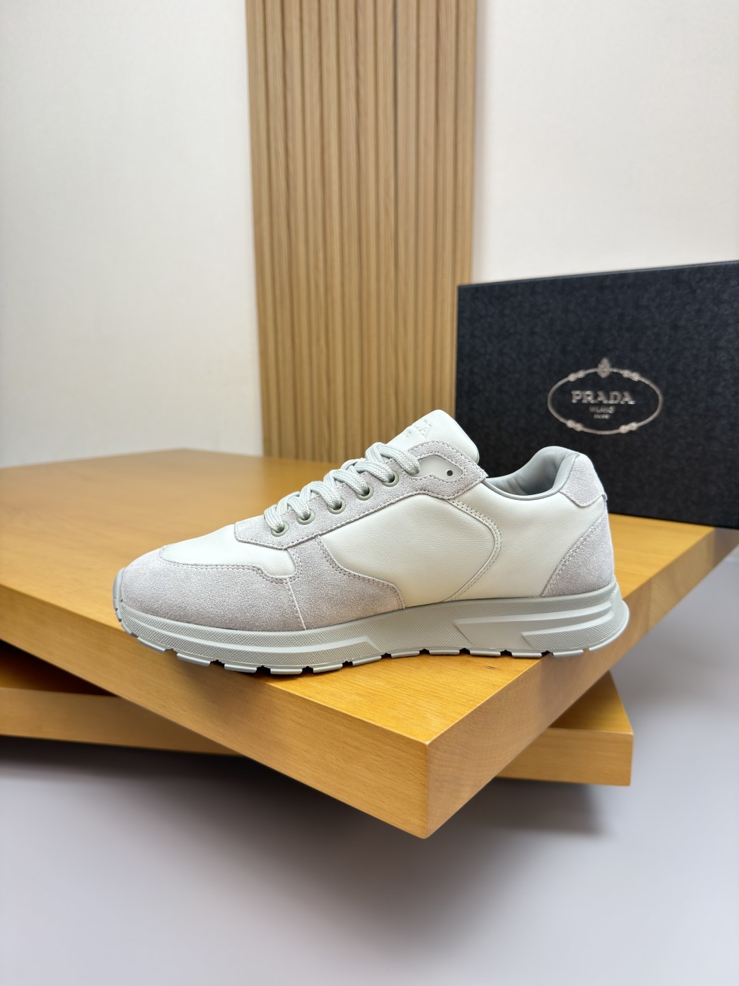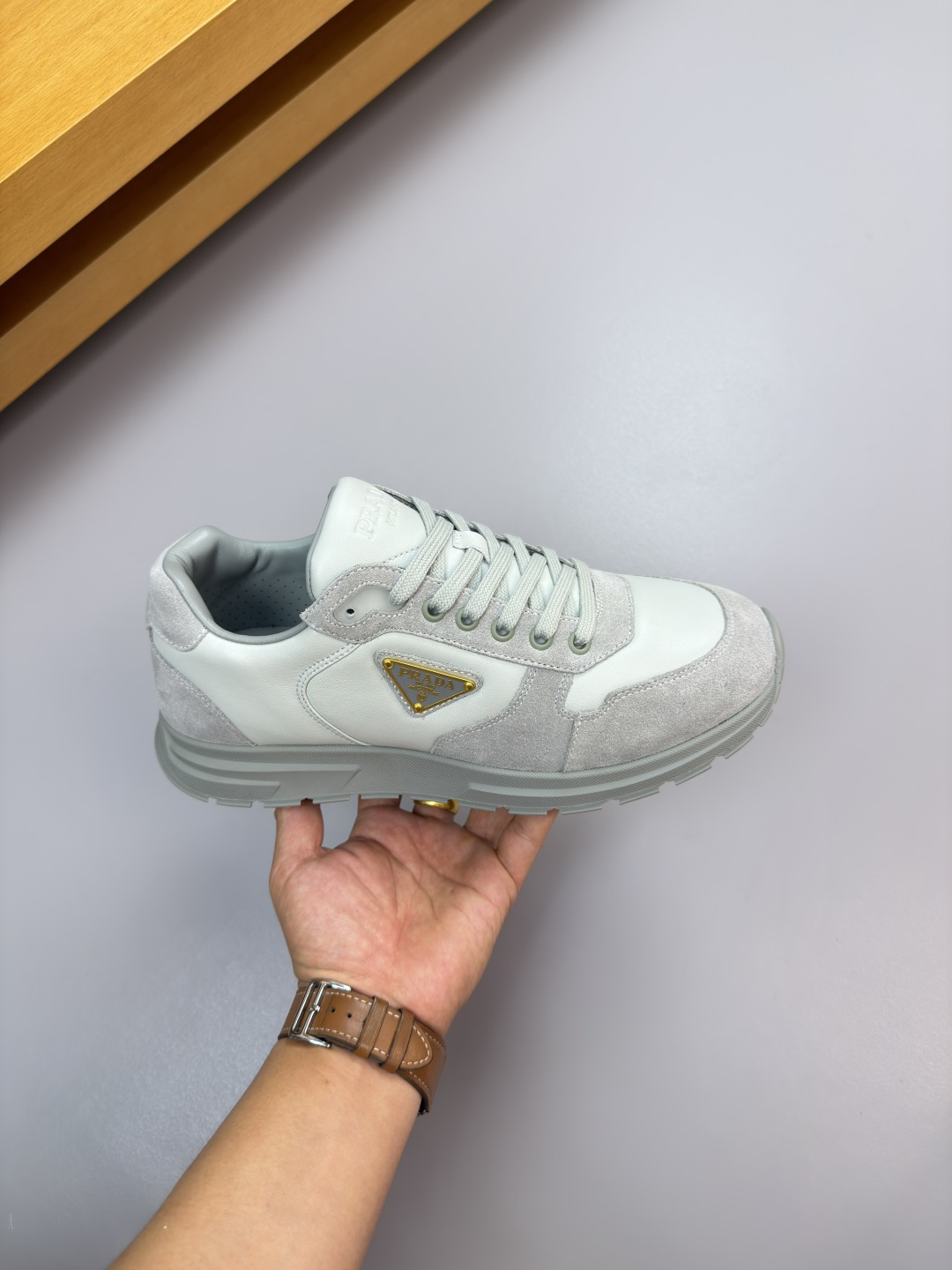 这款鞋子是AAAAA 1:1 质量 (非常棒). 使用了和原版一模一样的材料. 商标部分也保持了和普拉达/Prada一样. 图片拍摄是实物鞋子拍摄, 您所收到的实物保证和我们图片一模一样.